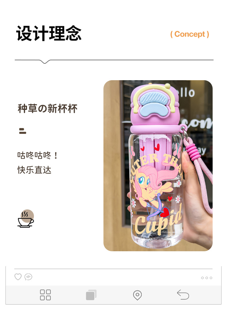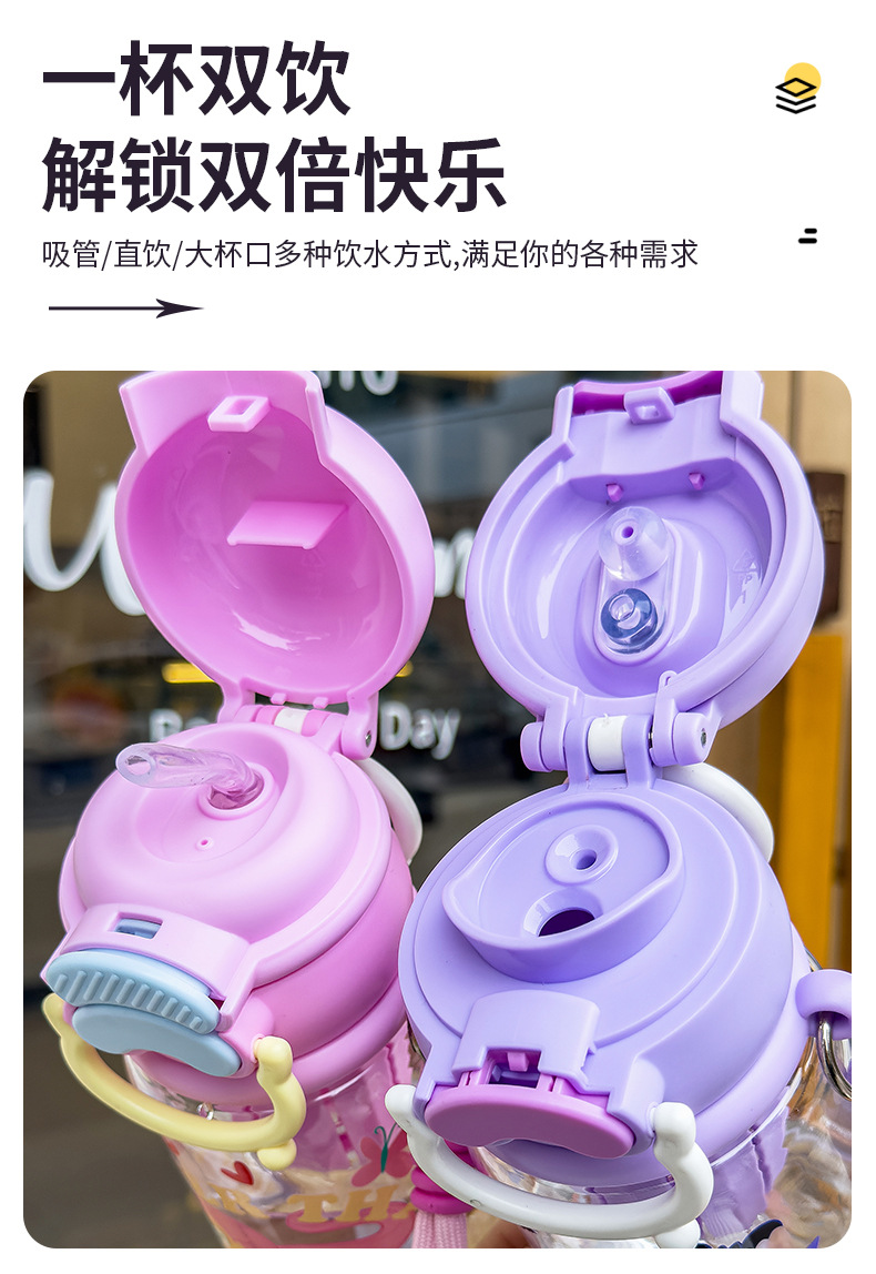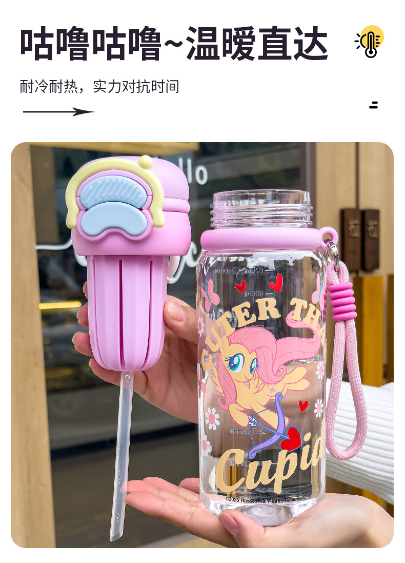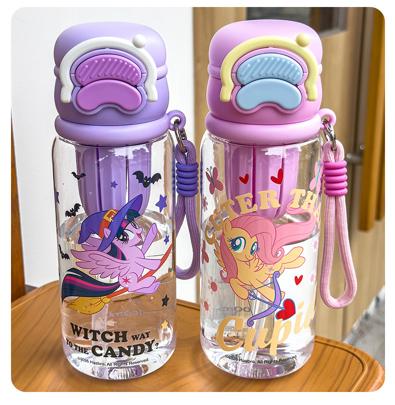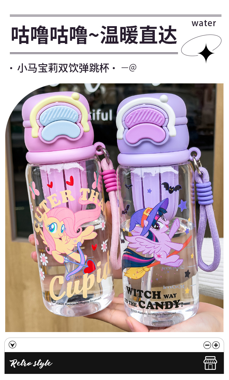 小马宝莉双饮水杯女生可爱水杯便携吸管大容量高颜值儿童塑料水壶 English | 投诉