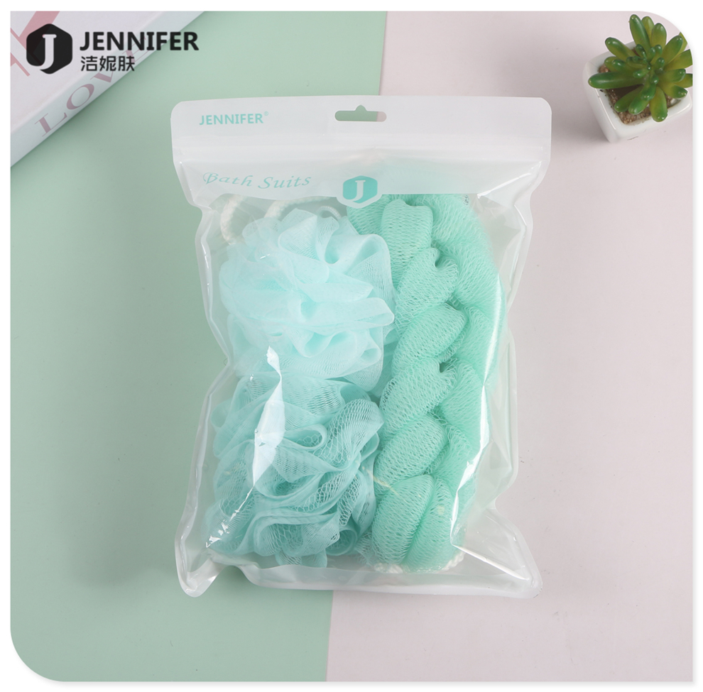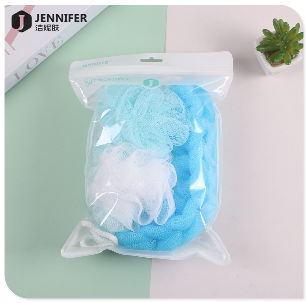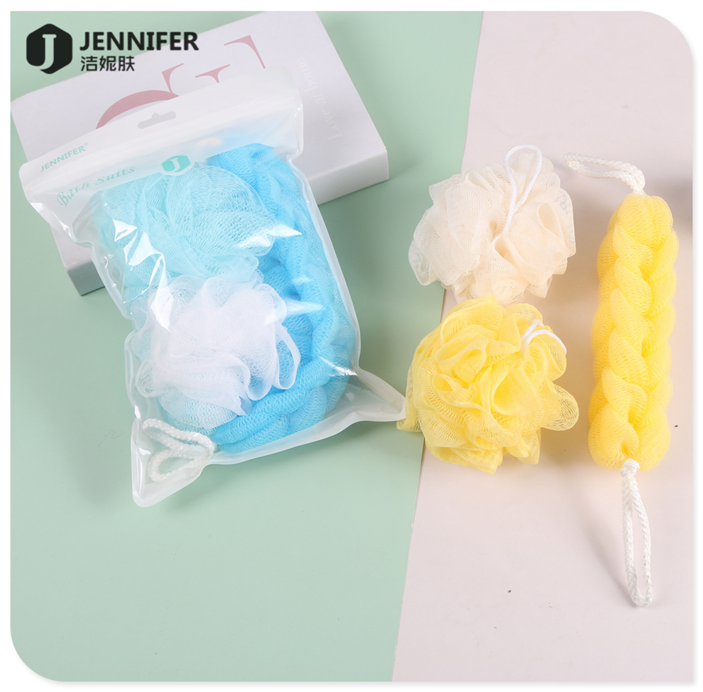 产品名称:彩色混装浴球浴花沐浴拉背条泡泡浴搓澡两用不伤皮肤家用洗澡套装