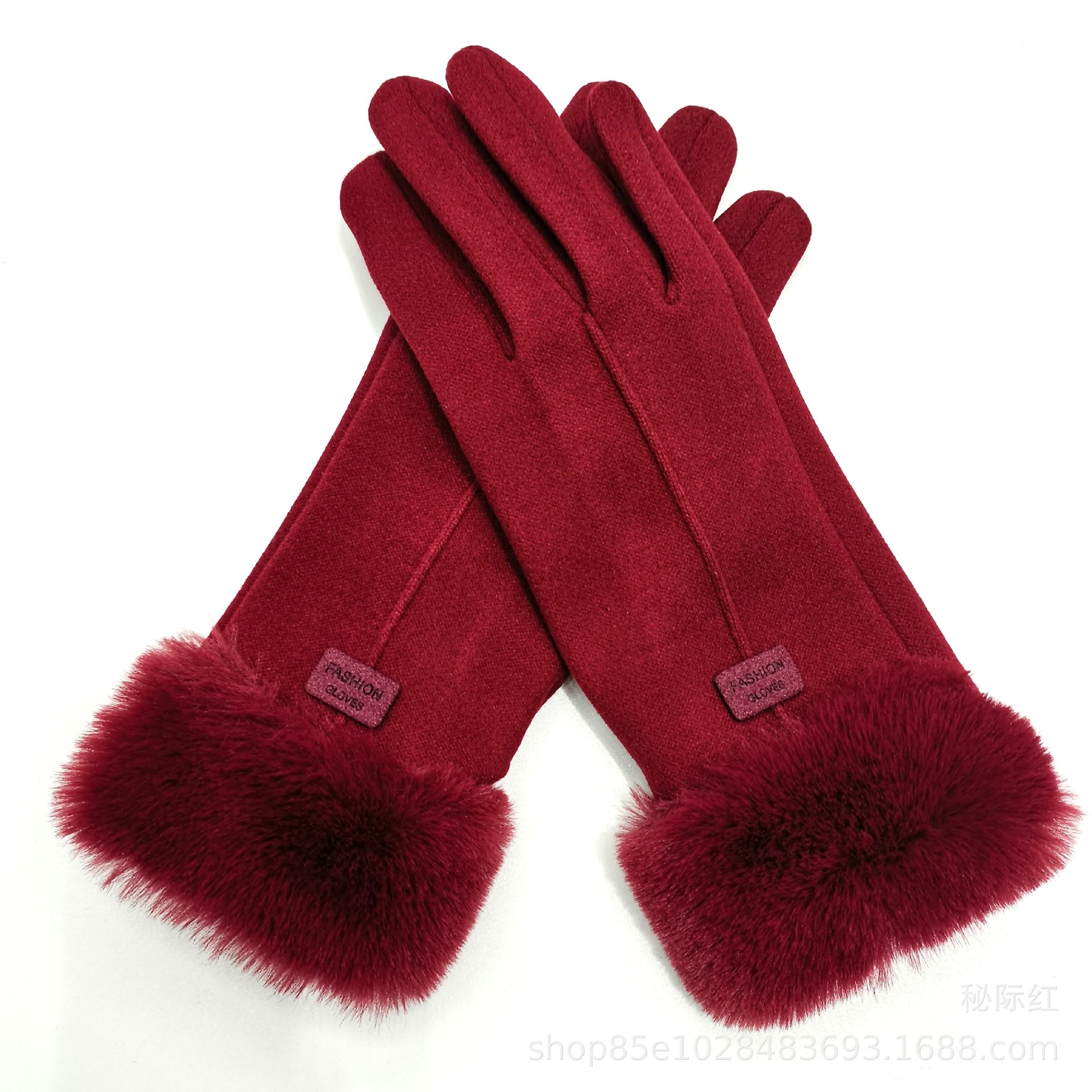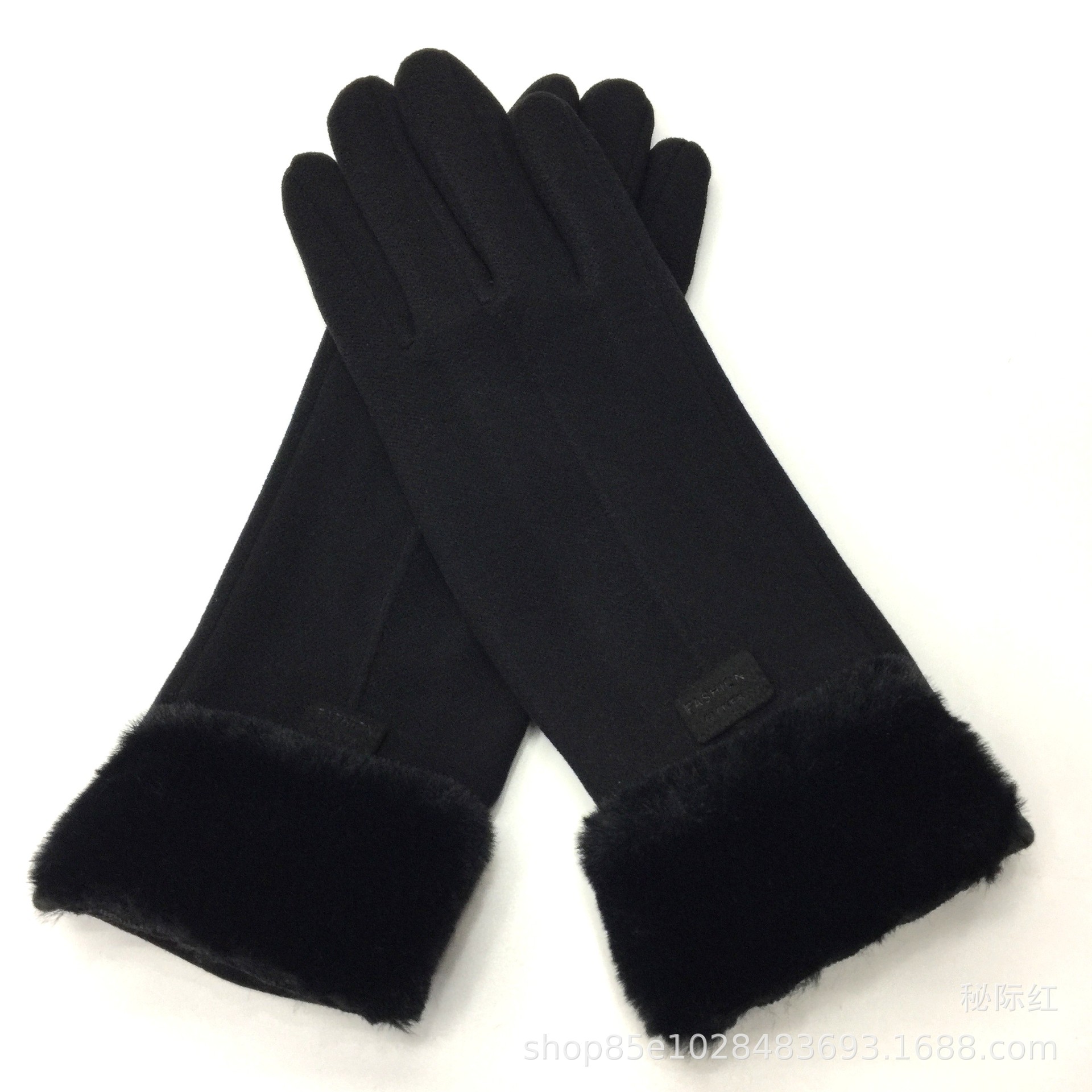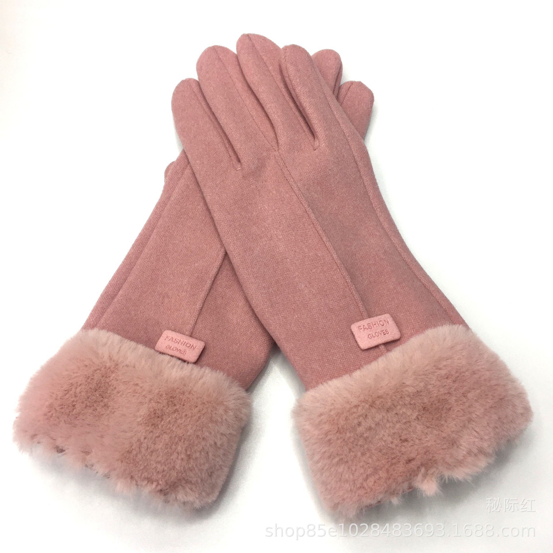 工厂直销新款女士加绒加厚保暖手套冬季防风兔绒触屏毛口德绒手套