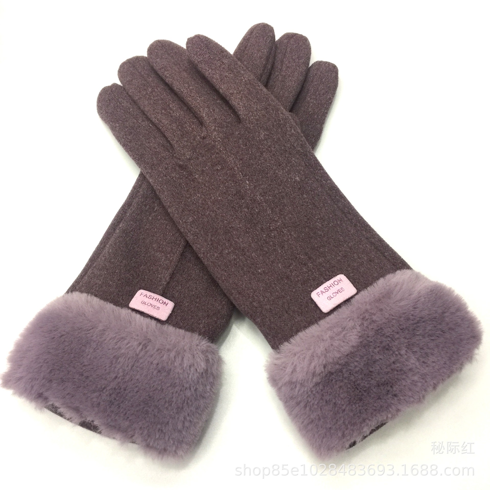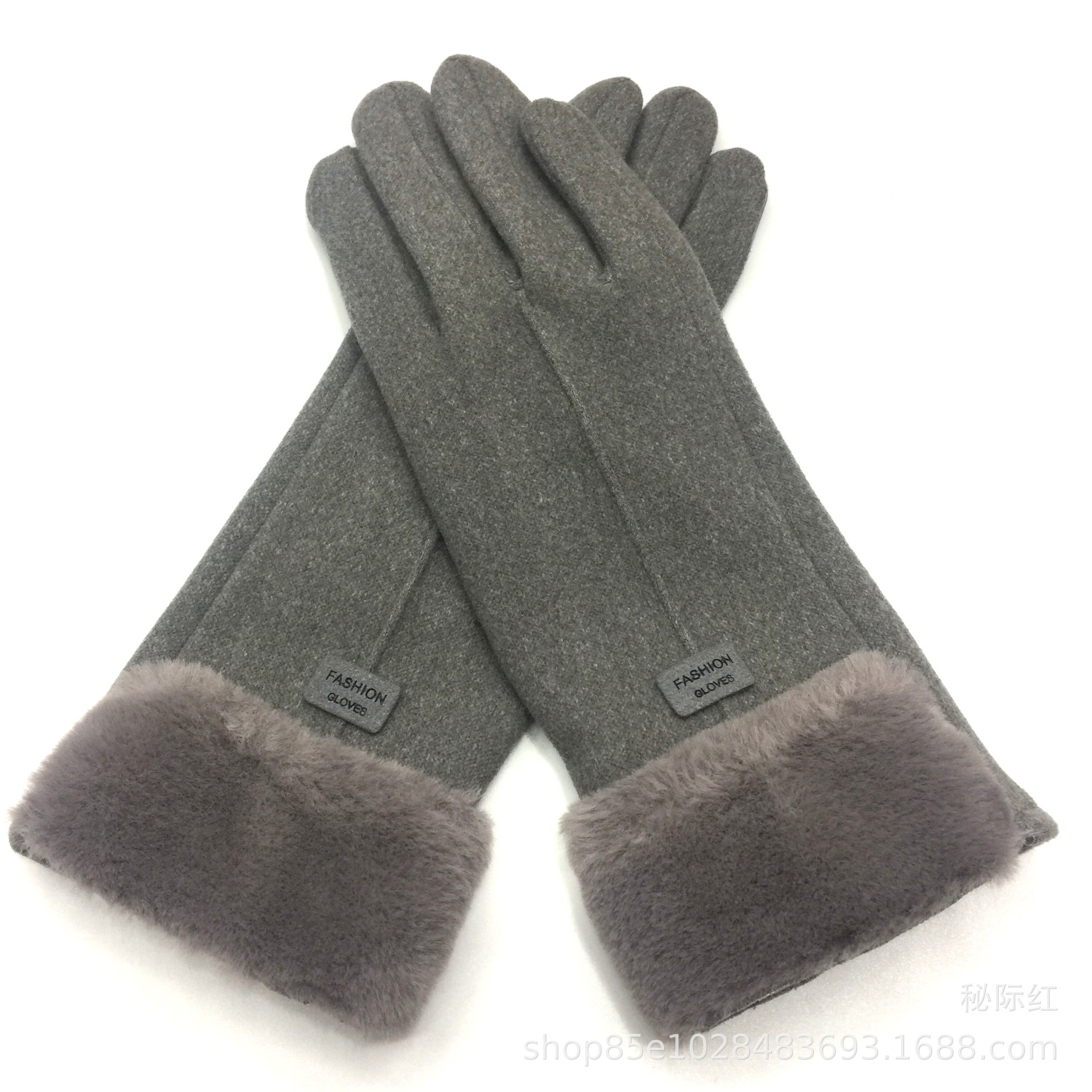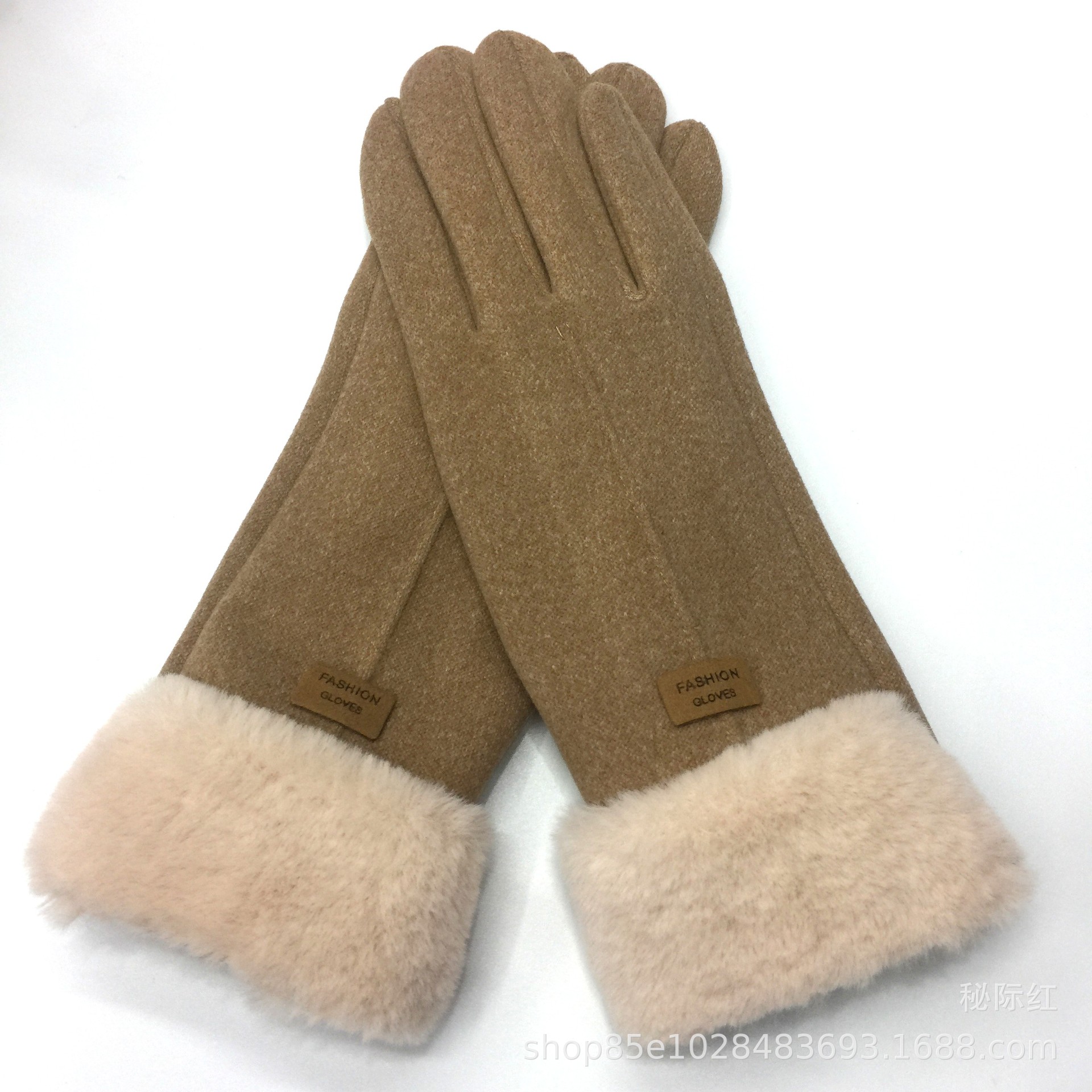工厂直销新款女士加绒加厚保暖手套冬季防风兔绒触屏毛口德绒手套