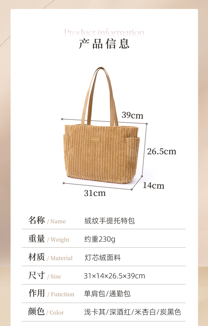 品名:绒纹手提托特包