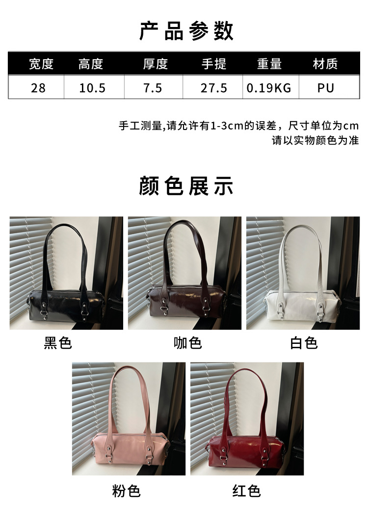 材质: PU 箱包潮流款式: 法棍包 箱包大小: 中 里料质地: 涤纶 品牌: 其他 风格: 街头潮流 流行元素: 车缝线 颜色: 黑色,白色,咖色,粉色,红色 货号: JS2121 上市年份季节: 2026年春季 箱包形状: 横款方型 开盖方式: 拉链 包内部结构: 拉链暗袋 硬度: 中 外袋种类: 立体袋 有可授权的自有品牌: 否 有无夹层: 无 肩带根数: 双根 适用场景: 日常搭配 重量: 0.25 kg/个