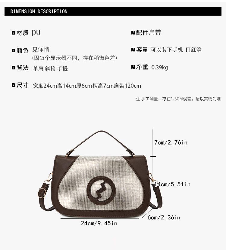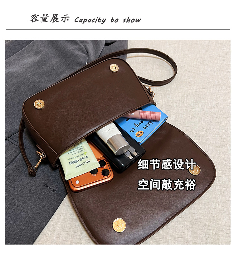 材质: PU 里料质地: 涤纶 品牌: 其他 硬度: 中 箱包大小: 中 流行元素: 撞色 有无夹层: 无 颜色: 黑色,棕色,卡其色 风格: 都市简约 上市年份季节: 2026年春季 适用场景: 日常搭配 货号: DX3101 箱包形状: 横款方型 开盖方式: 磁扣 包内部结构: 手机袋 外袋种类: 带盖袋 肩带根数: 双根 有可授权的自有品牌: 否 款式: 斜挎包 重量: 0.25 kg/个