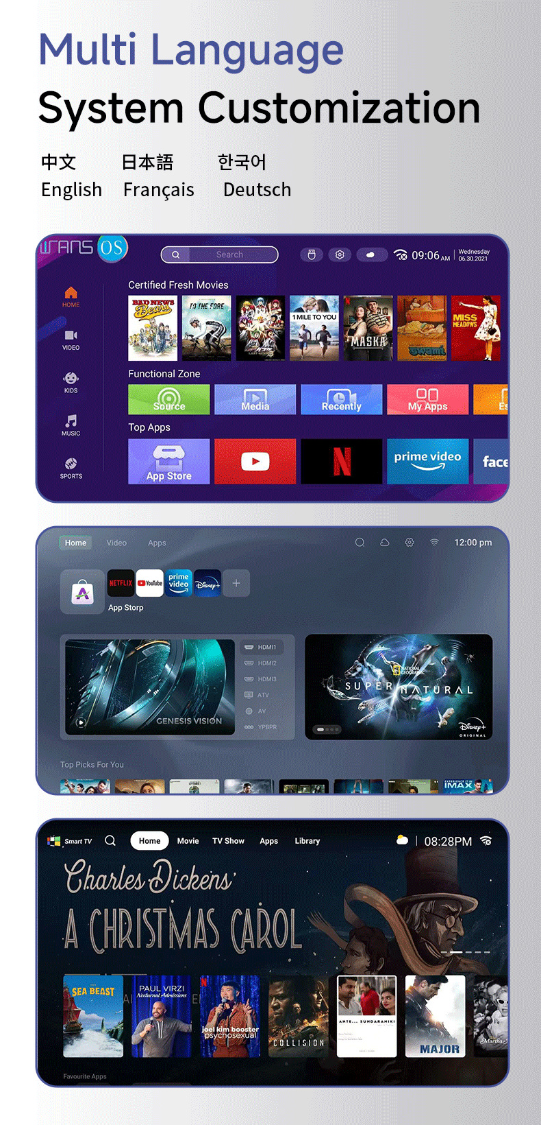 Hotel-specific TVs (supporting IPTV/DTV, with customizable boot-up screens, channel locking, and multi-language options)