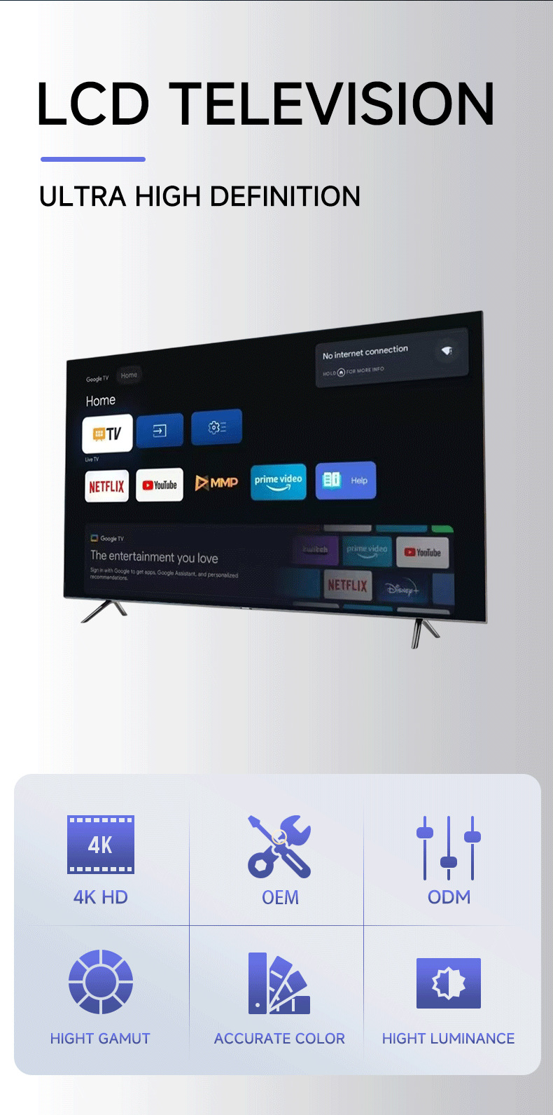 We primarily serve hotels, real estate developers (for premium-finished housing projects), educational institutions, commercial display system integrators, and international clients, offering highly reliable, cost-effective, and deeply customizable LCD TV solutions, including: