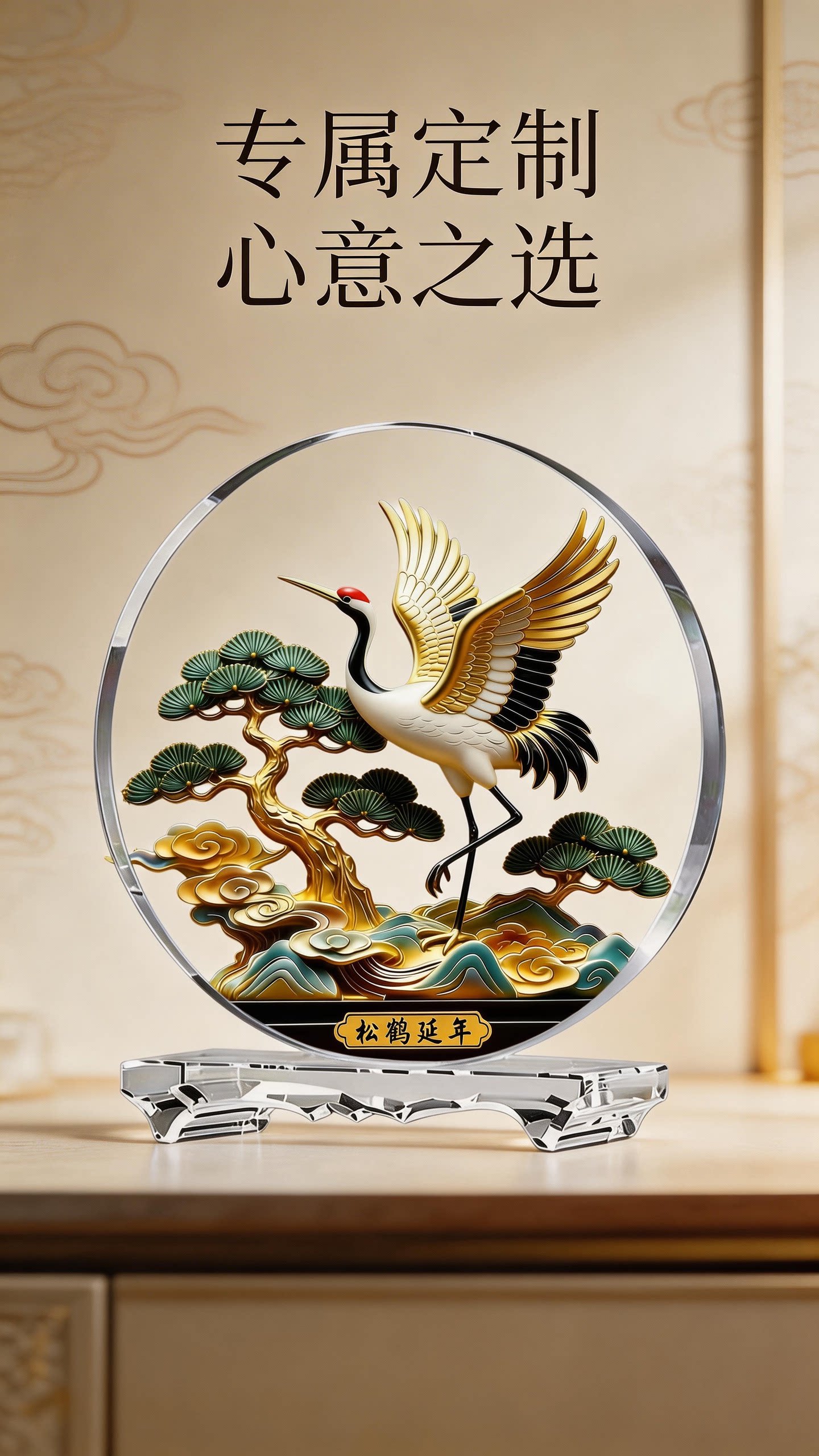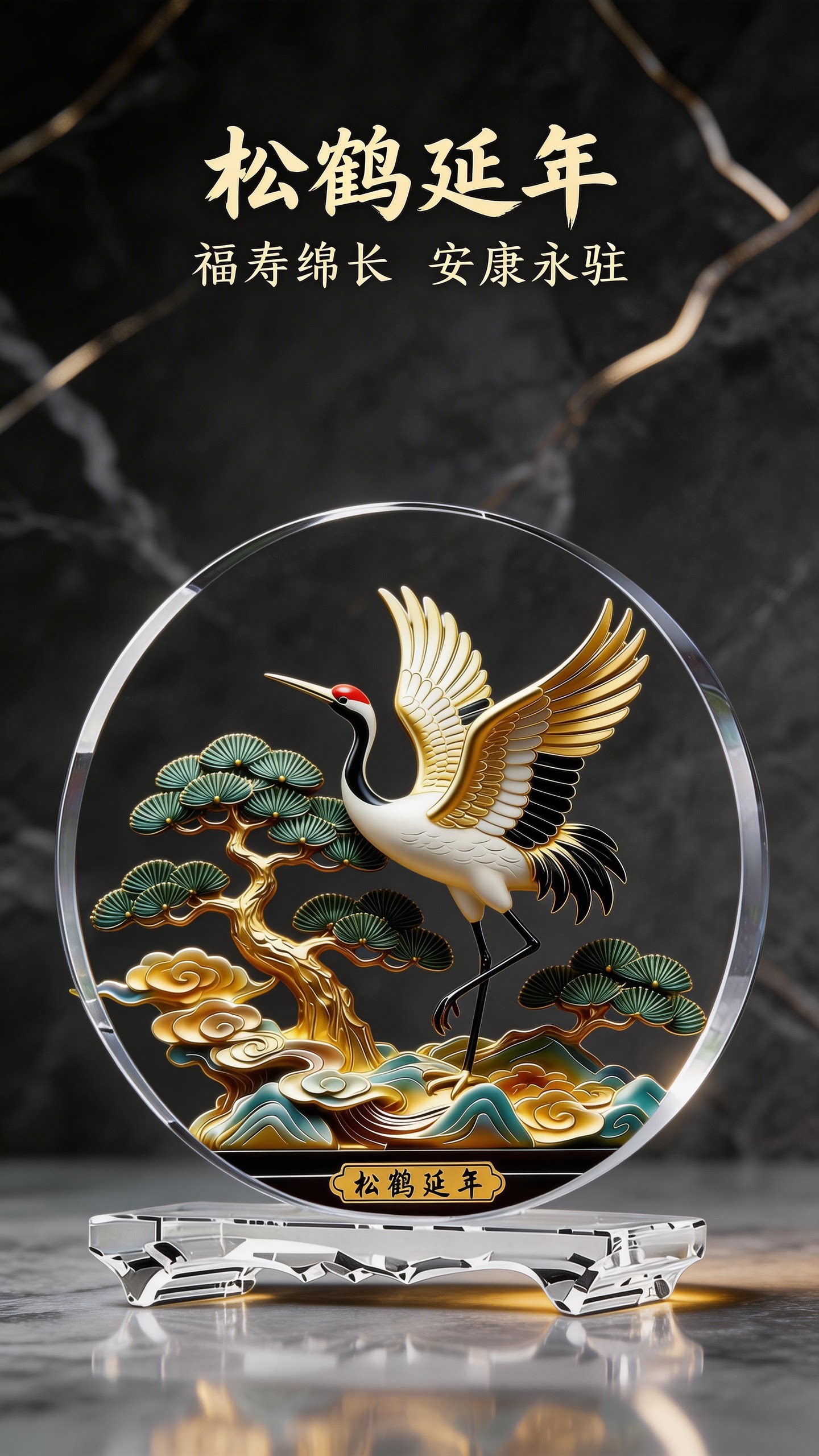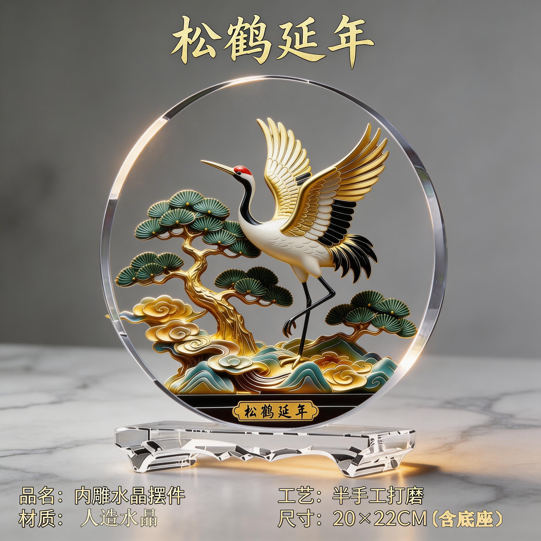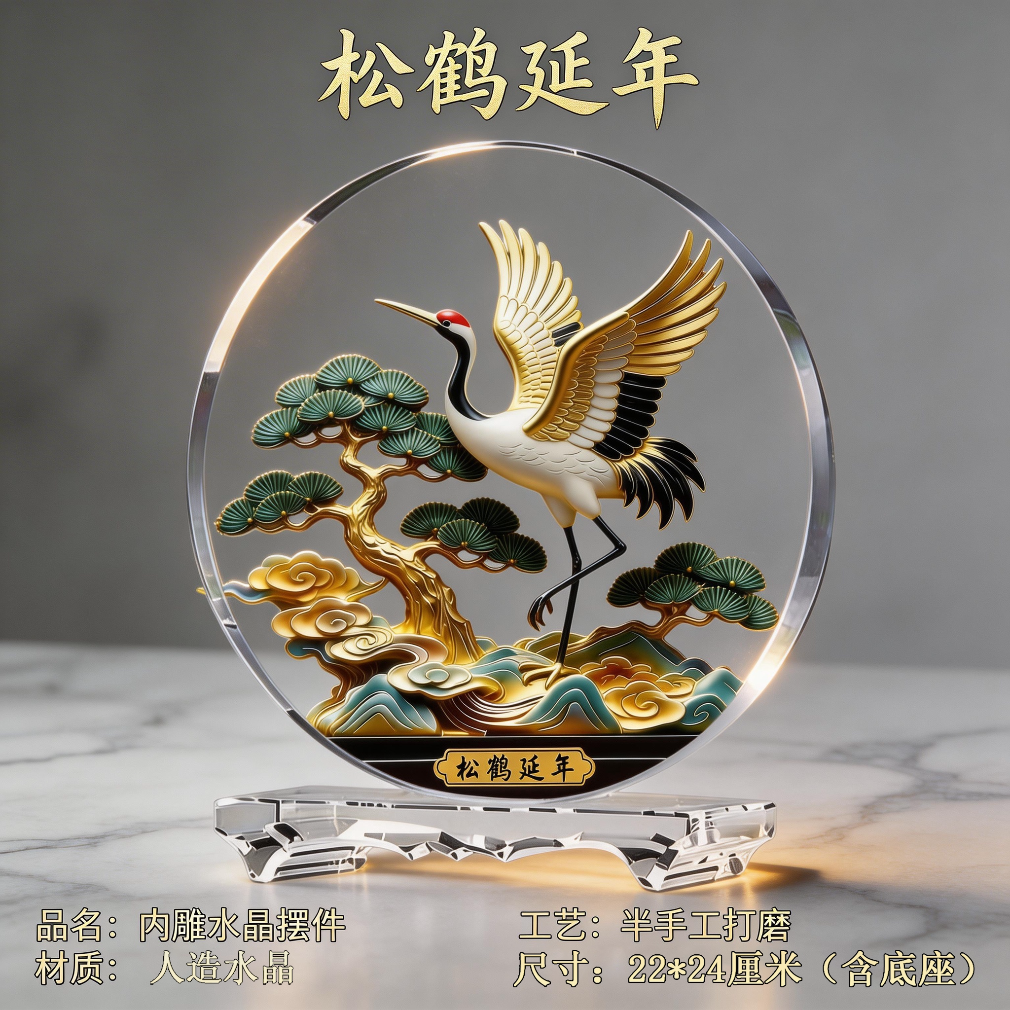 松鹤延年-中号22*24cm(水晶底座) ¥13900 100件可售