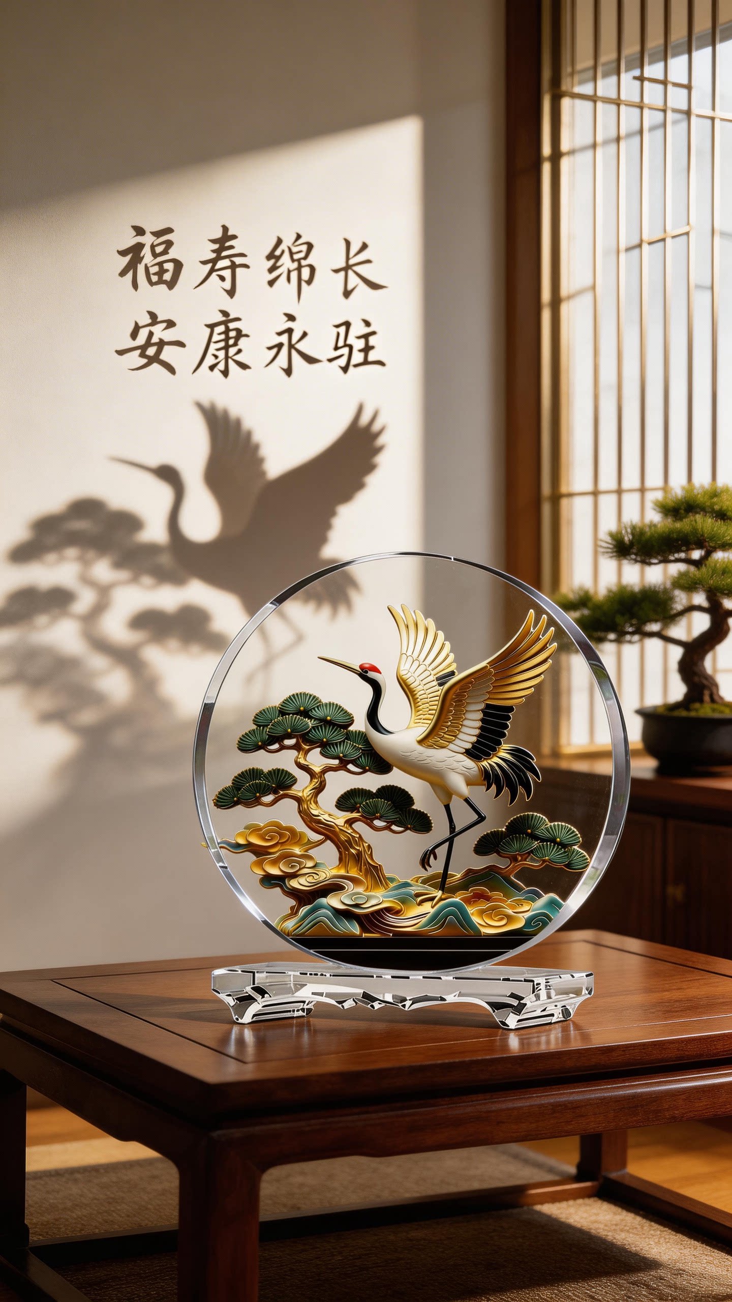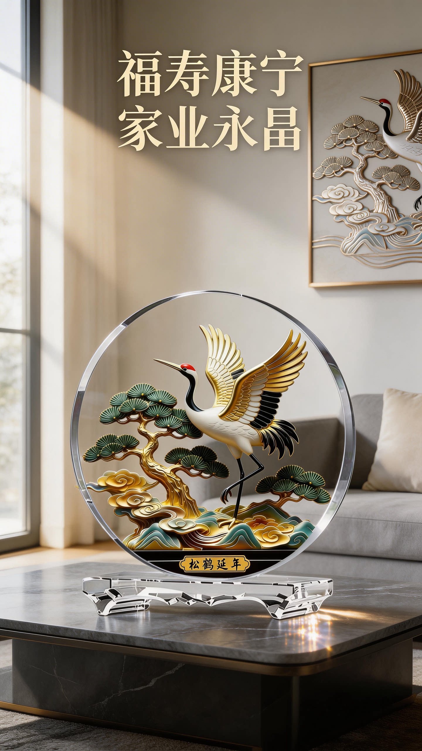 松鹤延年内雕水晶桌面摆件家居客厅玄关办公室贺寿领导送礼工艺品