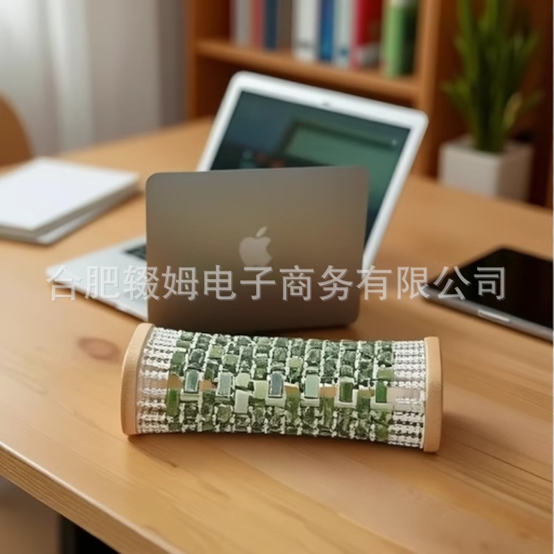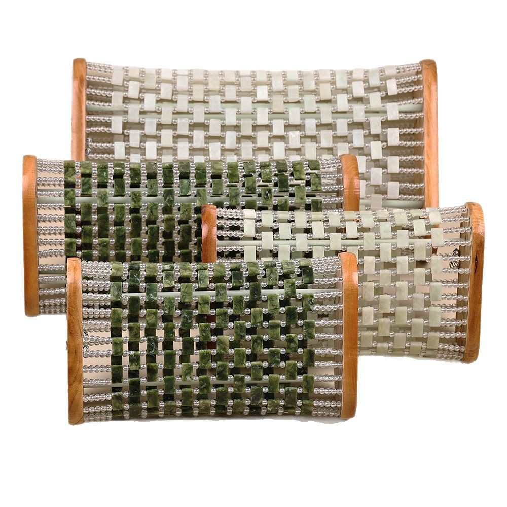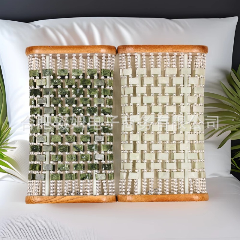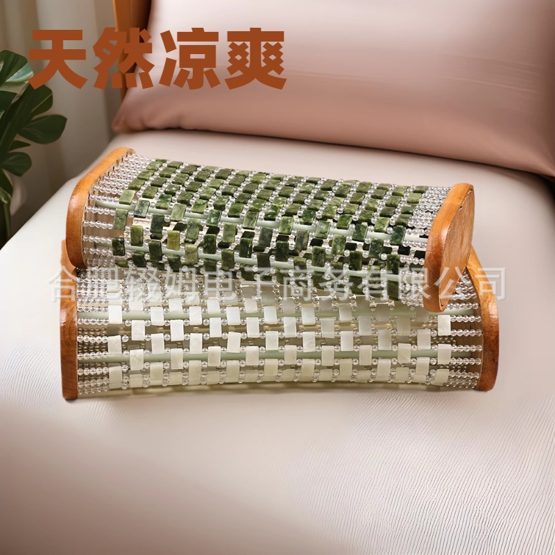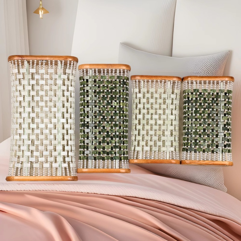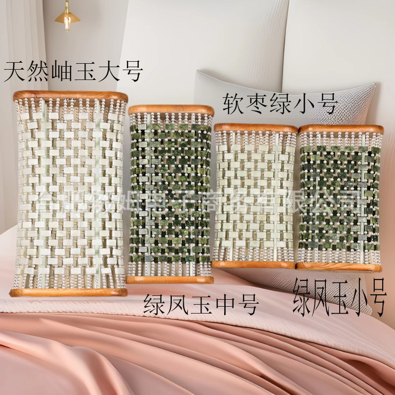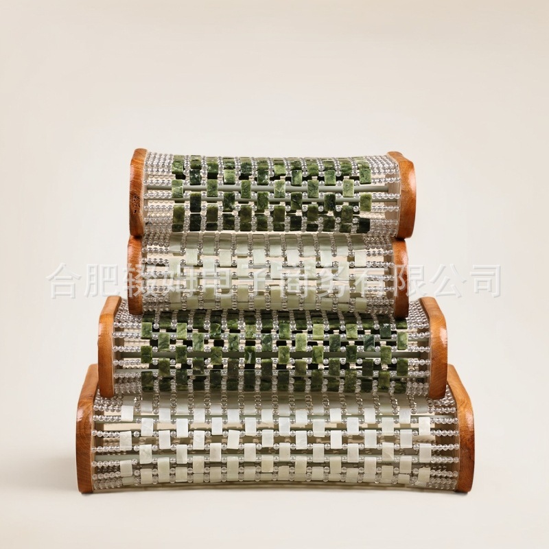 每款由玉石片和亚克力圆珠串联而成,绳子是钢绳,非常的结实,枕头中间的二根支撑柱子是也是钢铁的