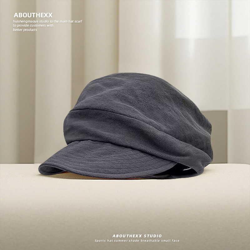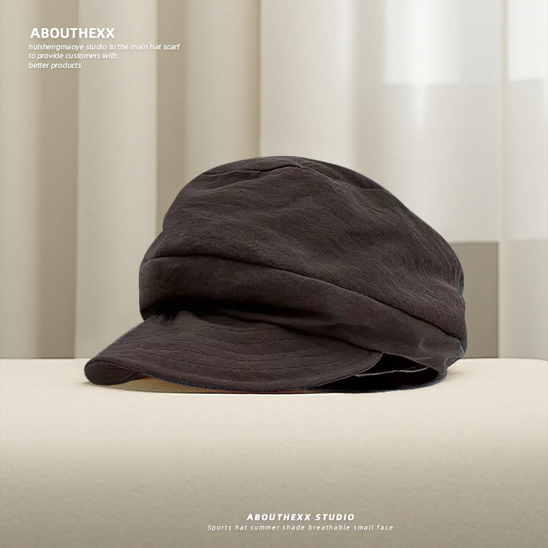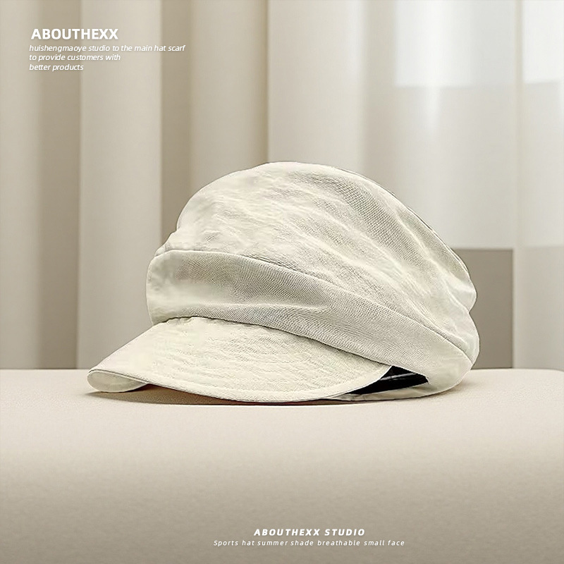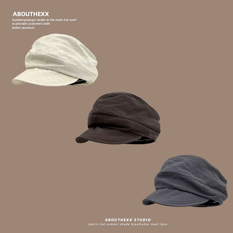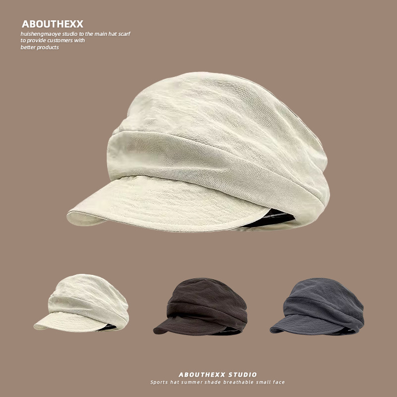 日系小众复古帽子女文艺褶皱云朵贝雷帽夏季薄款百搭显脸小报童帽