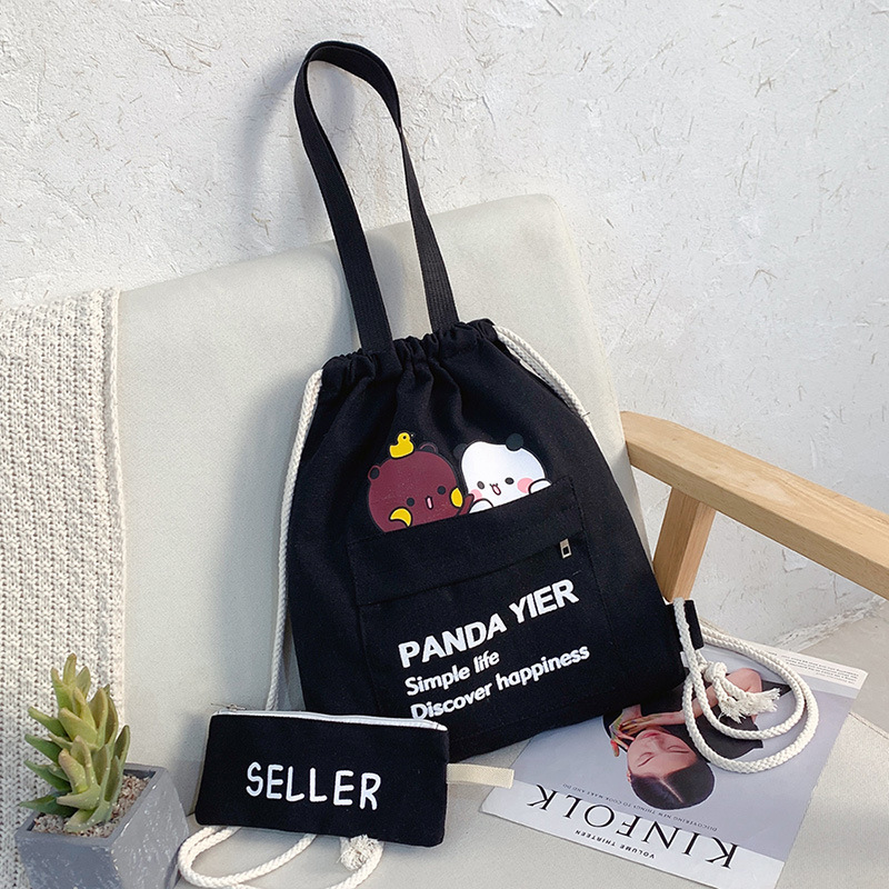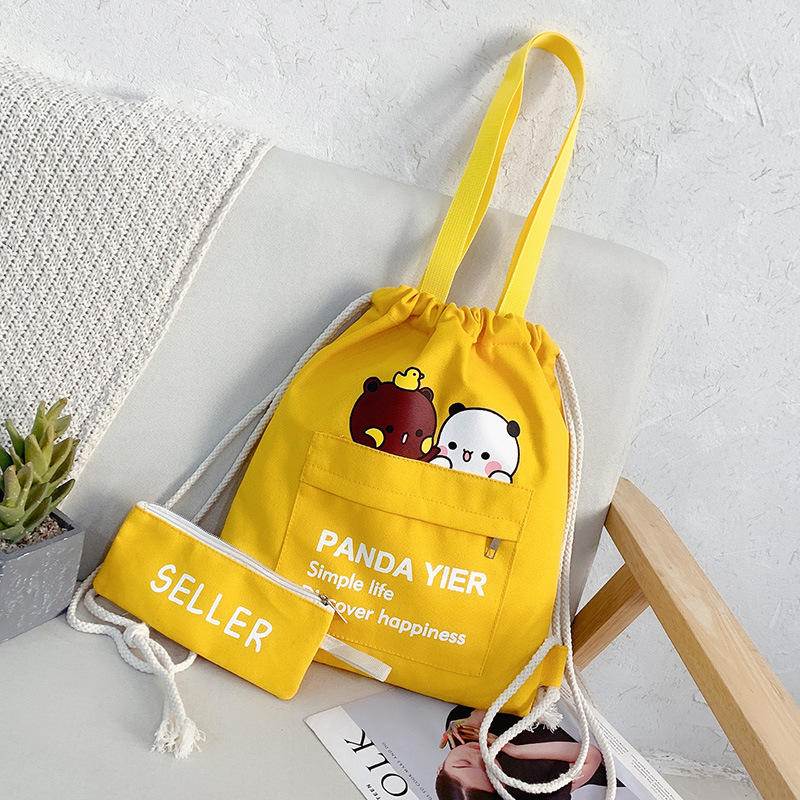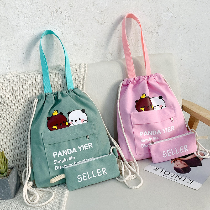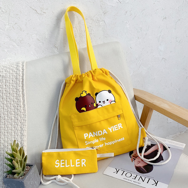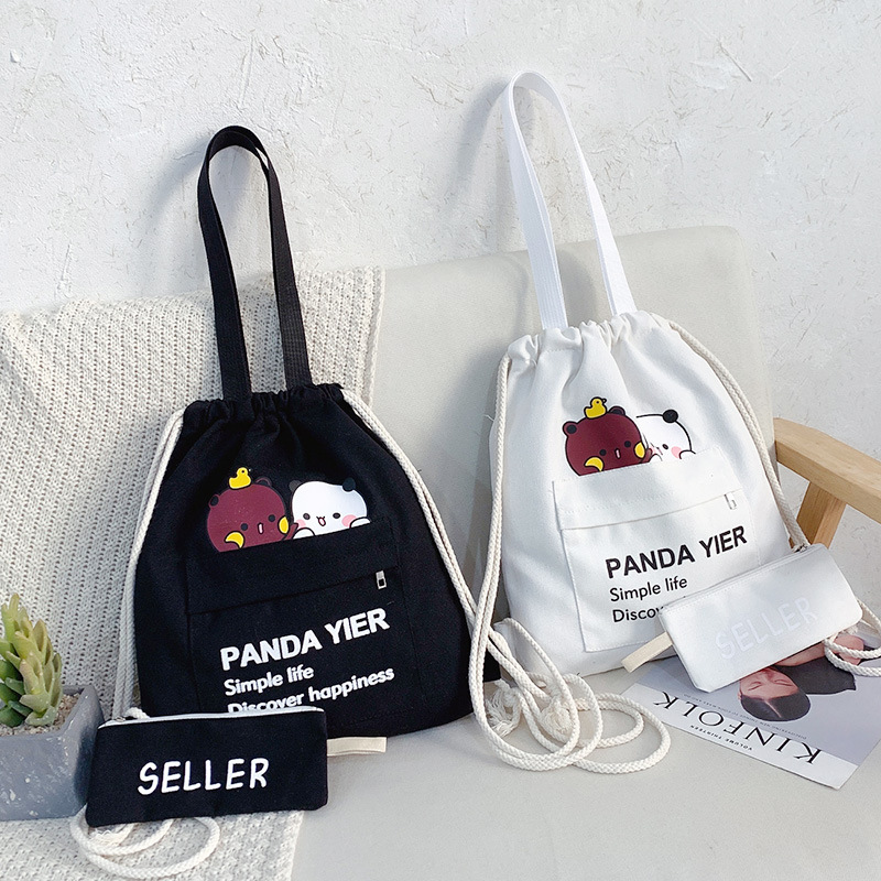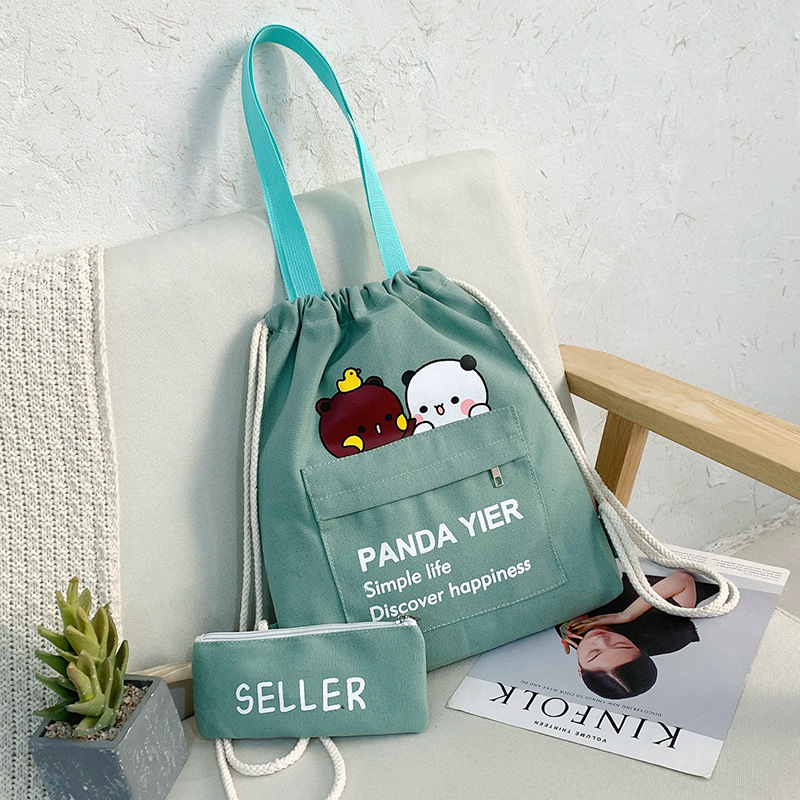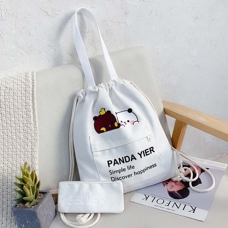 2021年上新帆布包抽绳两件套印花日常双肩包