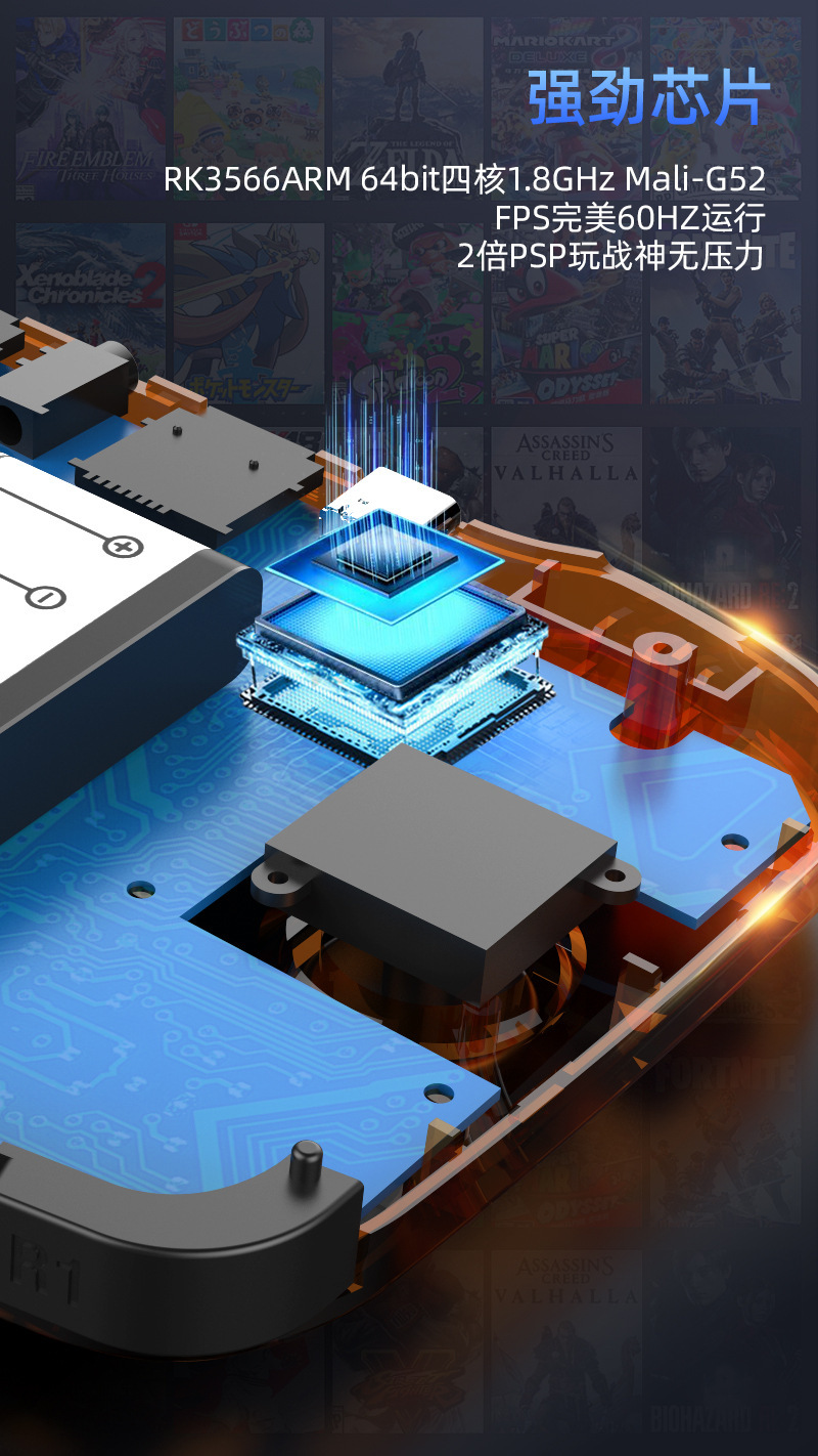 3.采用高性能四核CPU,FPS完美60HZ运行,2倍PSP玩战神无压力。