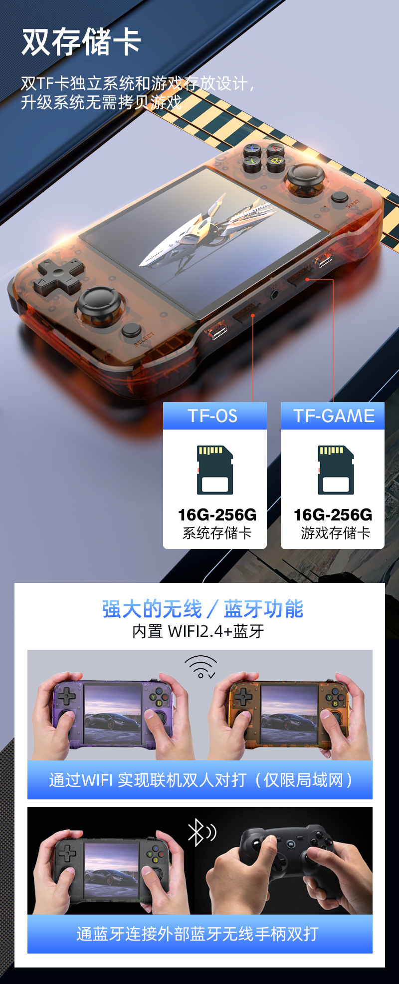 2.双TF卡独立系统和游戏存放设计,升级系统无需拷贝游戏