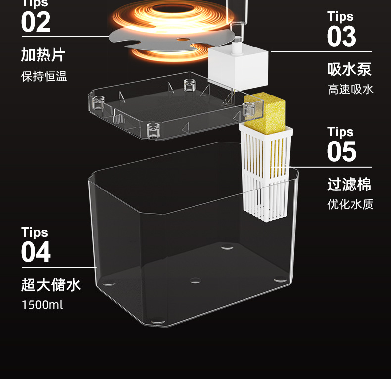 饮水器续航更久 更稳定,也无需每天更换充电宝/锂电池。