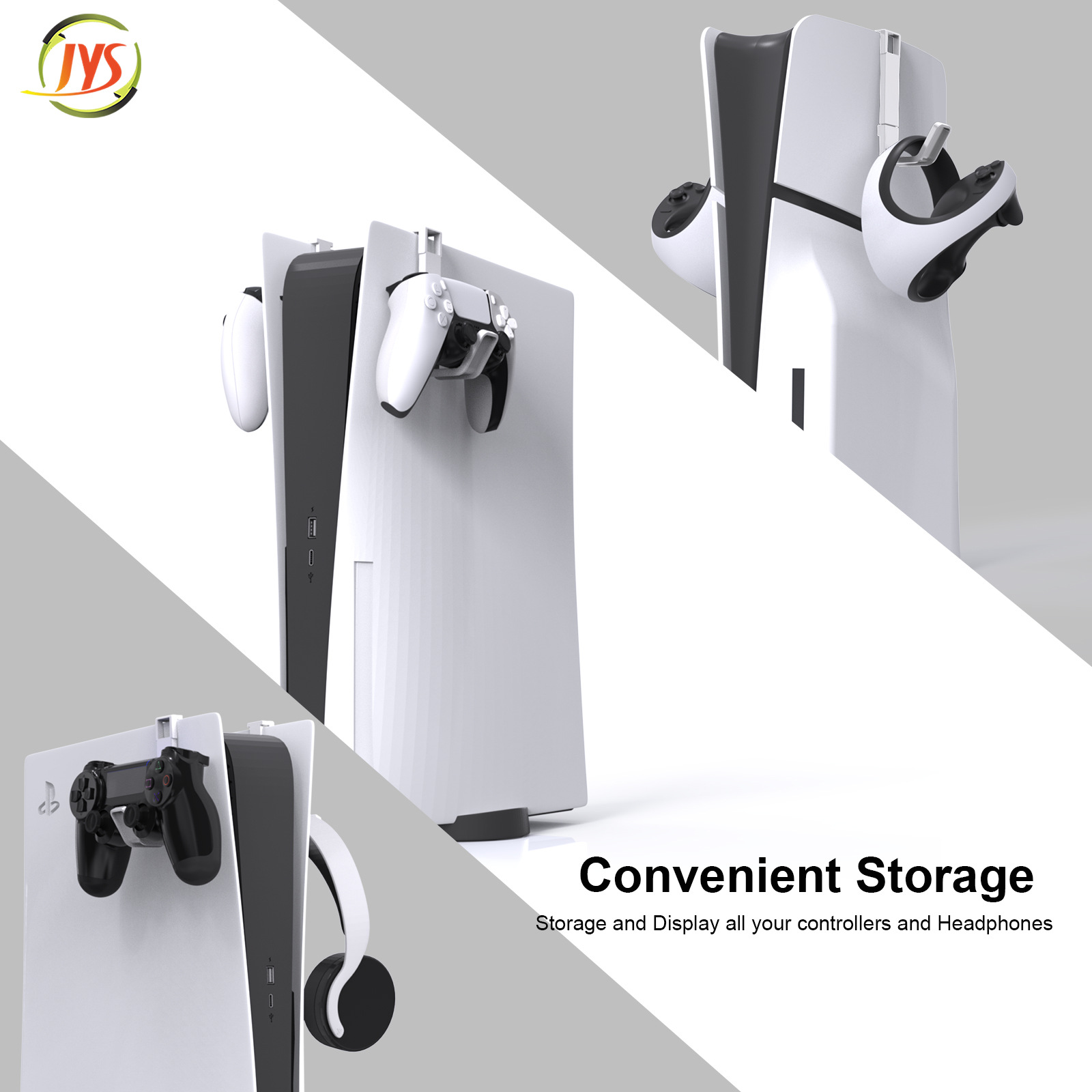 * 采用优质ABS材料制成,具有高韧性和高抗摔性,充分利用主机完美地展示和储存您的手柄和耳机,节省桌面空间;