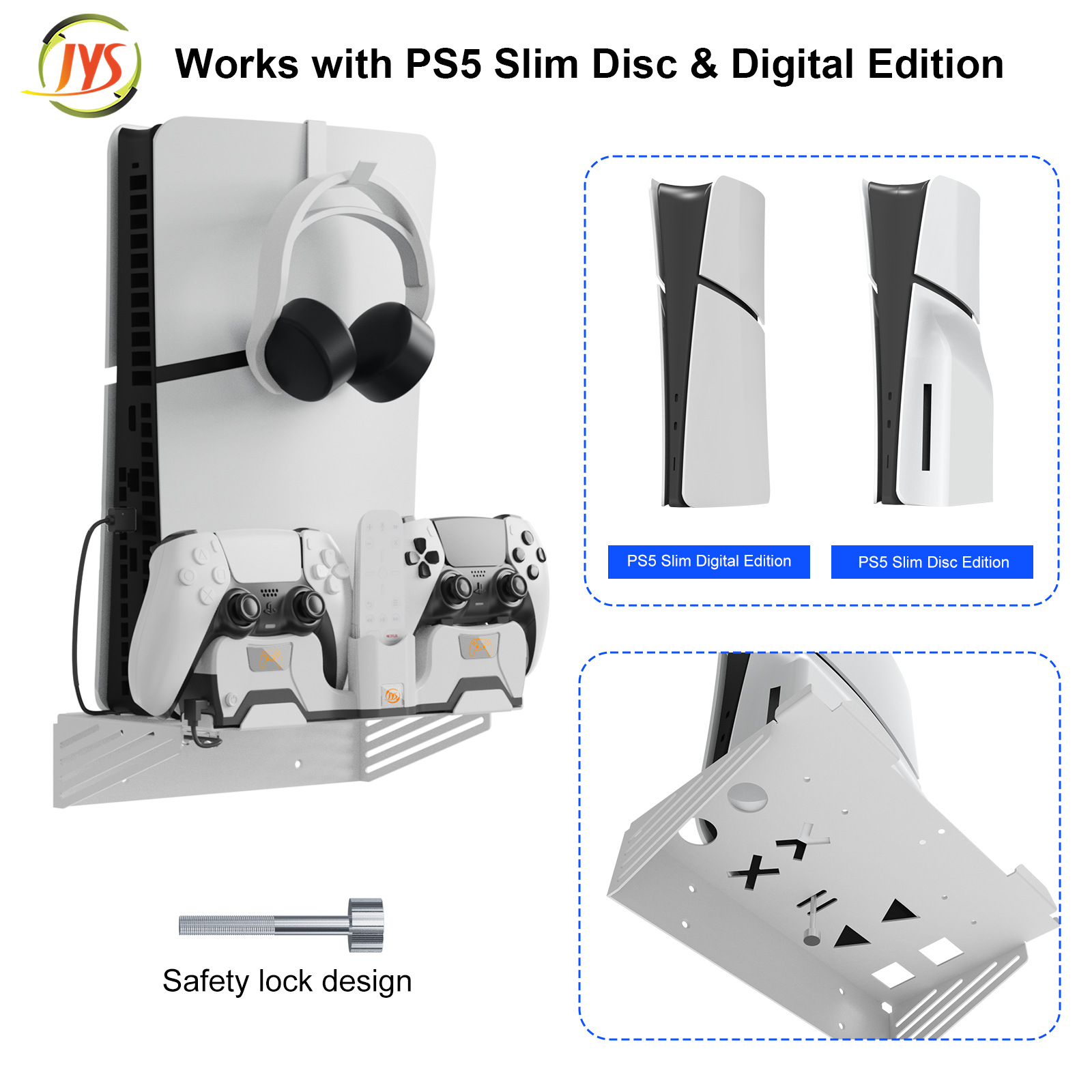 *一站式收纳,可同时收纳展示主机、手柄、遥控器、耳机,让您的游戏配件整洁有序。
