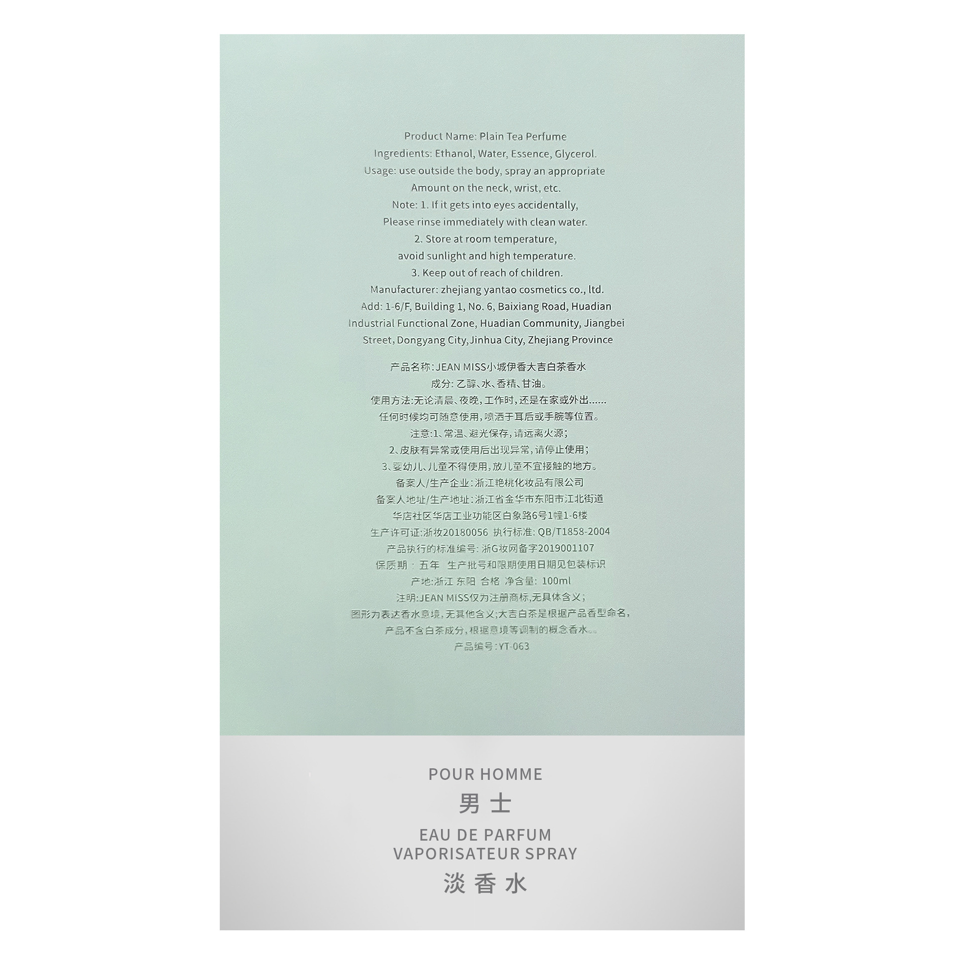 JEAN MISS小城伊香大吉白茶香水浙G妆网备字2019001107