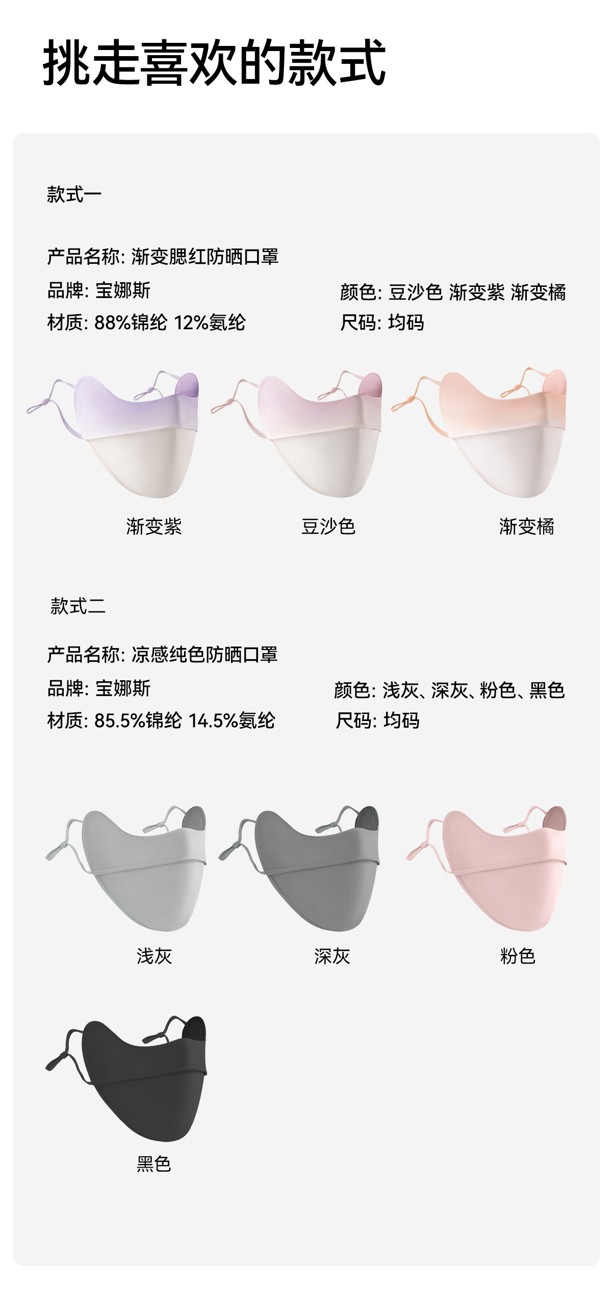 宝娜斯防晒口罩女防紫外线纯色护眼角冰丝口罩骑行户外立体面罩 English | 投诉