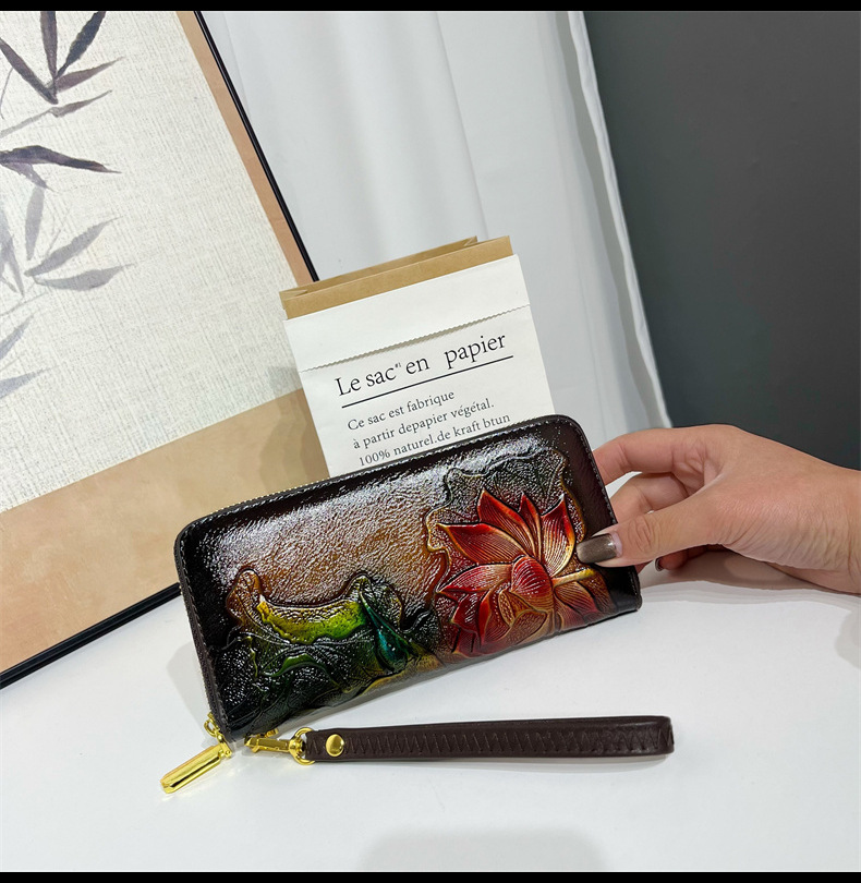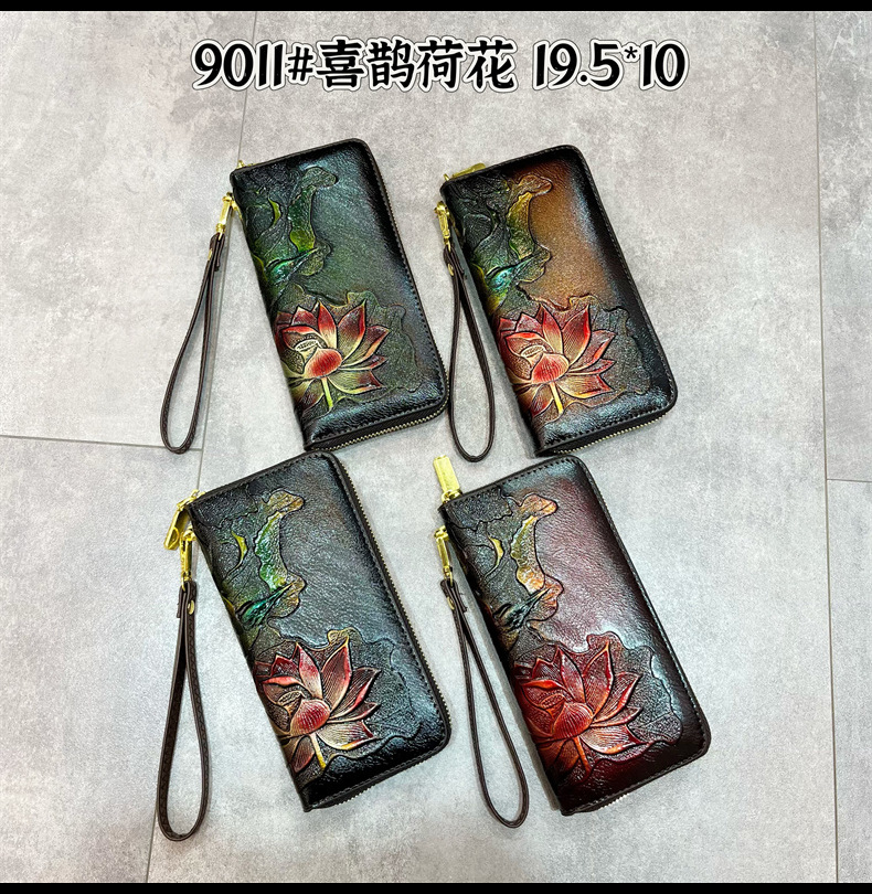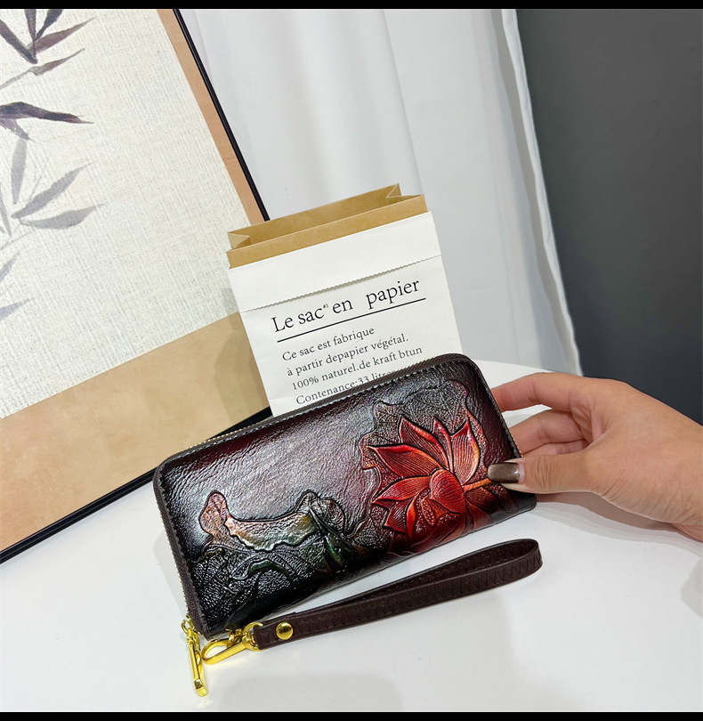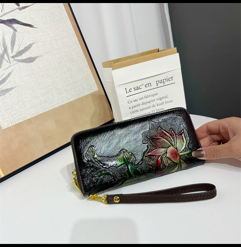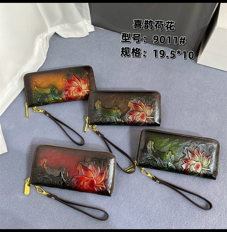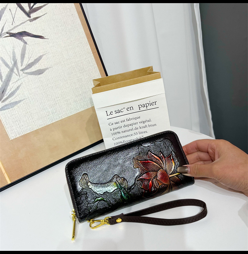 钱包跨境新中式荷花复古质感休闲手拿包国风百搭气质中年包包女