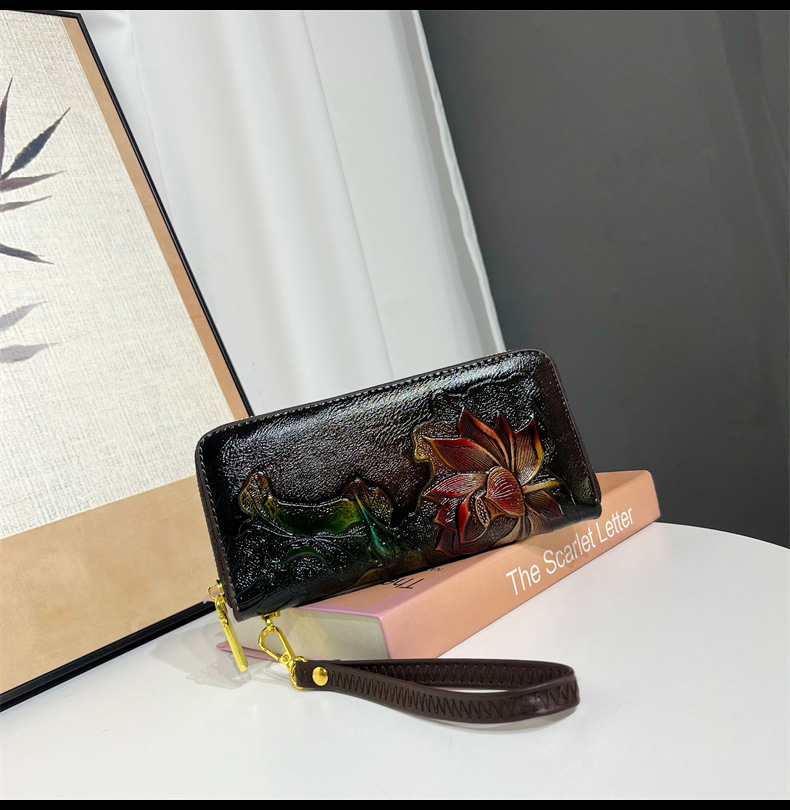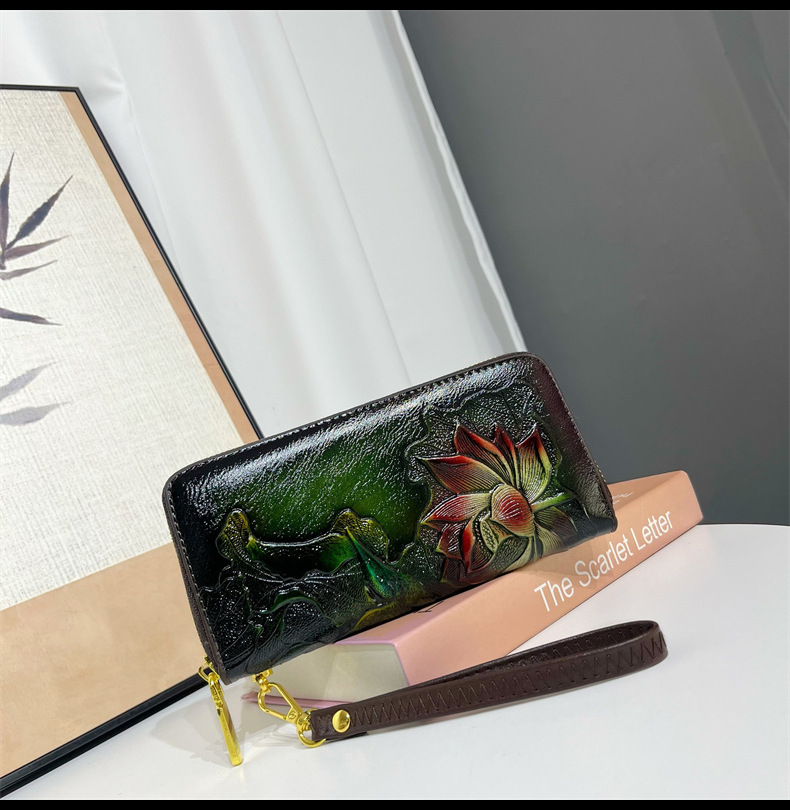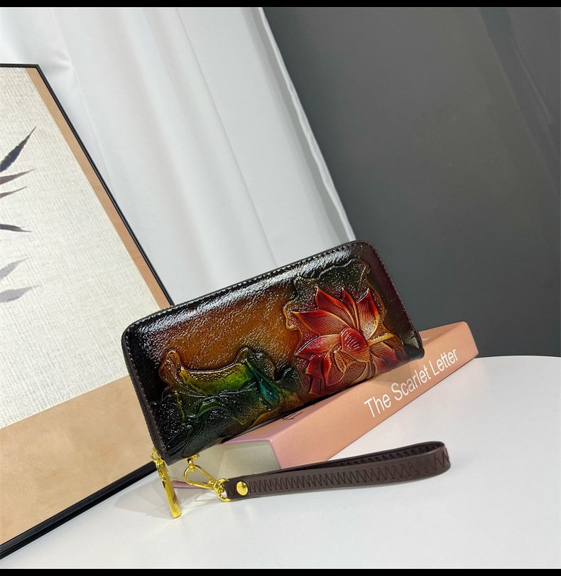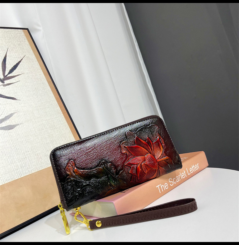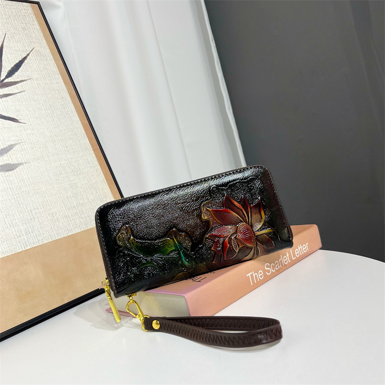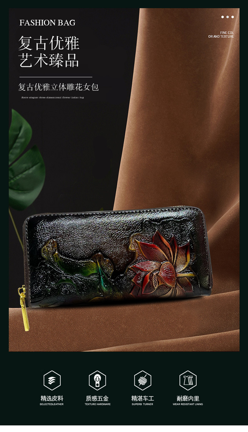钱包跨境新中式荷花复古质感休闲手拿包国风百搭气质中年包包女