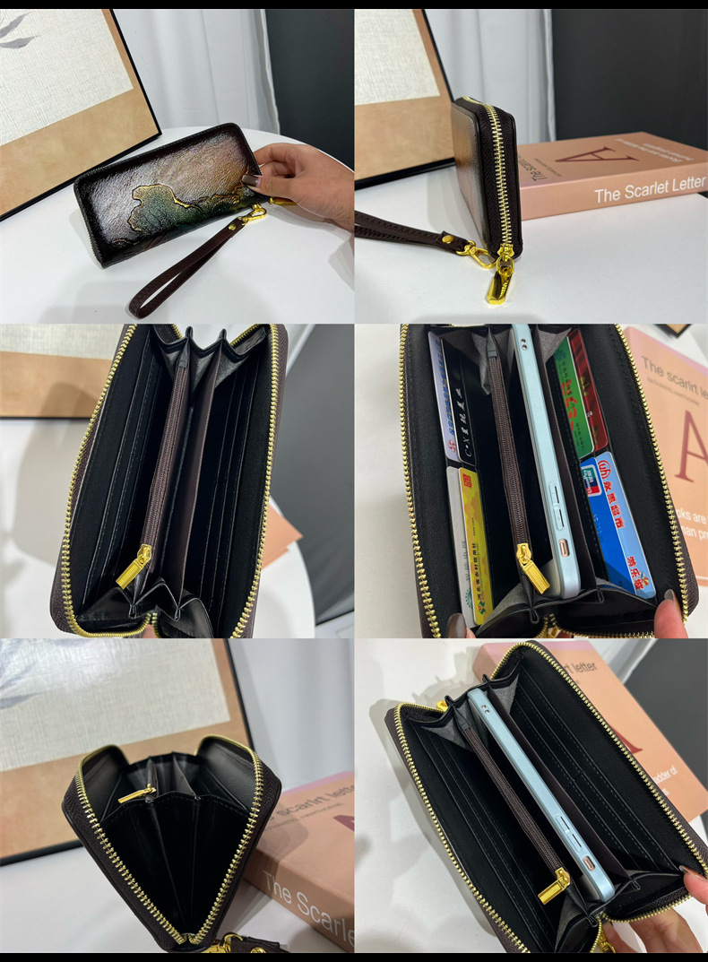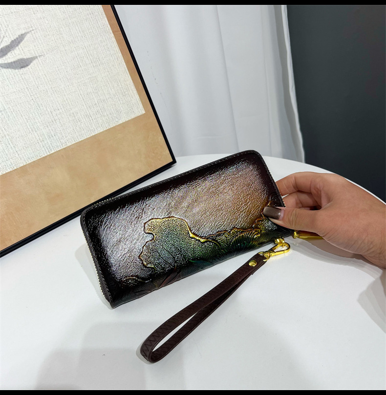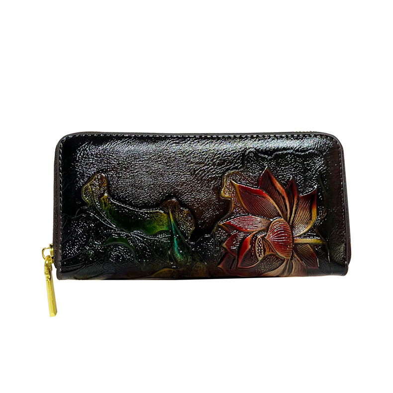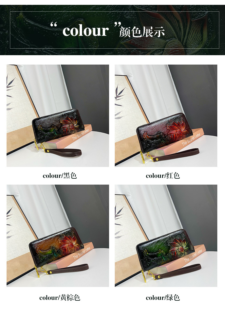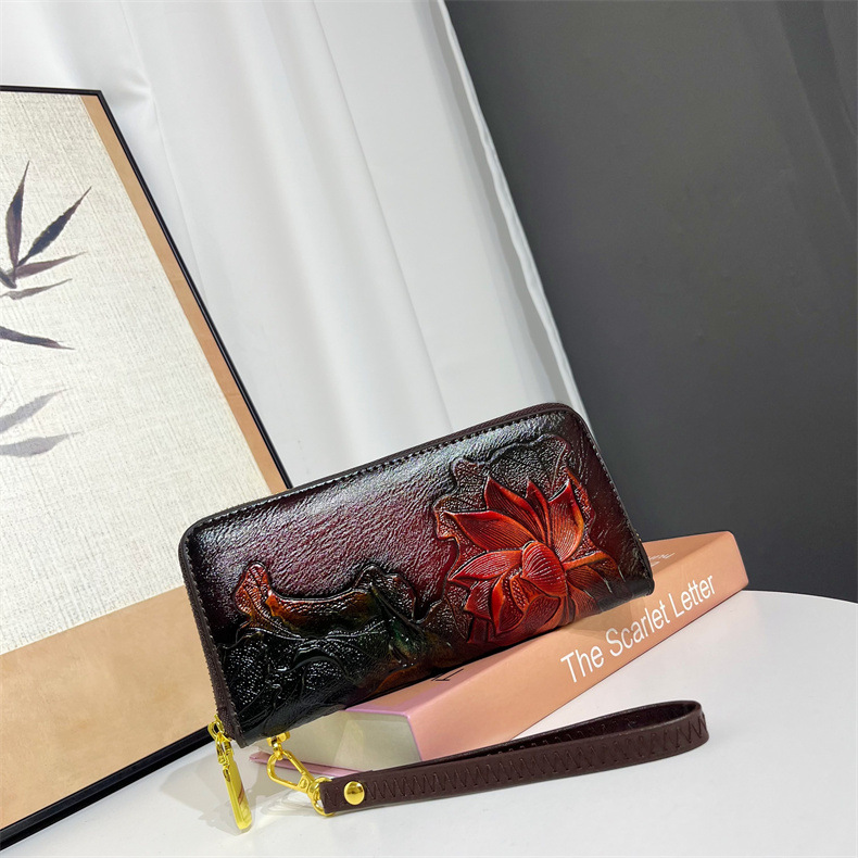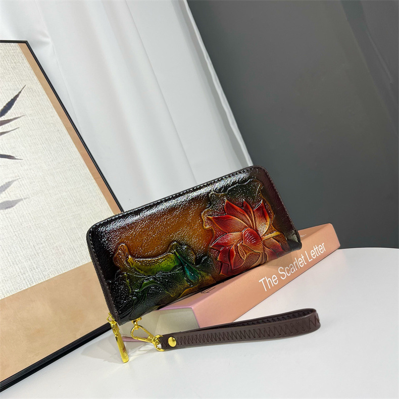 钱包跨境新中式荷花复古质感休闲手拿包国风百搭气质中年包包女