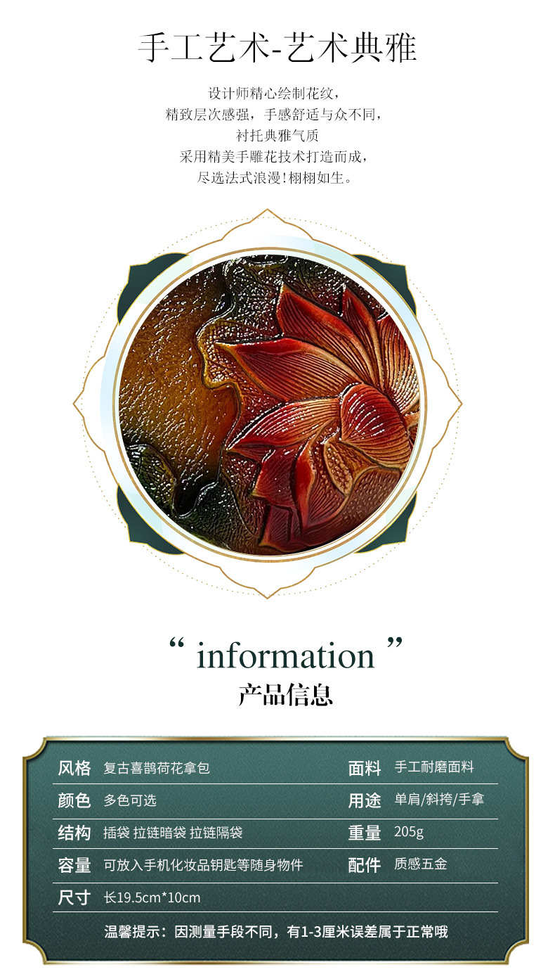 钱包跨境新中式荷花复古质感休闲手拿包国风百搭气质中年包包女 投诉