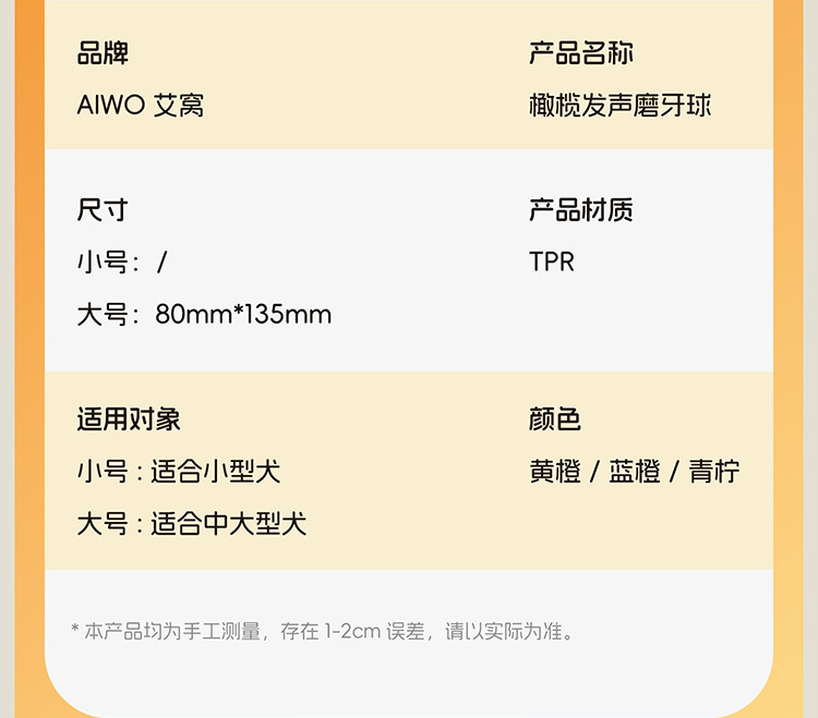 产品名称:橄榄发声磨牙球(大号)