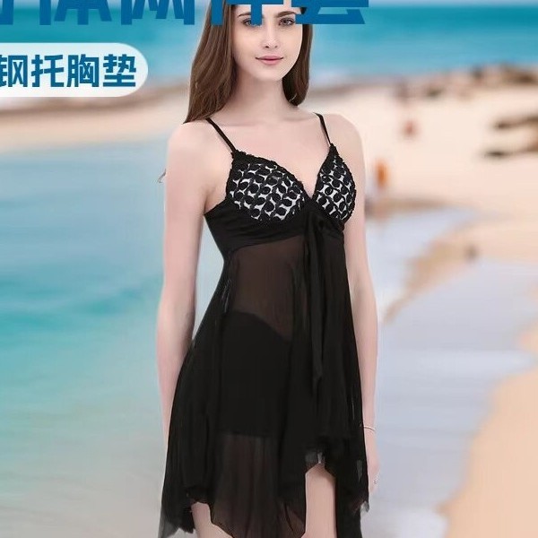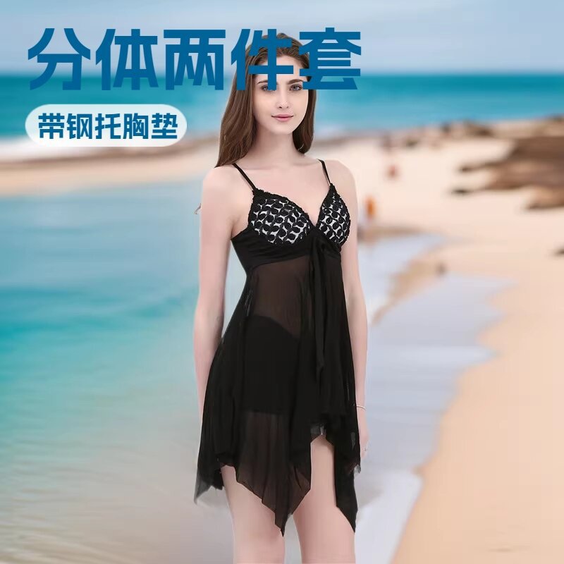 分体两件套女士性感显身材泳衣. 里面是平角短裤. 钢圈硬包.吊带款. 也可做睡衣穿