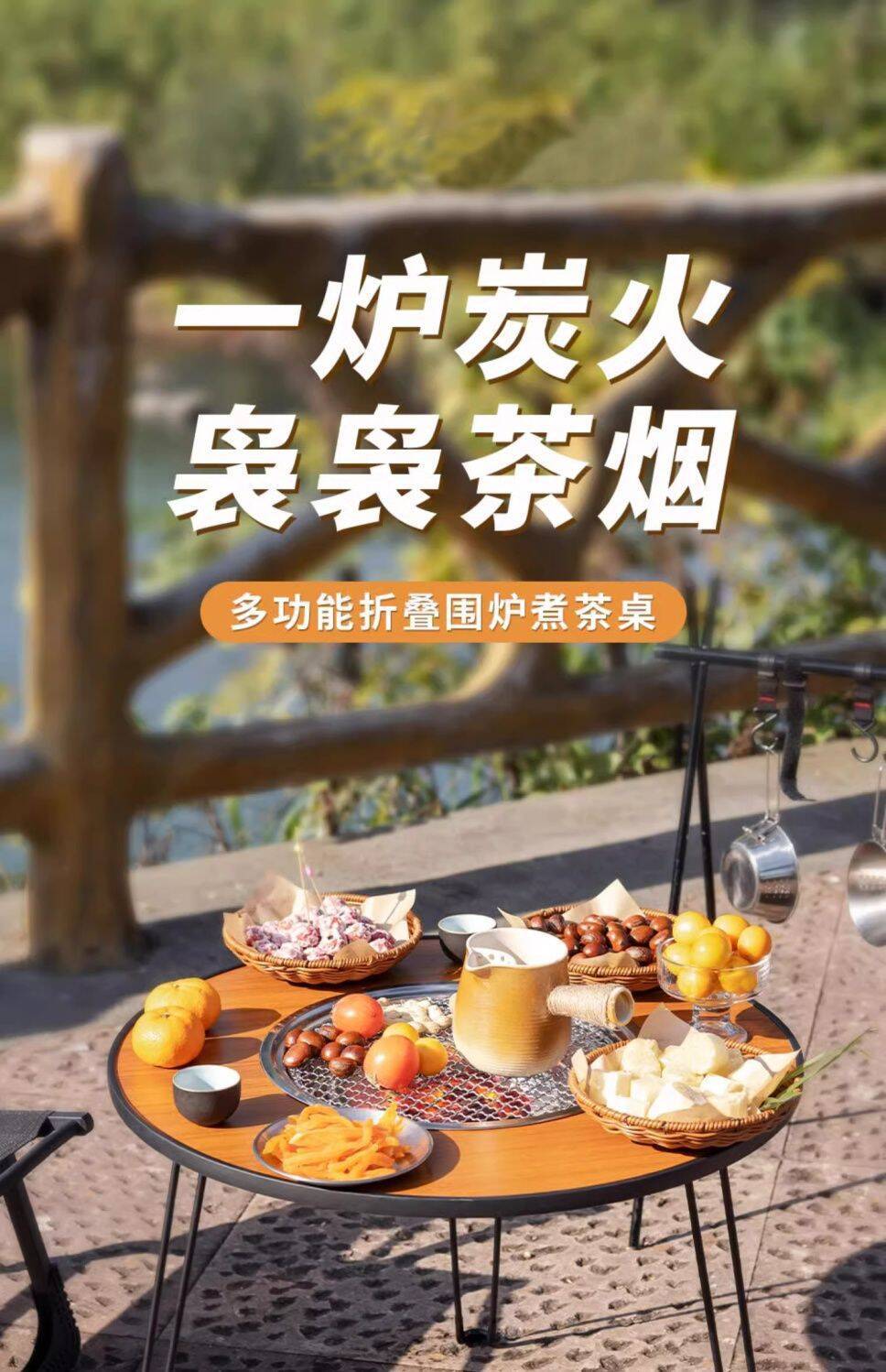 咖啡桌围炉煮茶家用户外野炊露营折叠烧烤桌子木质室内庭院小圆桌 English | 投诉