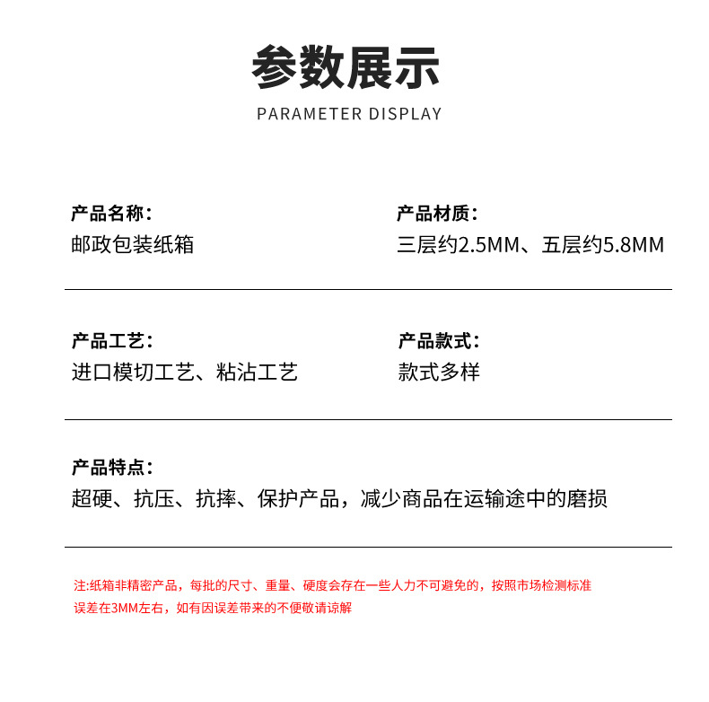 | 3号(430*210*270);五层特硬E | ¥205 | 99999个可售 |