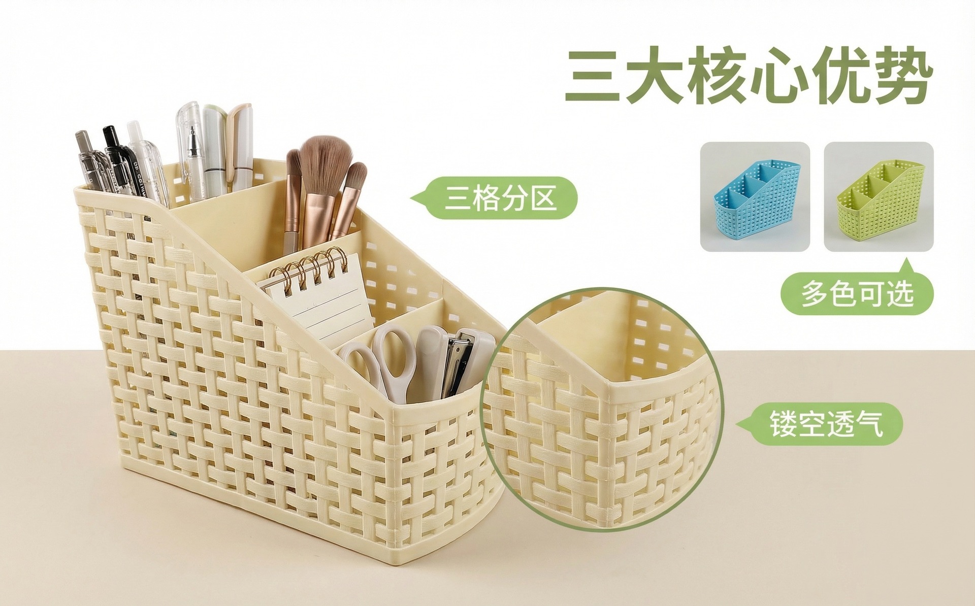 材质: 塑料 功能: 分格 产品类别: 桌面收纳盒 品牌: 其他 容量: 1 收纳场景: 客厅,卧室,书房 是否进口: 否 型号: 001笔筒 具体材质: pp料 塑料新料占比: 60%——80%新料 商品特性: 无盖,带分格 适用范围: 杂物 风格: 现代简约 图案: 纯色 规格: 8*14.5*12.5 产地: 浙江 货号: W4002 加工定制: 是 加印LOGO: 不可以 贸易属性: 外贸 重量: 0.15 kg/个