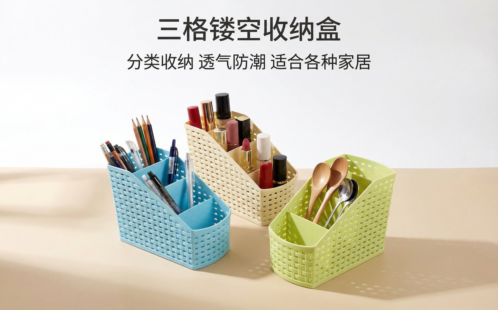 镂空多格桌面化妆品遥控器收纳盒客厅多功能储物盒杂物文具整理盒