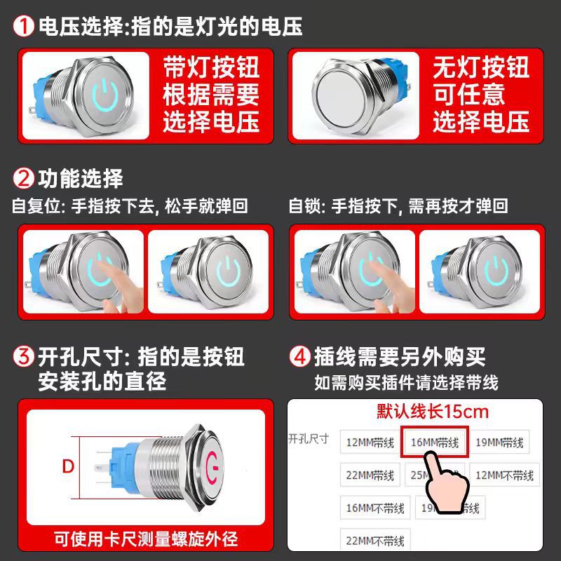 | 16MM自锁带灯 | ¥340 | 99999689个可售 |