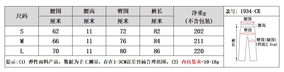 尺码信息/Size information