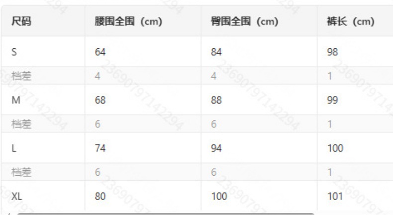 尺码信息/Size information