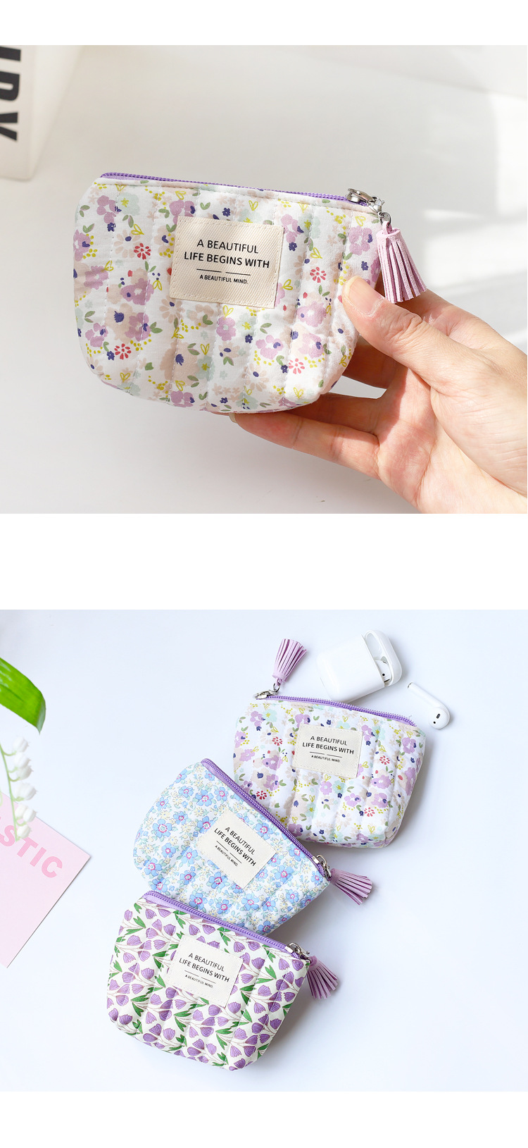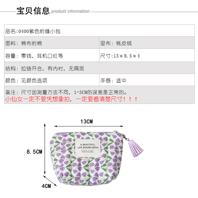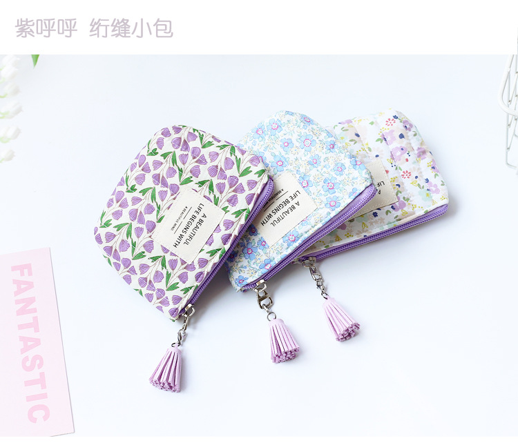 时尚冬款少女心可爱碎花零钱包小巧便携口红卡包收纳拉链小包包女 English | 投诉