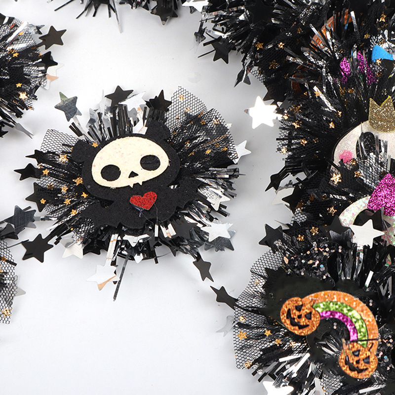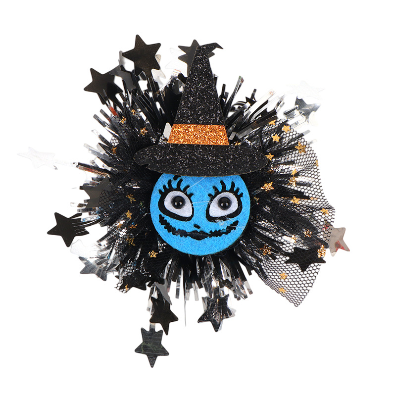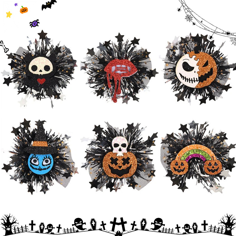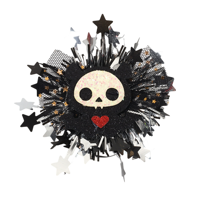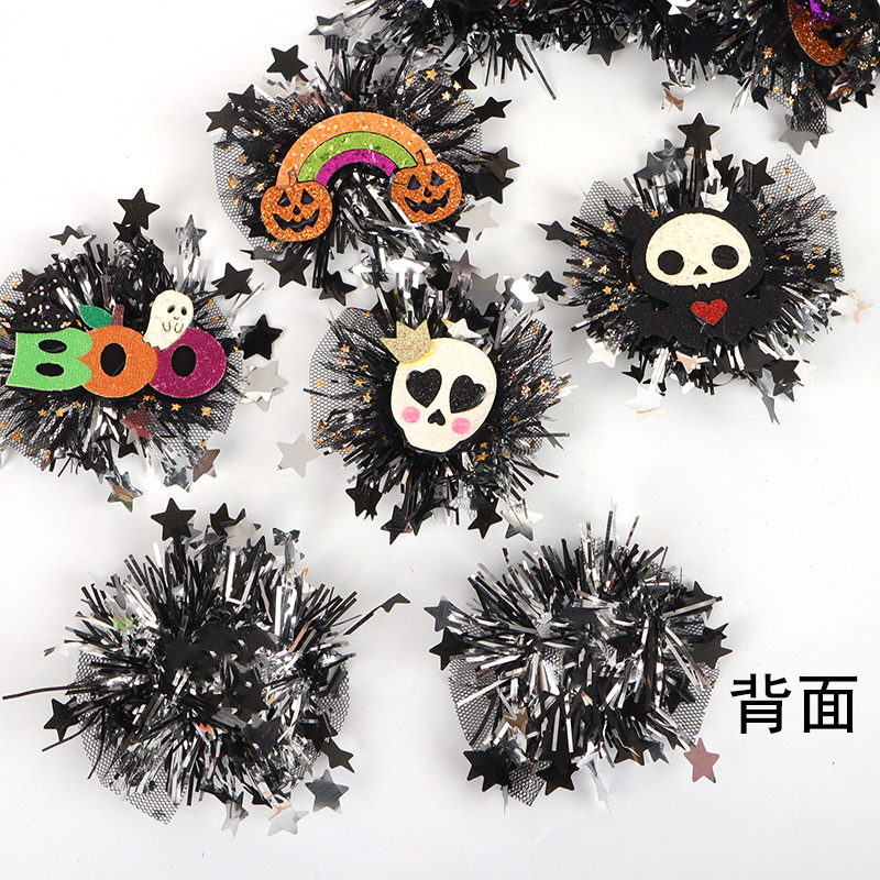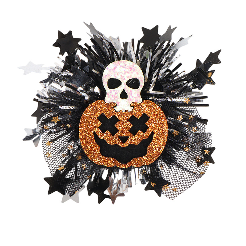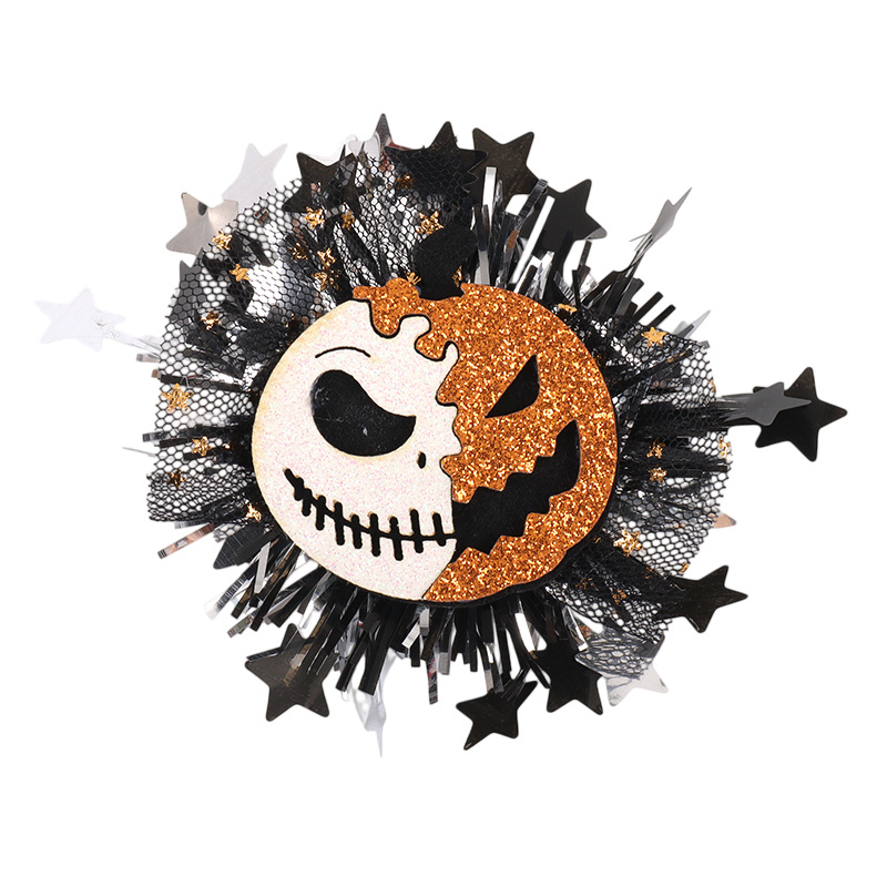 新款万圣节金粉网纱毛条配饰 骷髅南瓜造型 儿童节日派对头饰配件