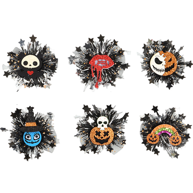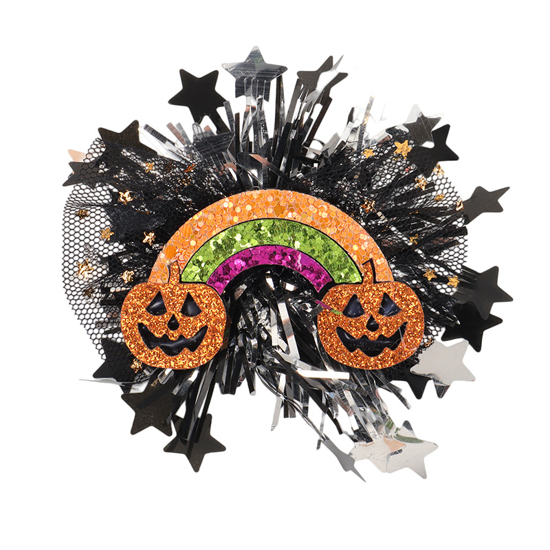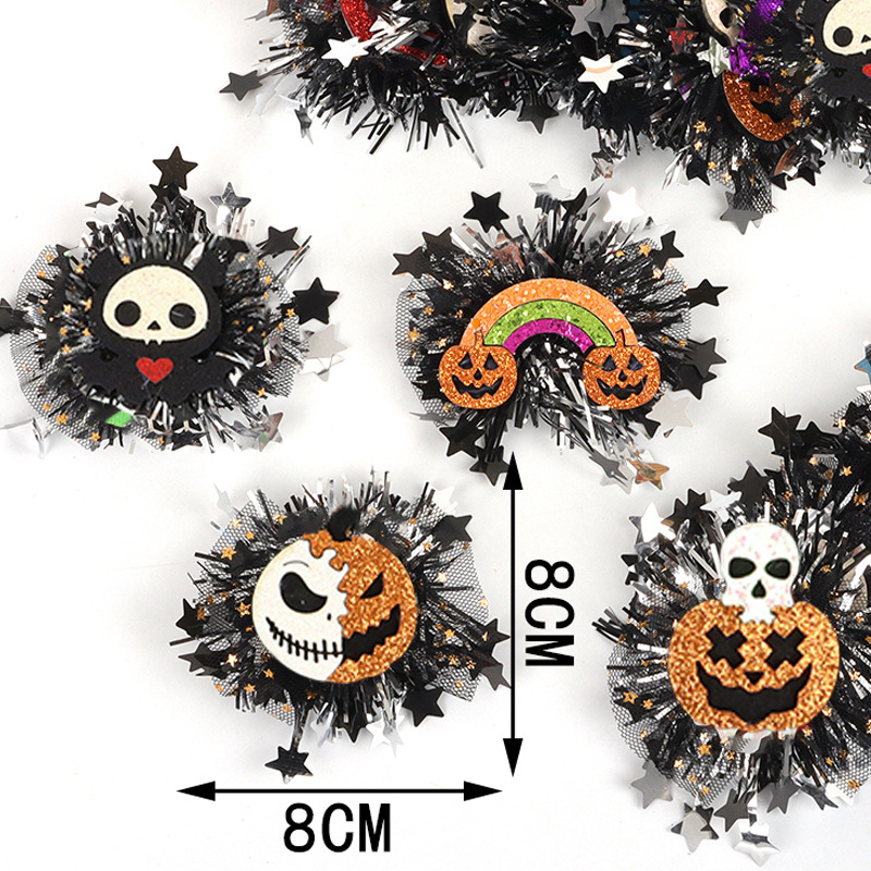 新款万圣节金粉网纱毛条配饰 骷髅南瓜造型 儿童节日派对头饰配件 投诉