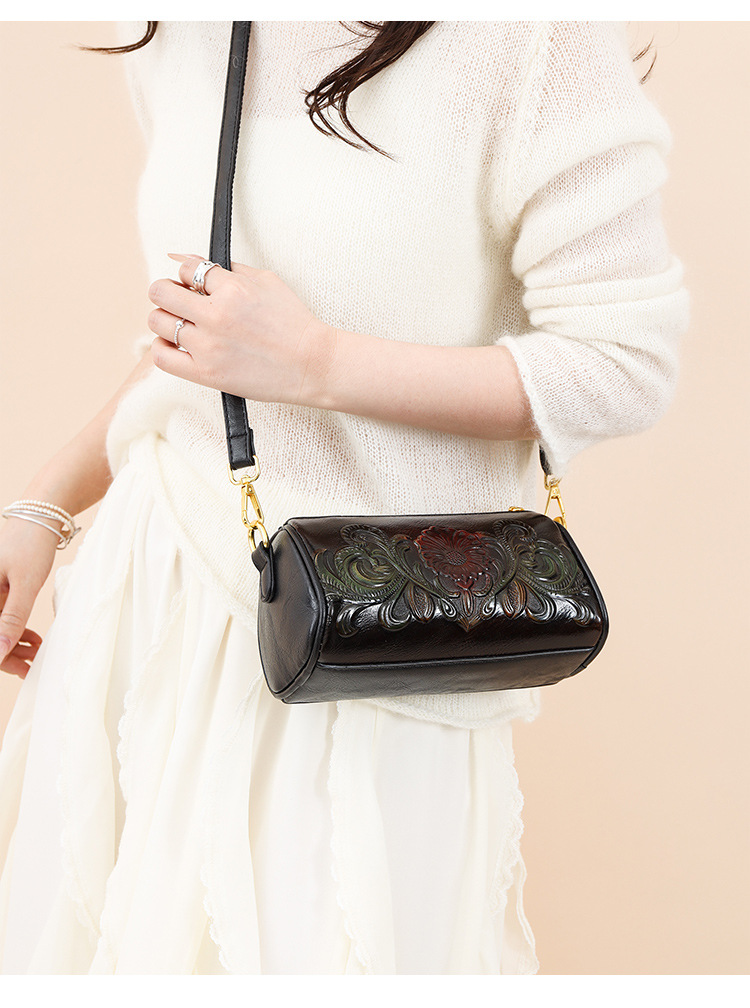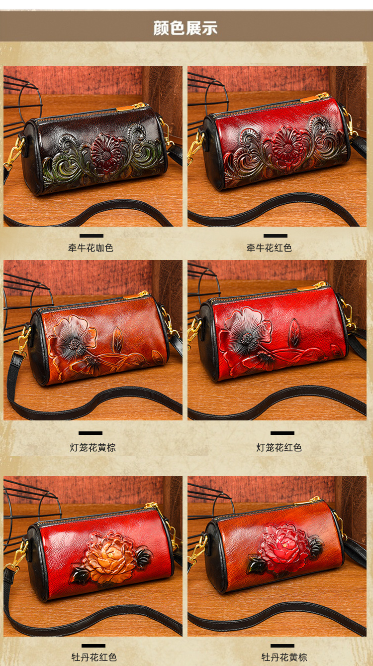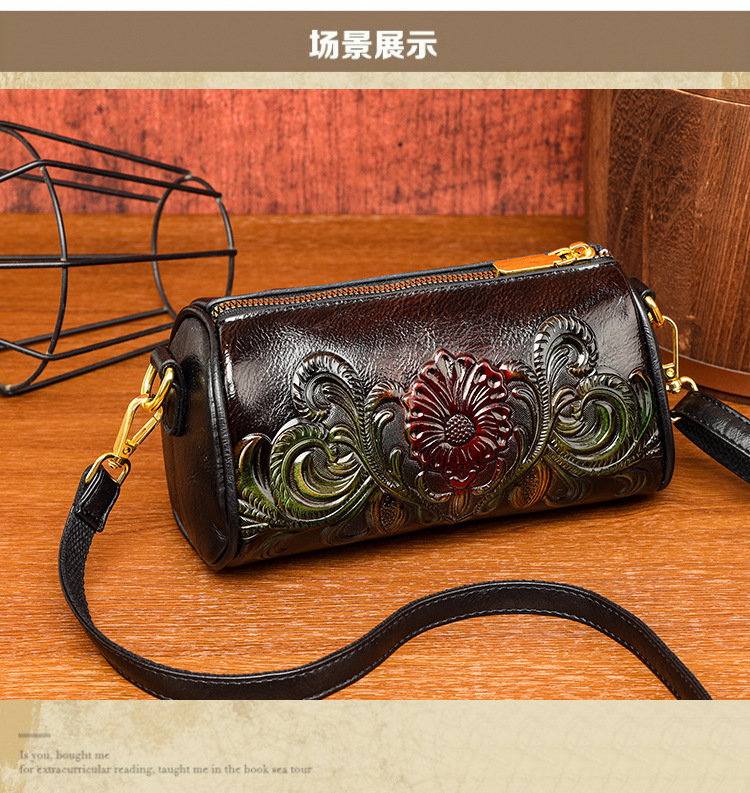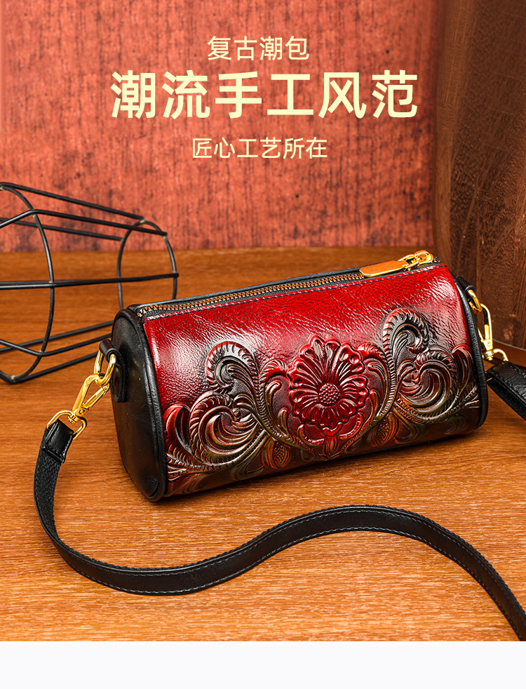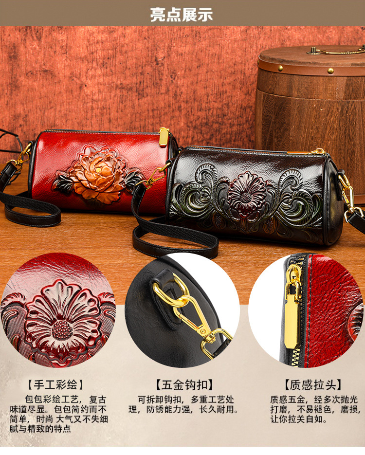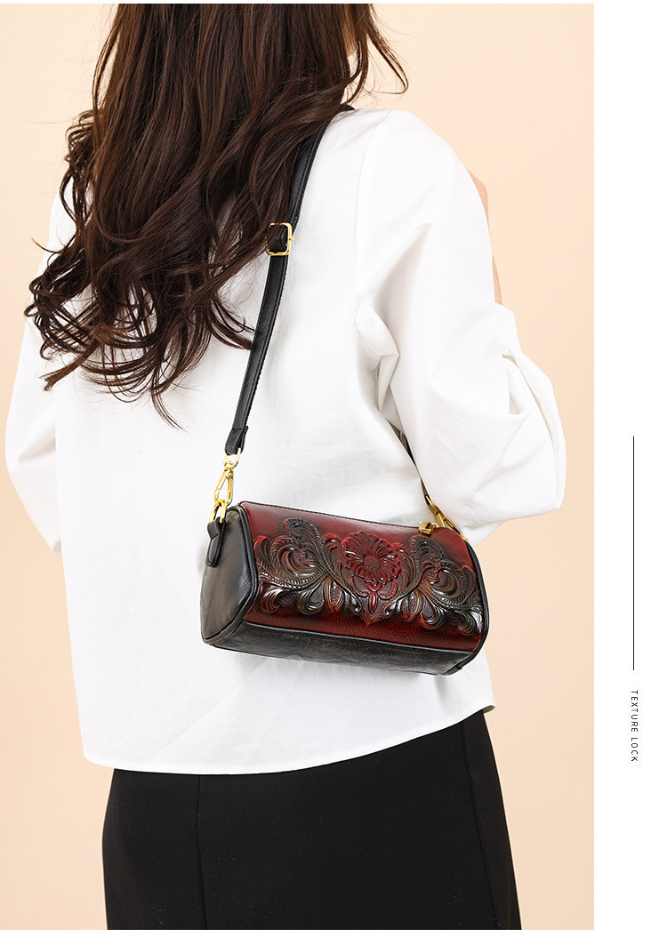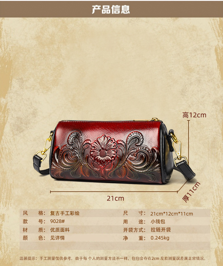 单肩包跨境压花质感休闲百搭斜挎包民族风通勤国风女士圆筒包包 投诉