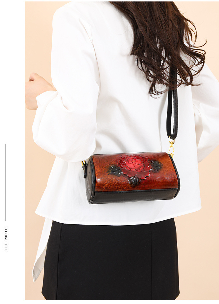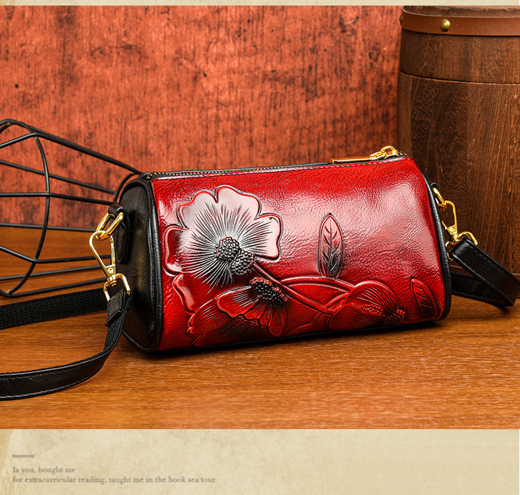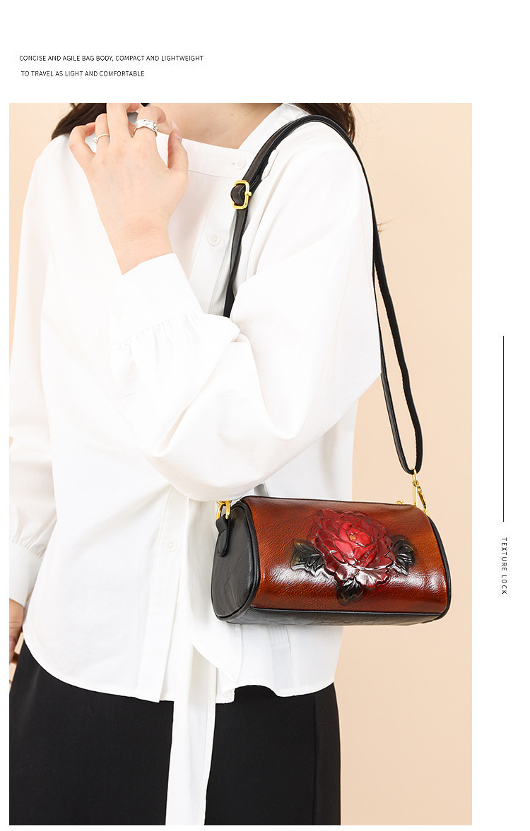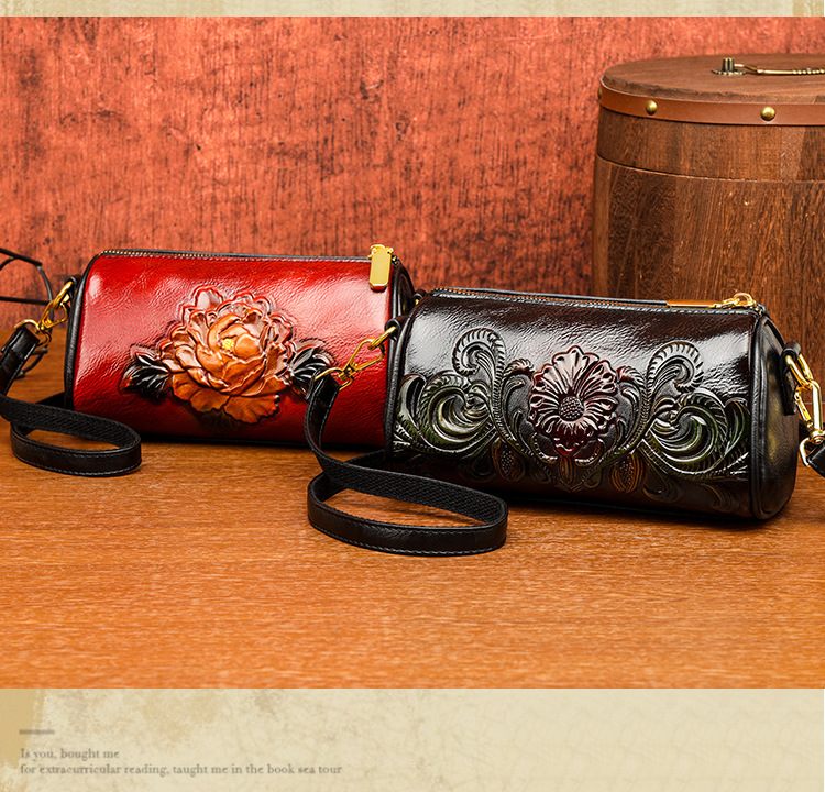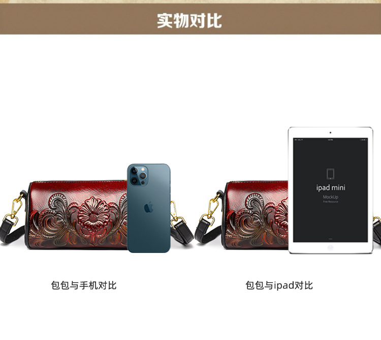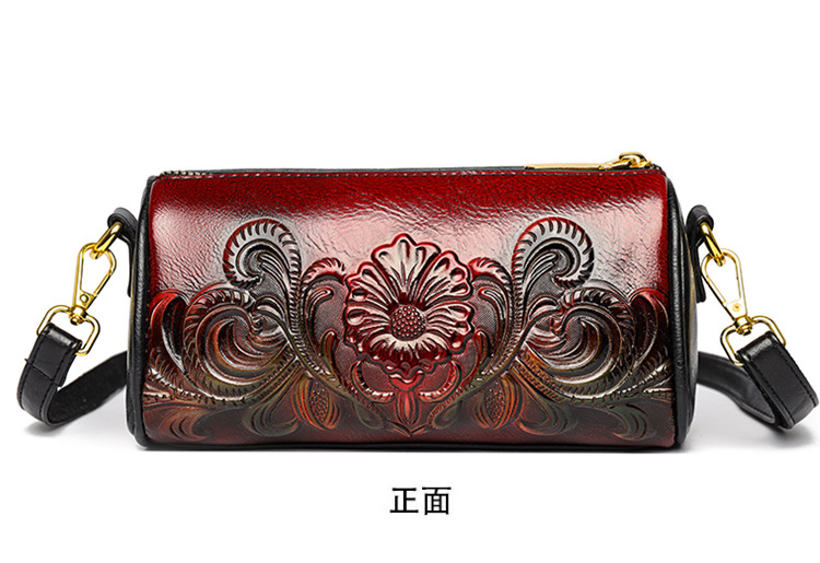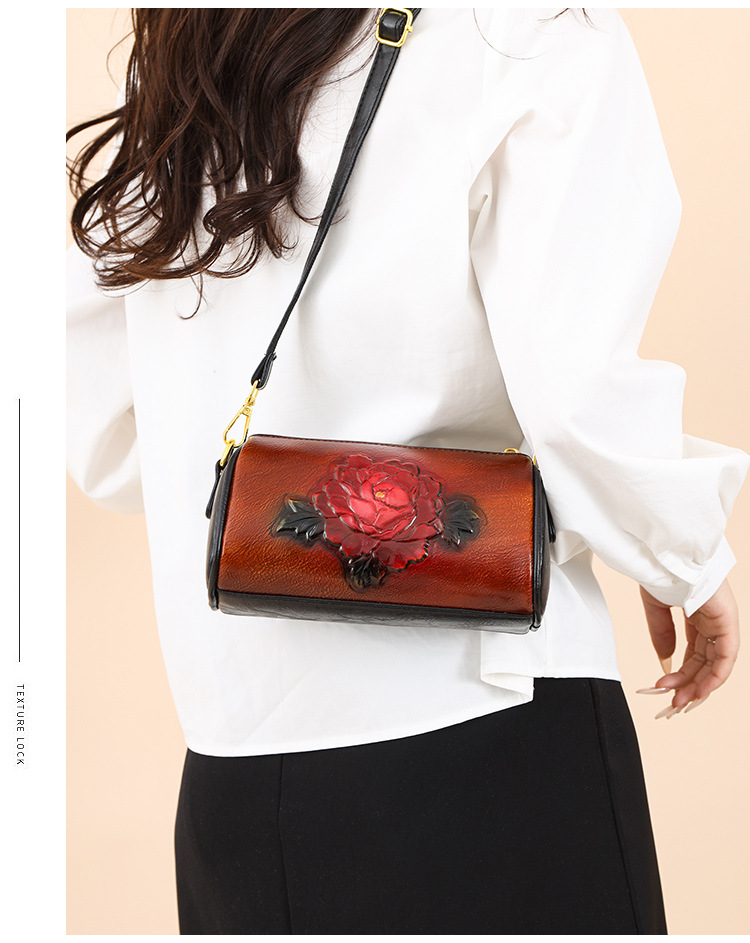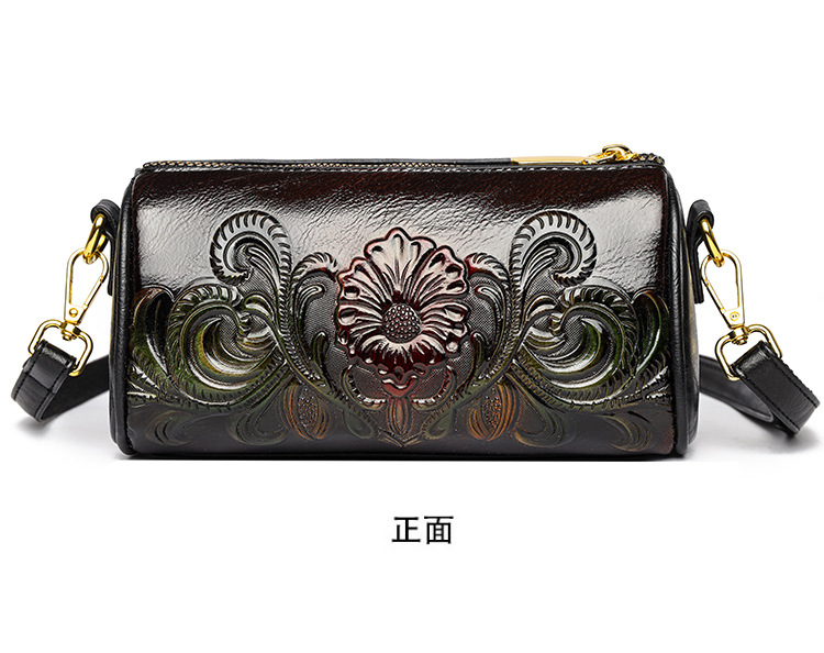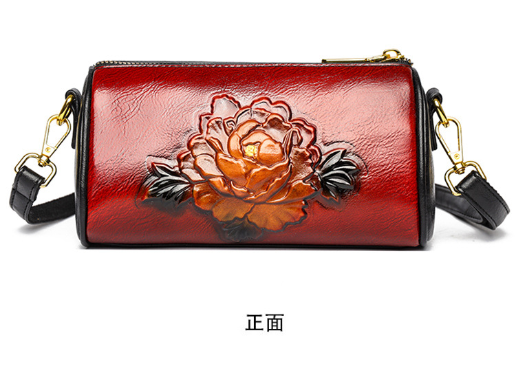 单肩包跨境压花质感休闲百搭斜挎包民族风通勤国风女士圆筒包包 投诉
