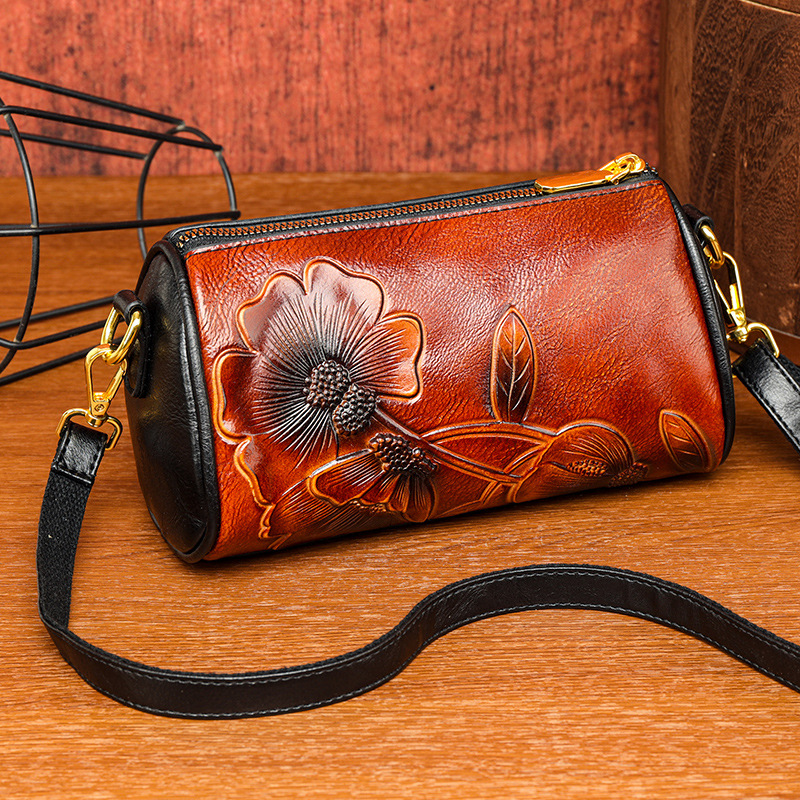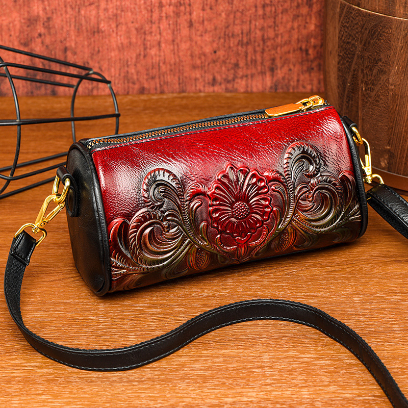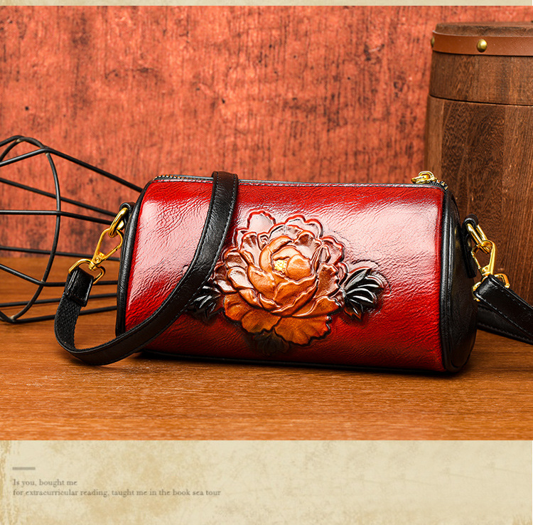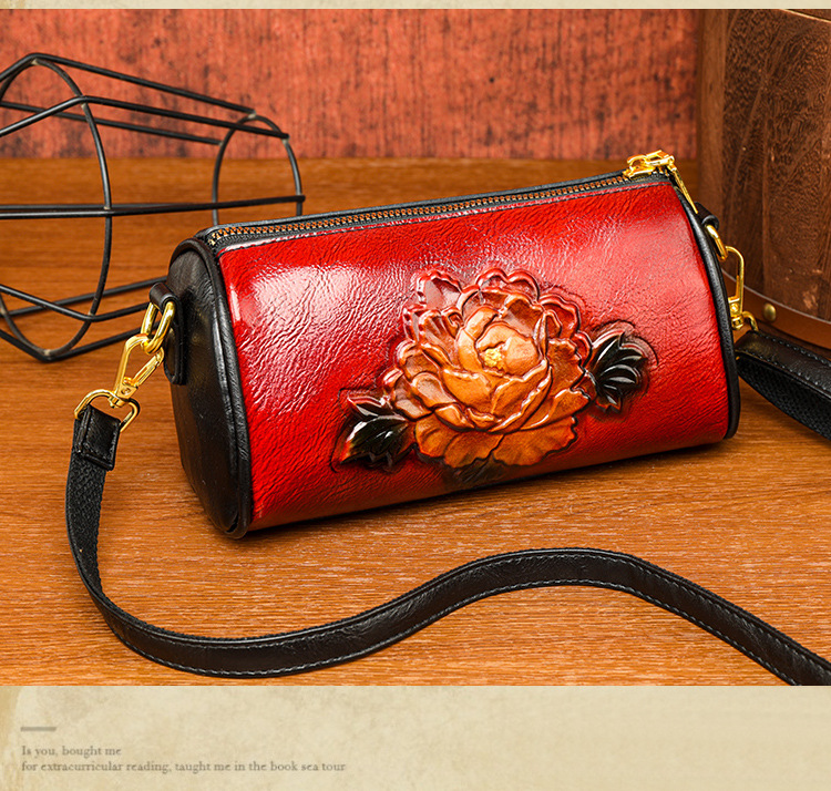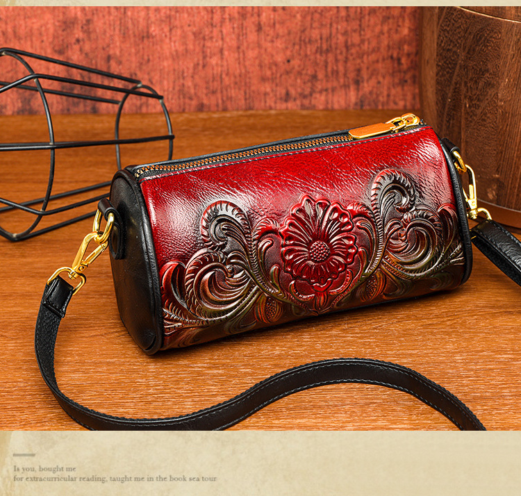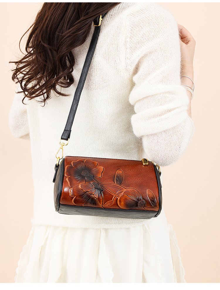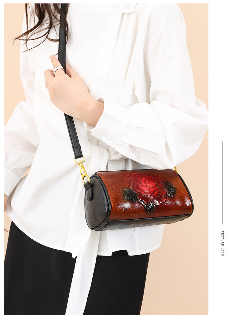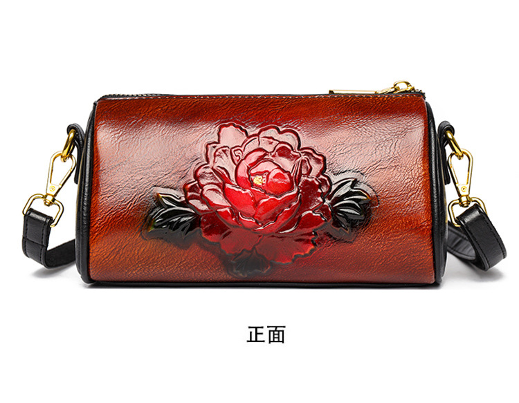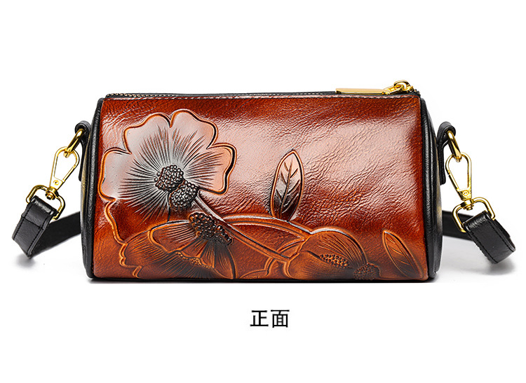 单肩包跨境压花质感休闲百搭斜挎包民族风通勤国风女士圆筒包包 投诉