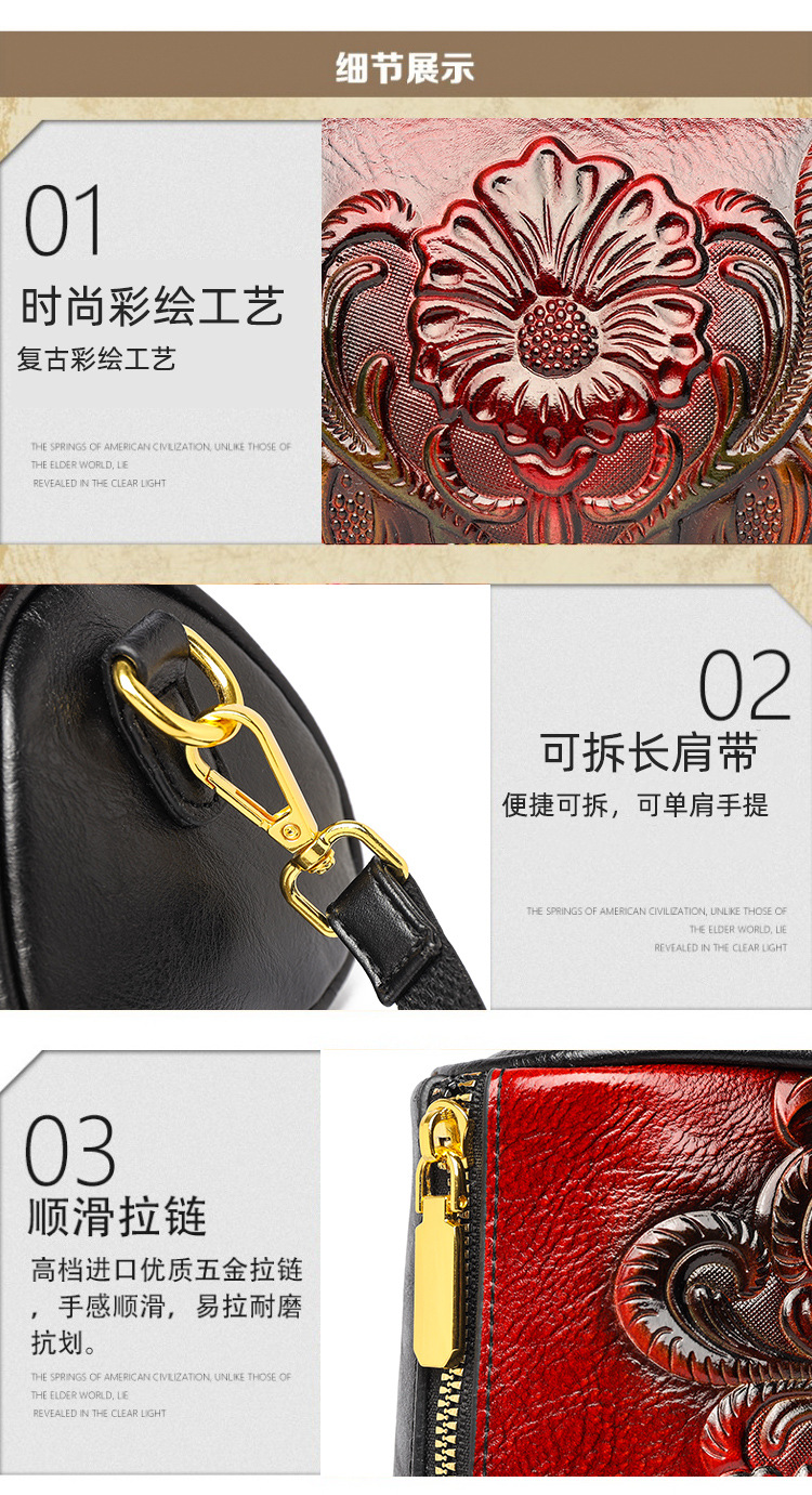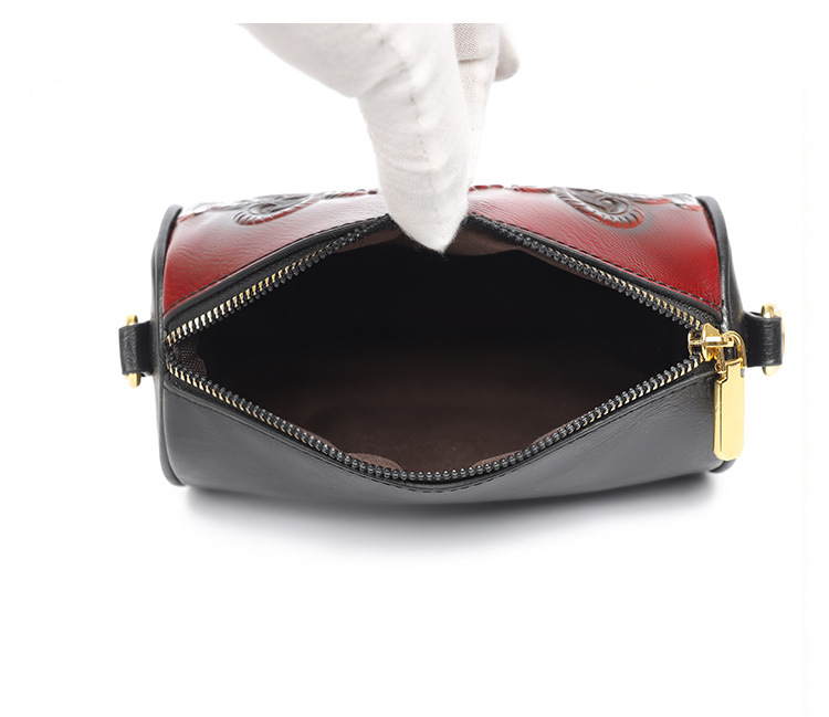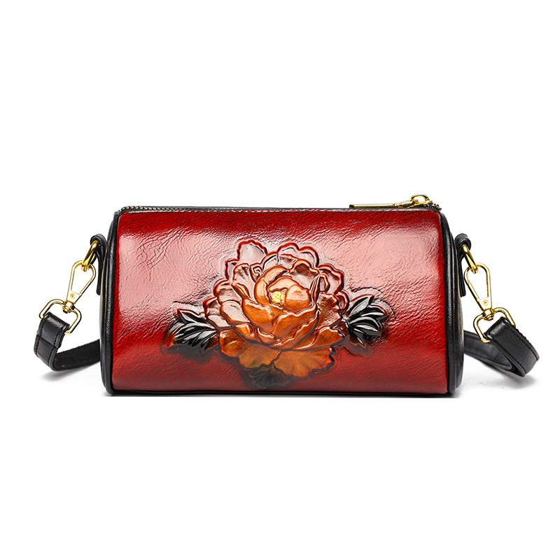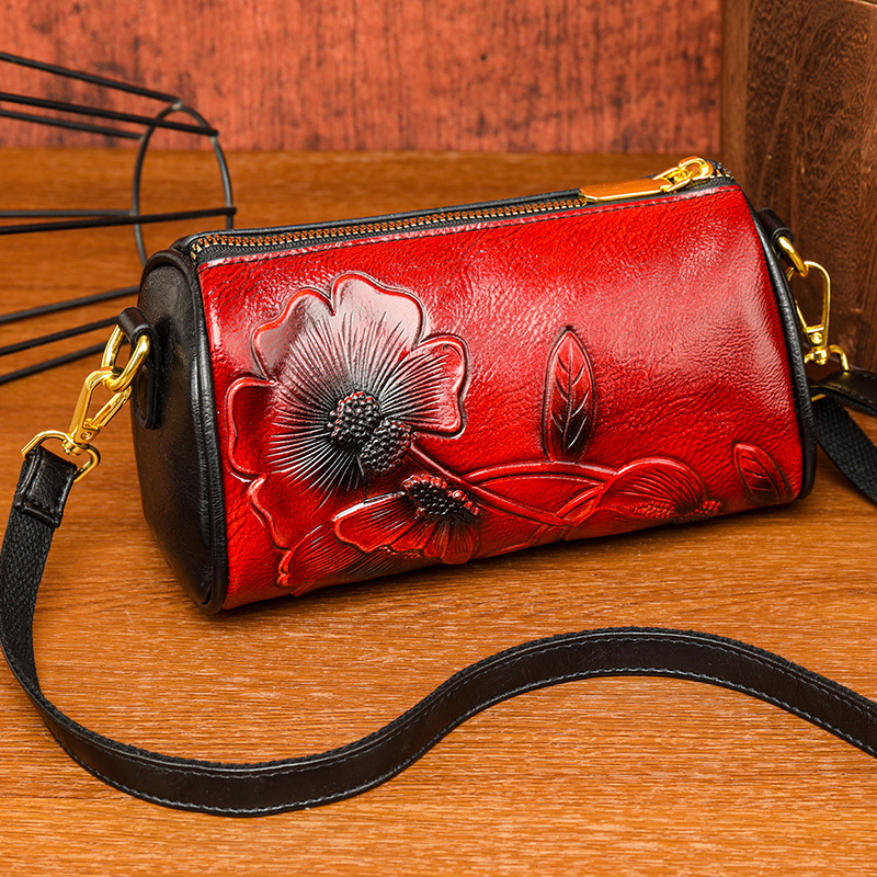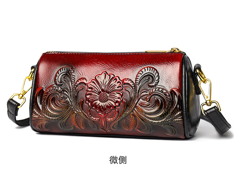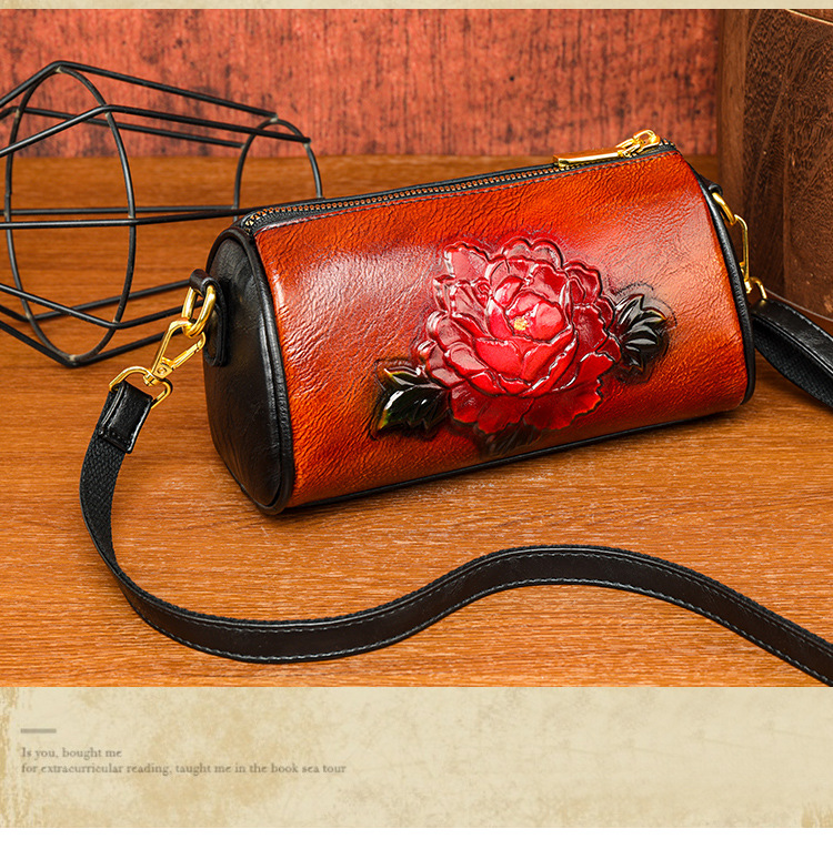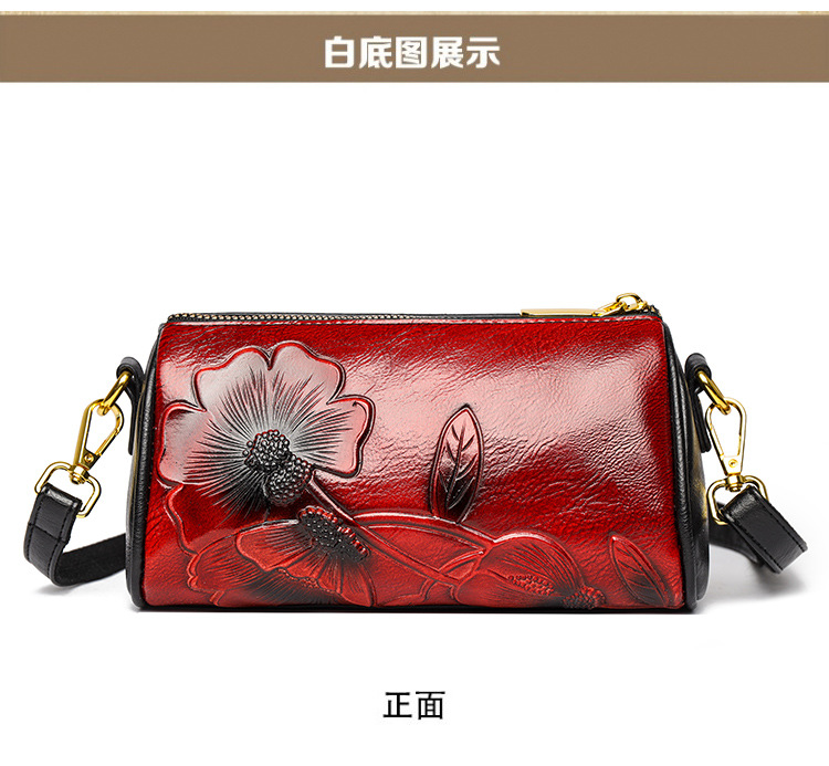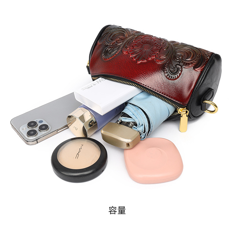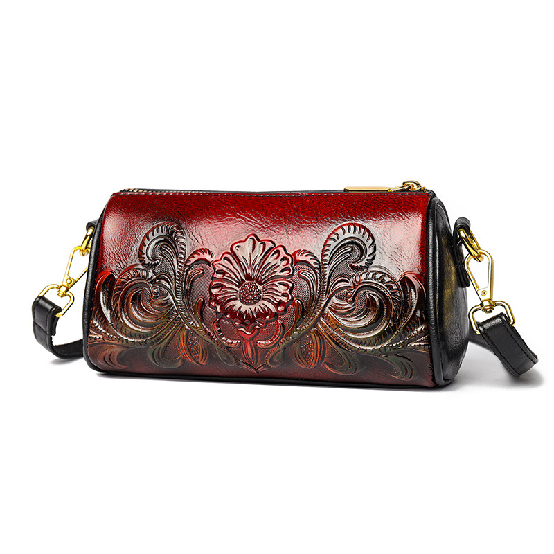 单肩包跨境压花质感休闲百搭斜挎包民族风通勤国风女士圆筒包包 投诉