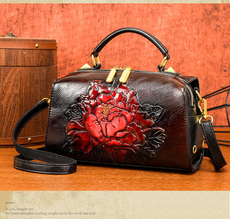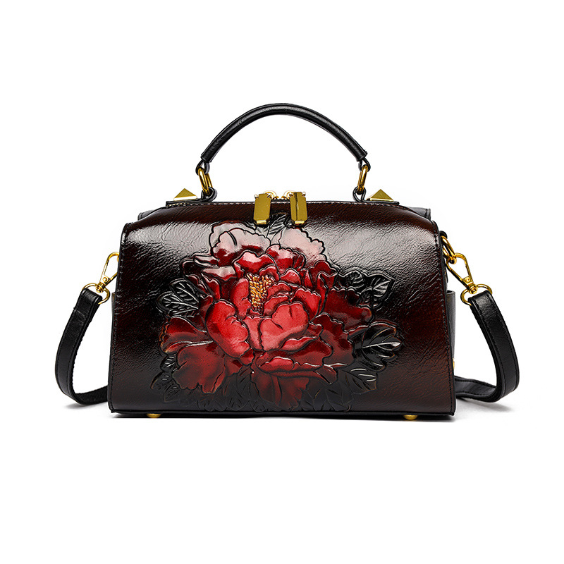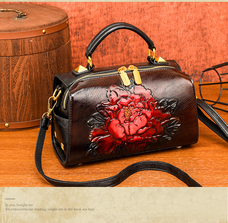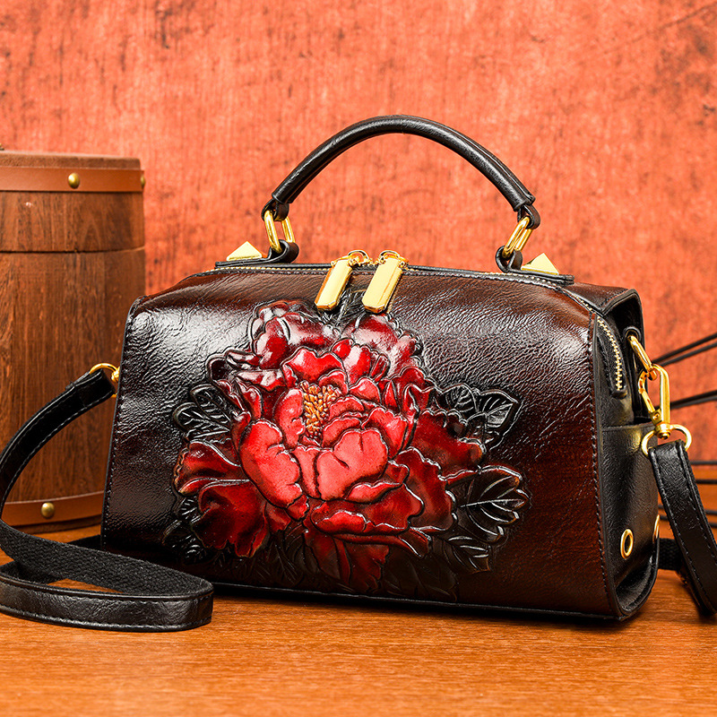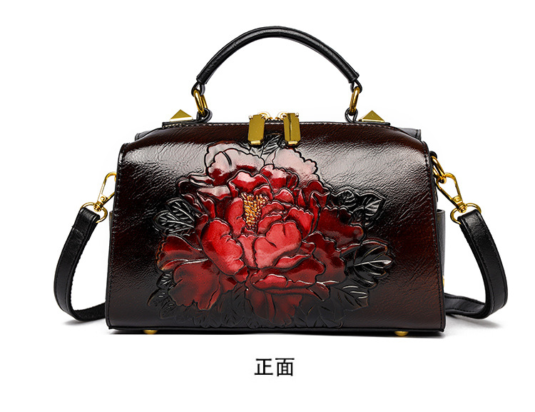 手提包民族风压花质感波士顿包休闲百搭单肩包新中式通勤包包女