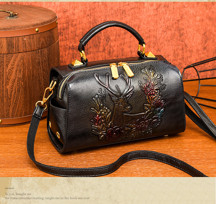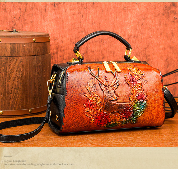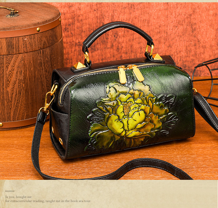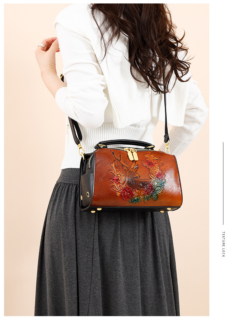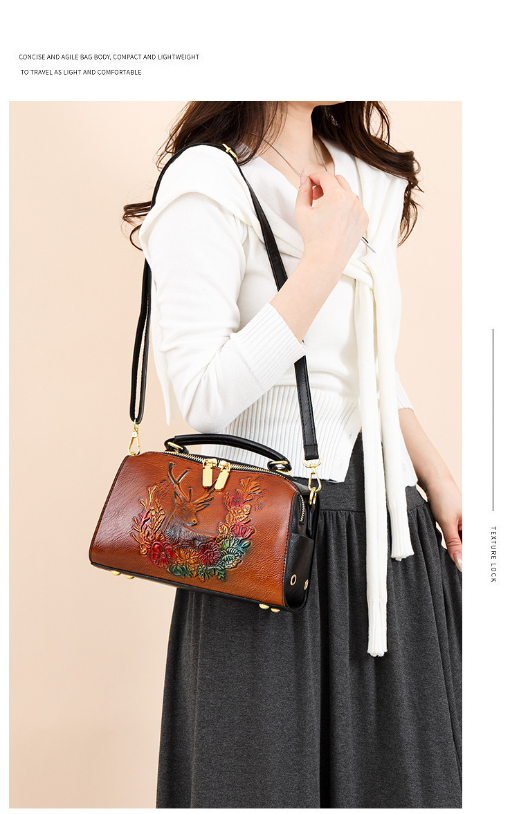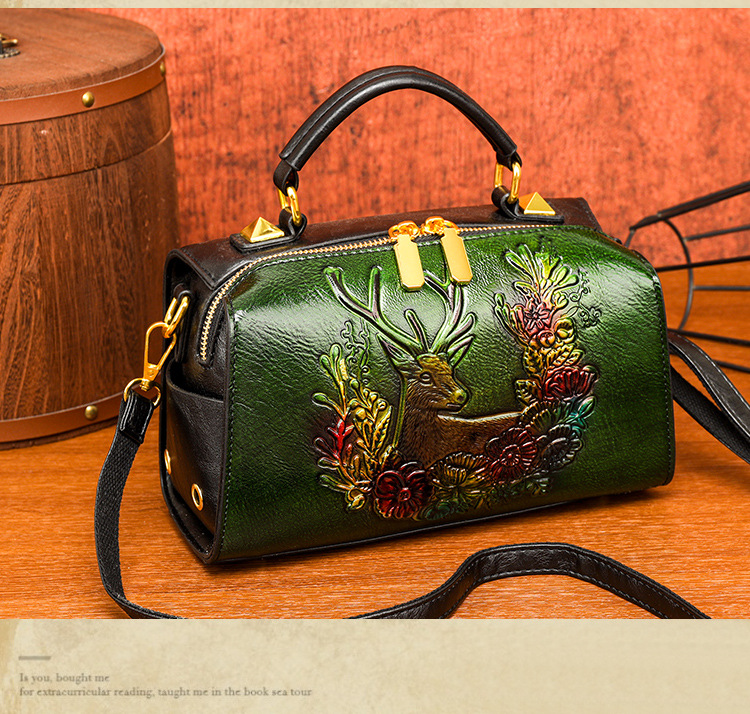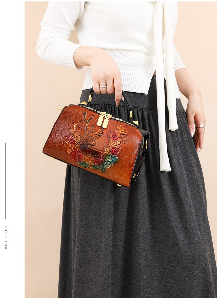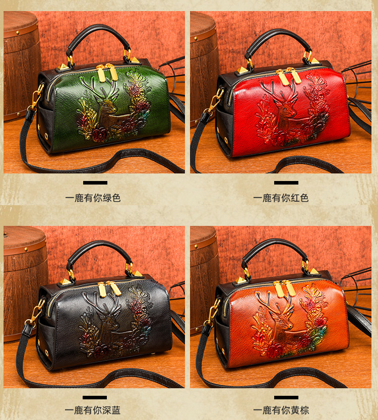 材质: 手工耐磨面料 箱包潮流款式: 波士顿包 箱包大小: 小 流行元素: 车缝线,压花 开盖方式: 拉链 里料质地: 涤纶 品牌: 其他 颜色: 牡丹花绿色,牡丹花咖色,一鹿有你绿,一鹿 风格: 文艺国风 货号: 9034-2#复古手工彩绘 上市年份季节: 2025年春季 箱包形状: 枕头型 包内部结构: 拉链暗袋,手机袋,夹层拉链袋 硬度: 软 外袋种类: 内贴袋 有可授权的自有品牌: 否 有无夹层: 无 肩带根数: 单根 适用场景: 日常搭配 重量: 0.495 kg/个