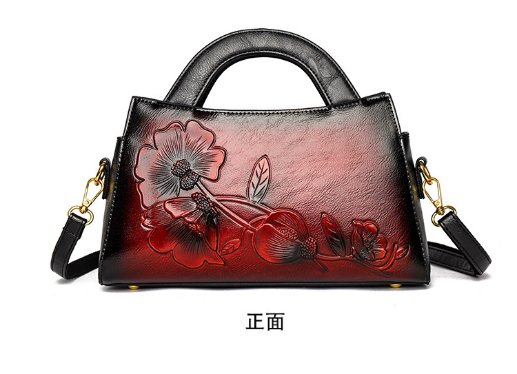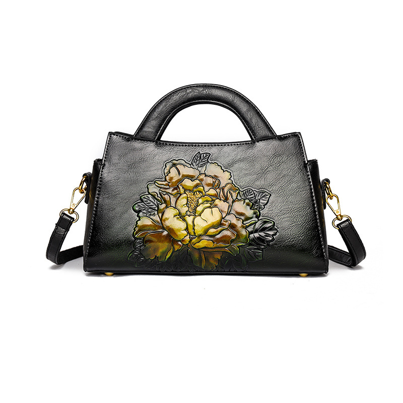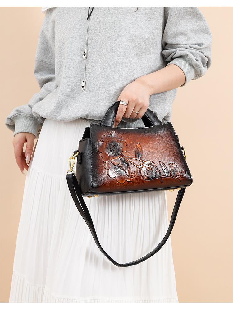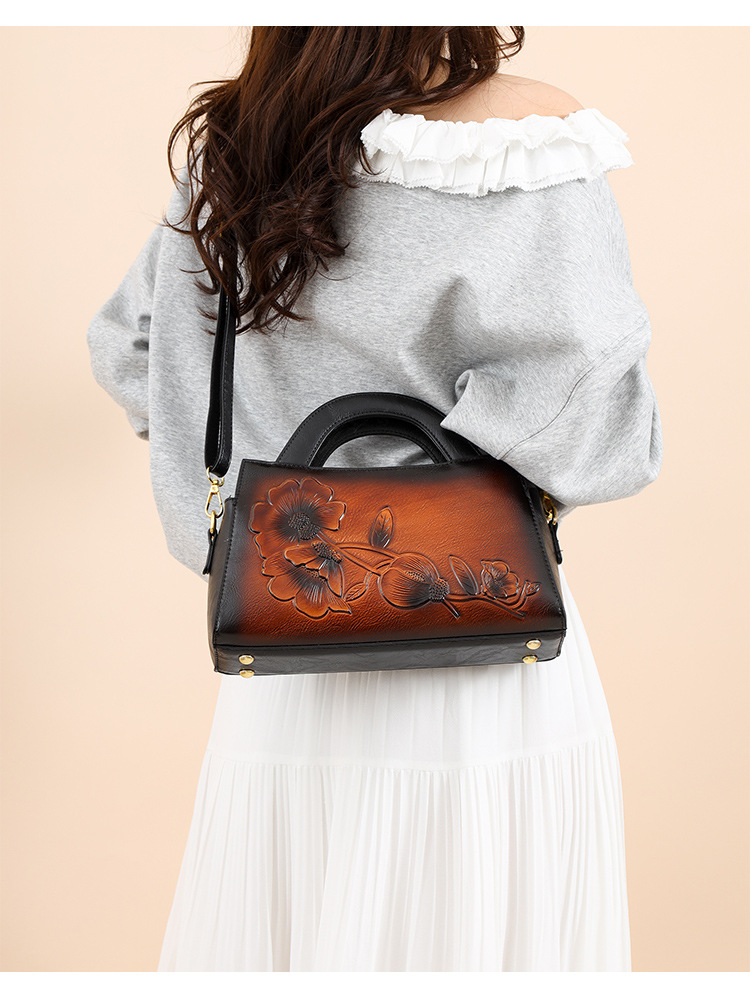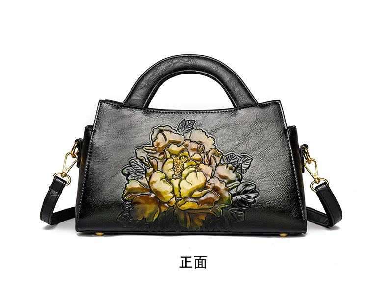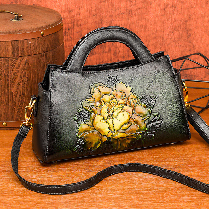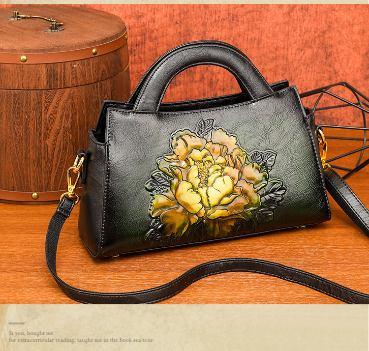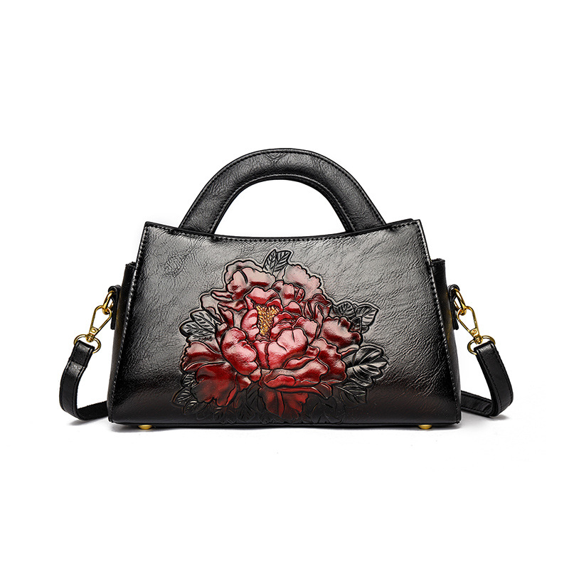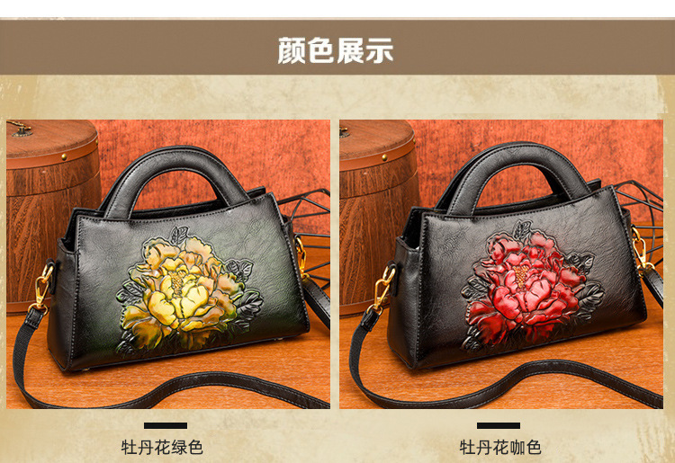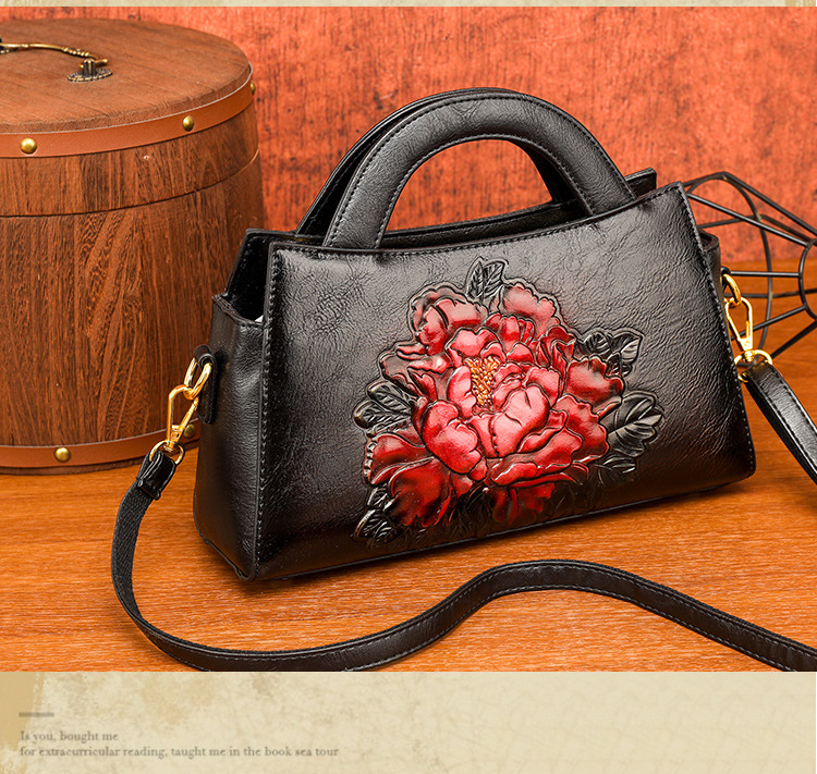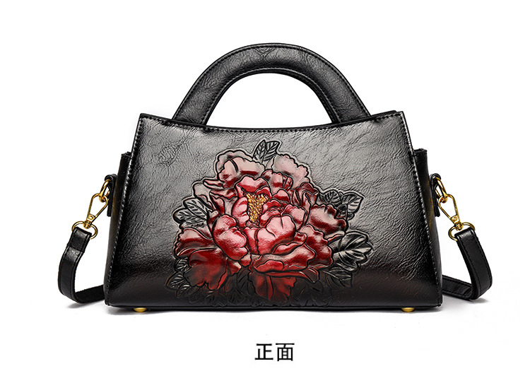 手提包牡丹压花质感复古单肩包小众设计休闲百搭通勤大容量包包