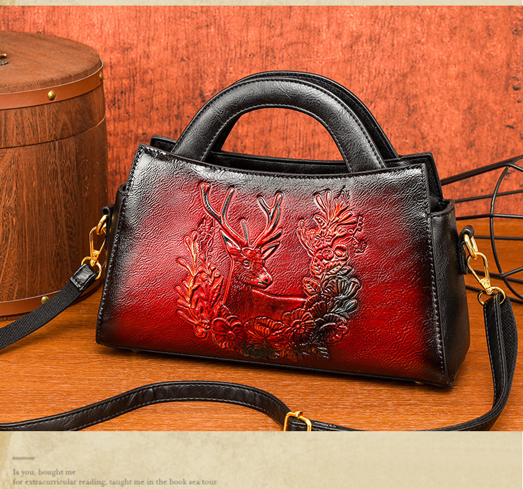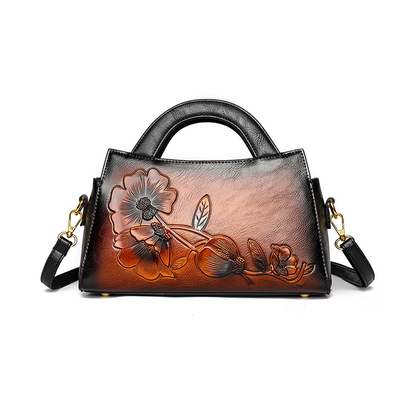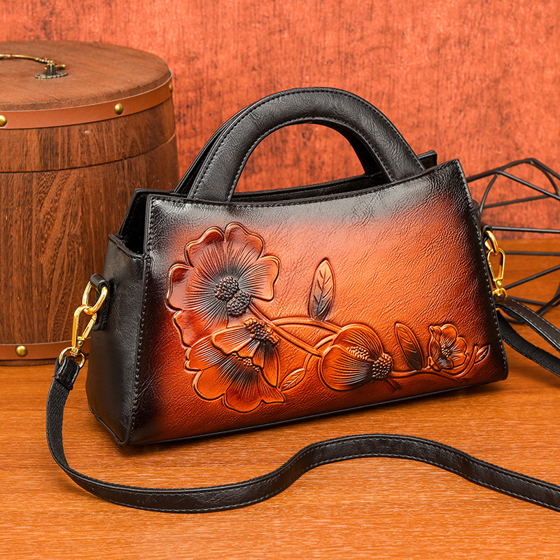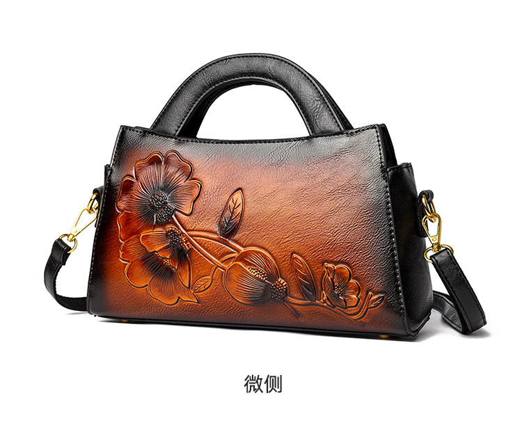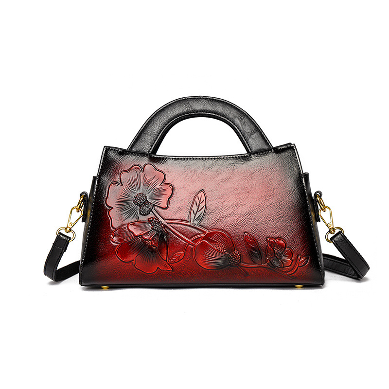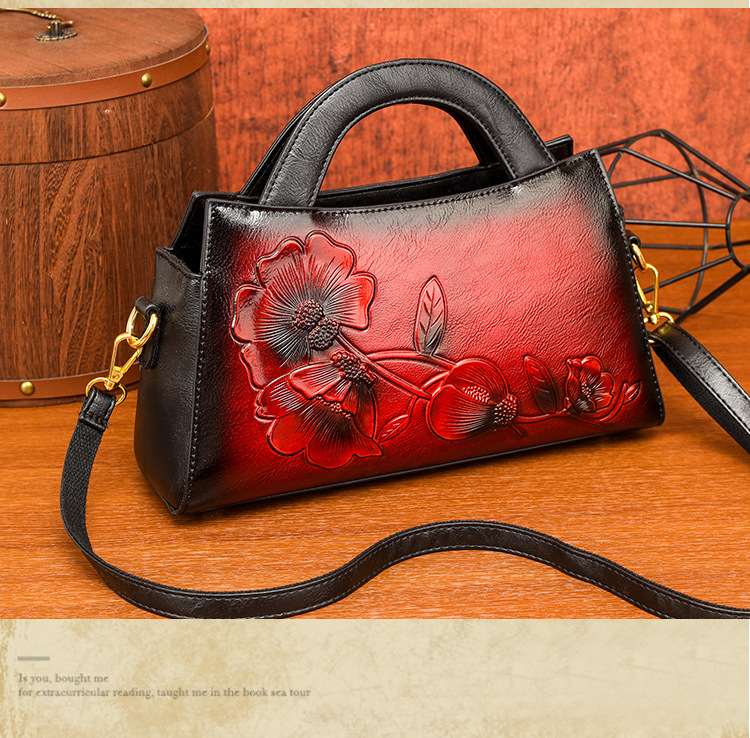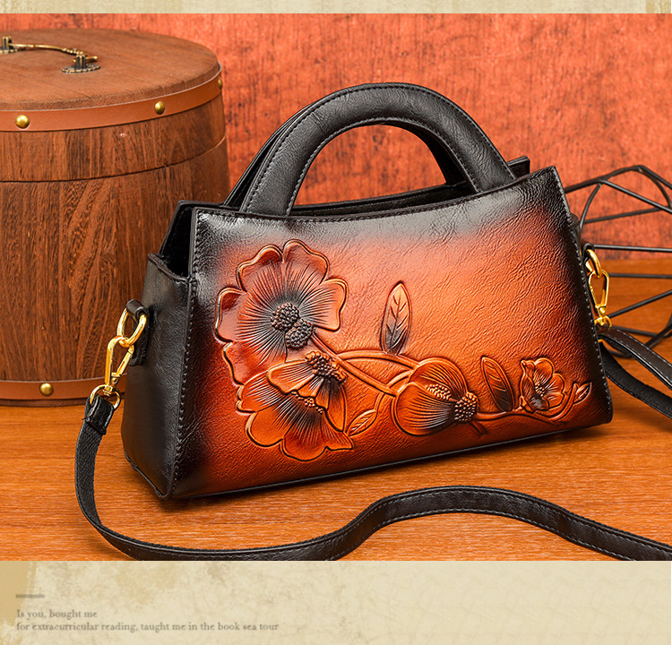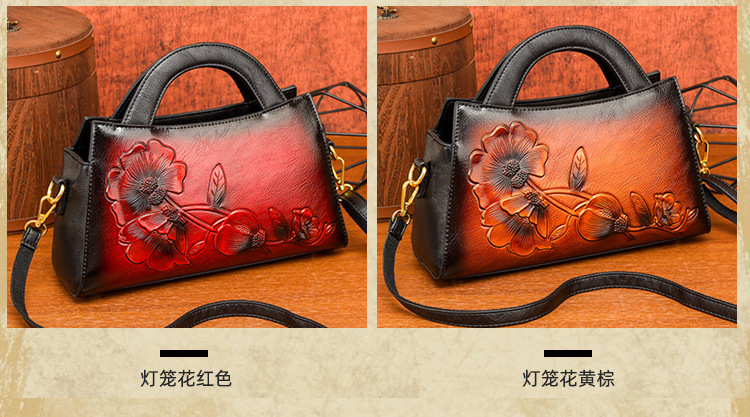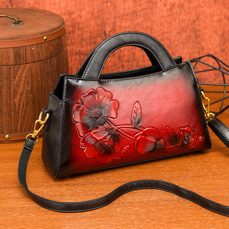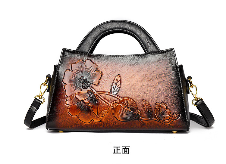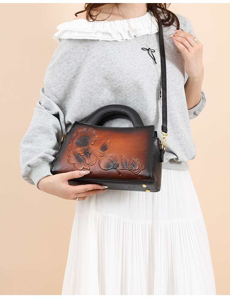 手提包牡丹压花质感复古单肩包小众设计休闲百搭通勤大容量包包