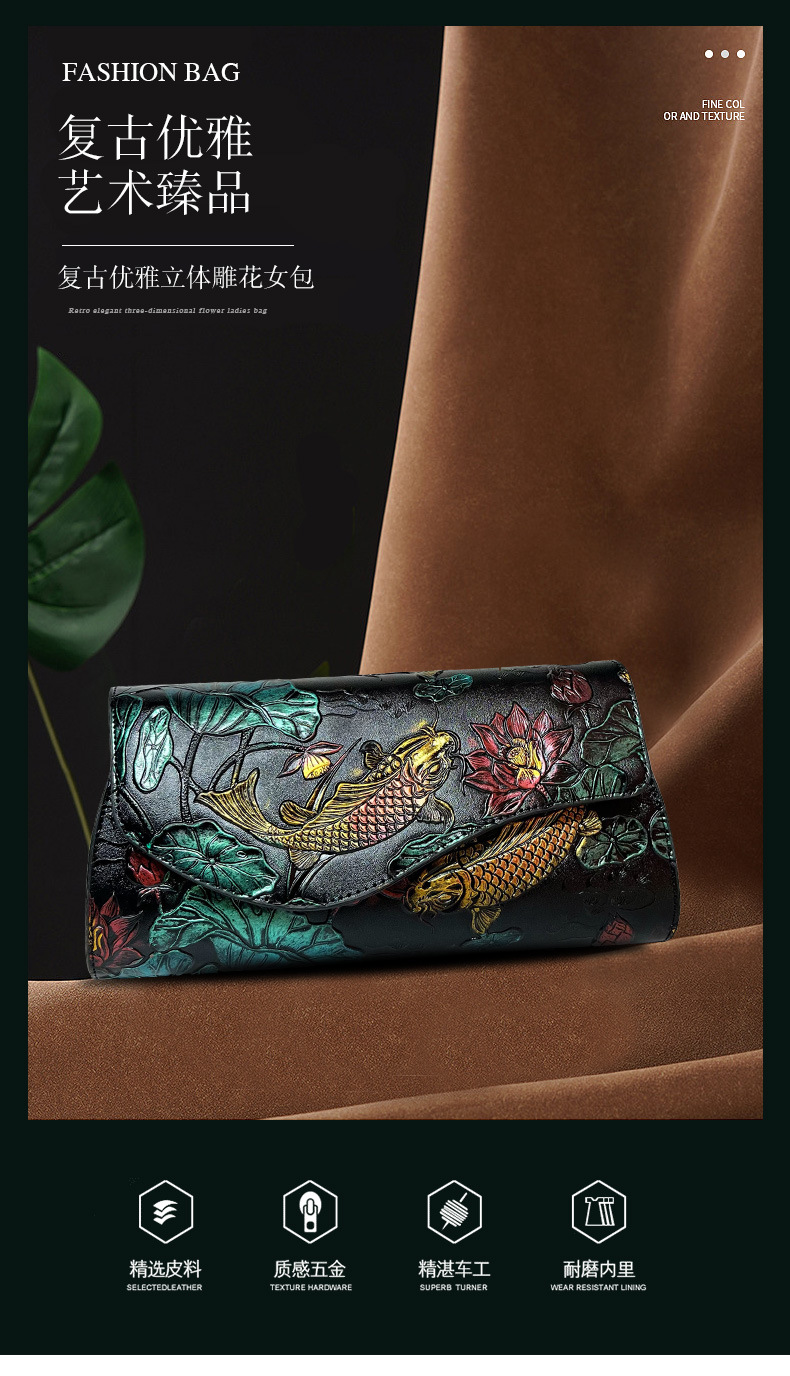 钱包中国风质感休闲百搭古风雕花包包轻便气质多功能手拿包跨境 投诉