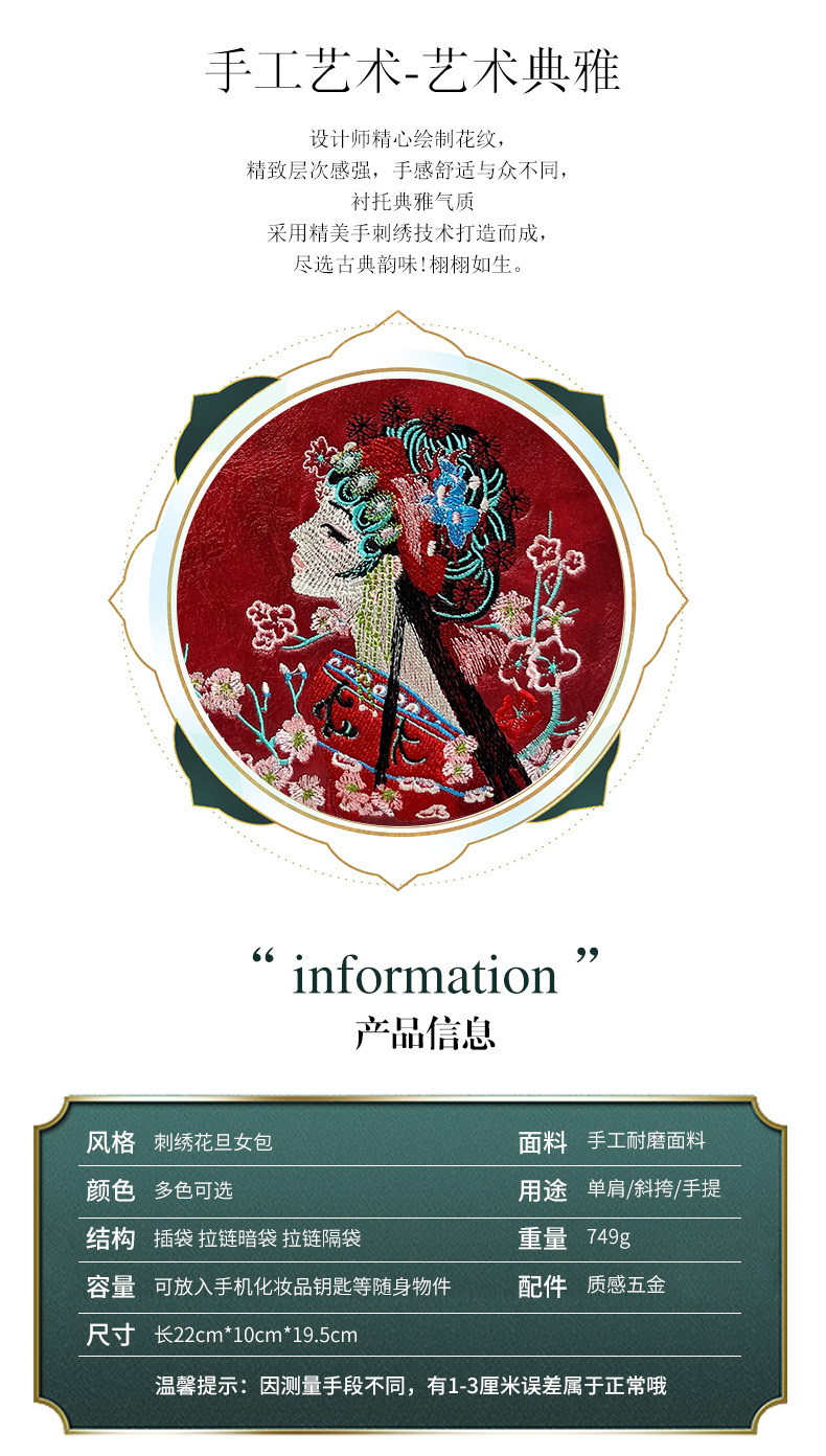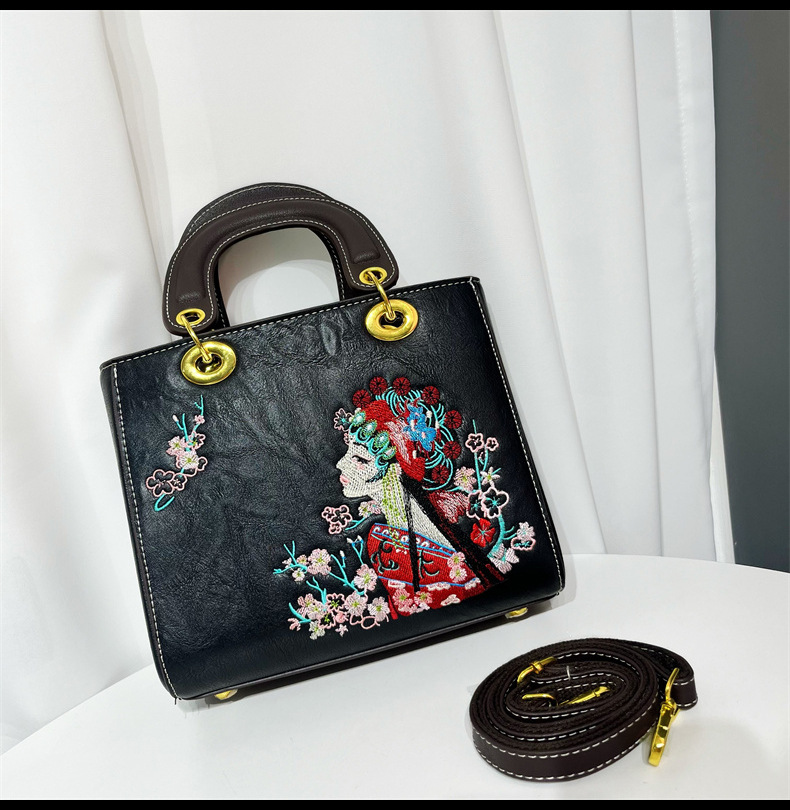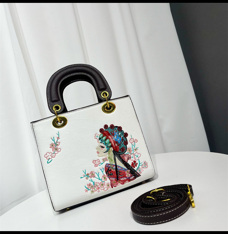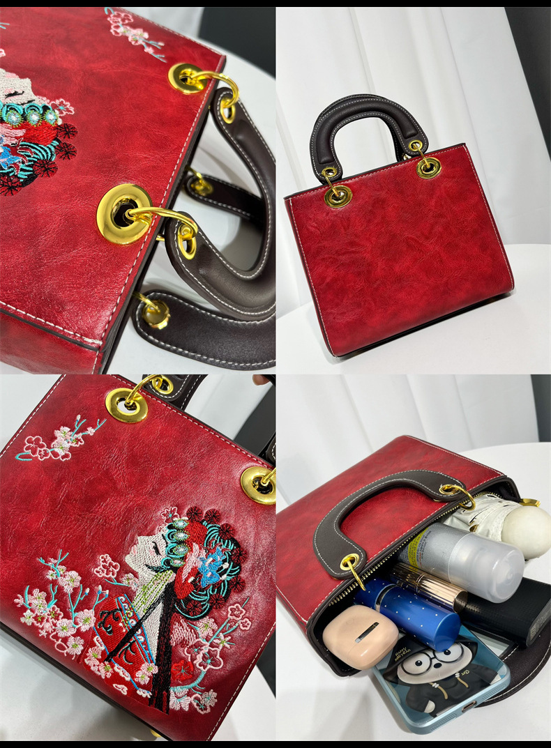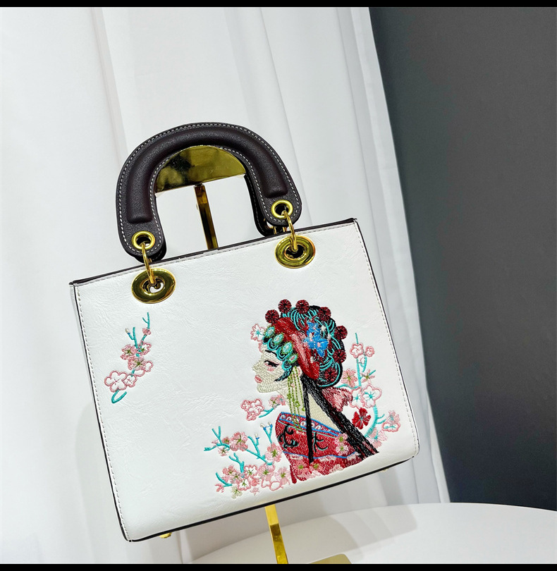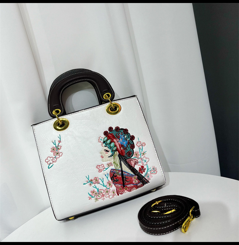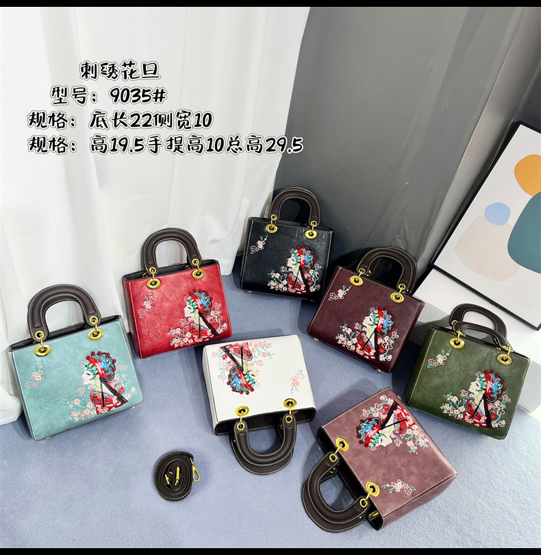 材质: 手工耐磨面料 箱包大小: 中 里料质地: 涤纶 箱包潮流款式: 托特包 品牌: 其他 流行元素: 刺绣,车缝线 硬度: 中偏硬 颜色: 白色,湖蓝,紫色,大红,黑色,酒红,绿色 风格: 国潮新风 货号: 9035#刺绣花旦 上市年份季节: 2025年春季 箱包形状: 横款方型 开盖方式: 拉链 包内部结构: 拉链暗袋,手机袋,夹层拉链袋 外袋种类: 内贴袋 有可授权的自有品牌: 否 有无夹层: 有 适用场景: 日常搭配 肩带根数: 单根 重量: 0.749 kg/个