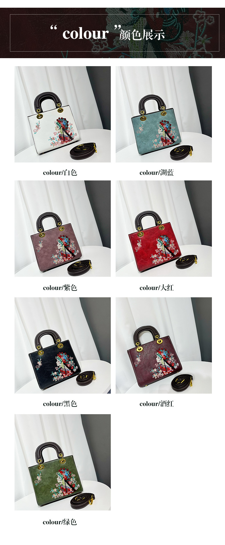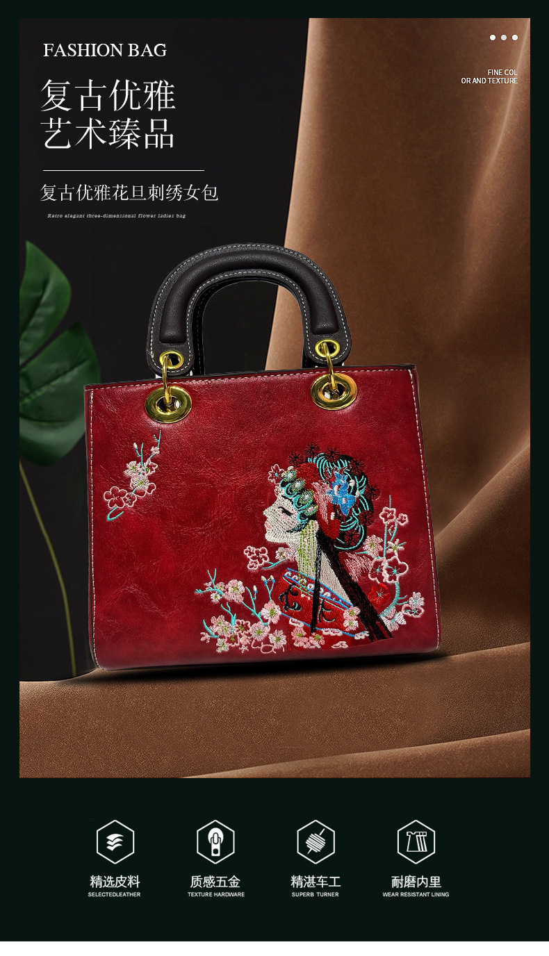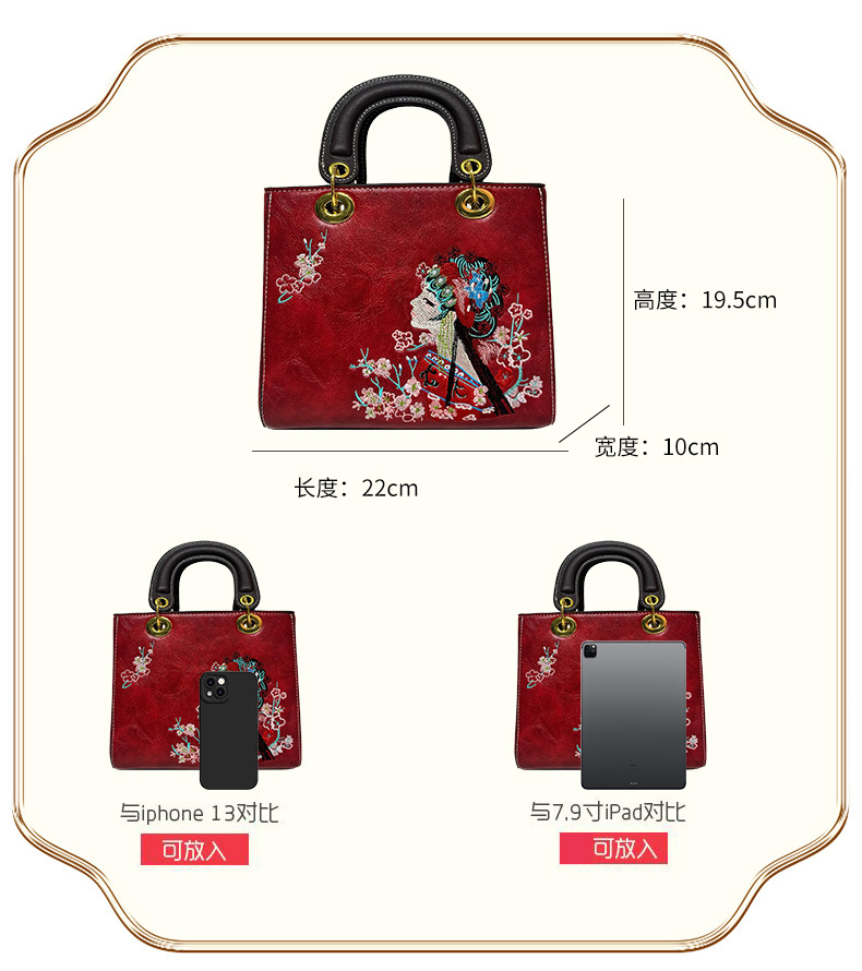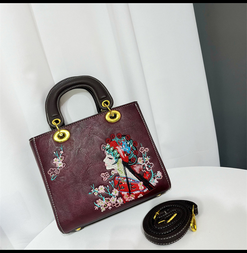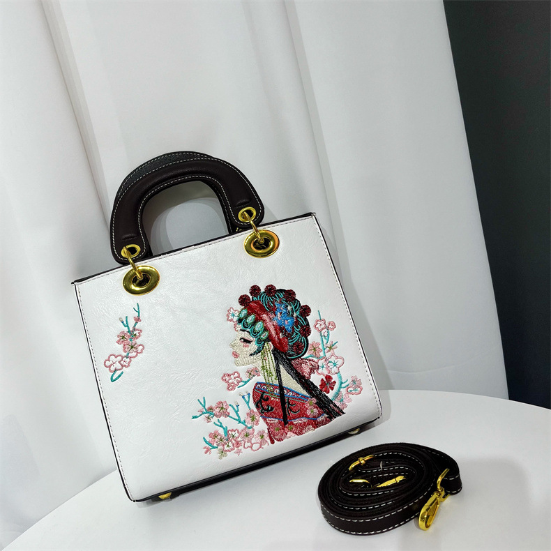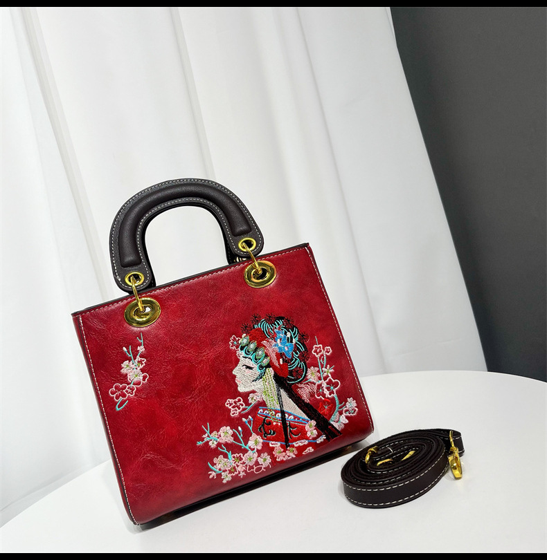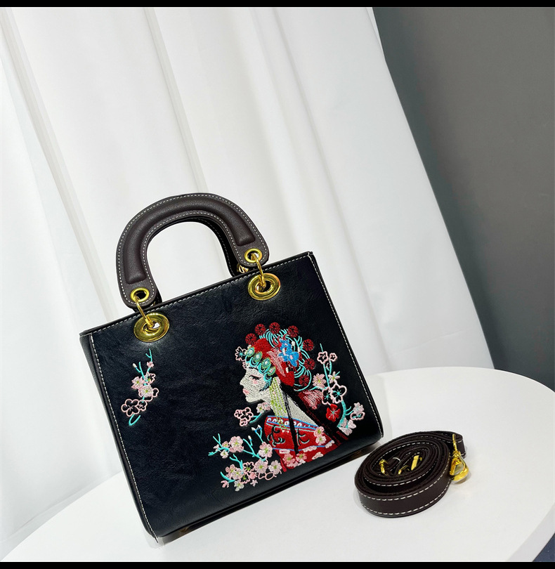 材质: 手工耐磨面料 箱包大小: 中 里料质地: 涤纶 箱包潮流款式: 托特包 品牌: 其他 流行元素: 刺绣,车缝线 硬度: 中偏硬 颜色: 白色,湖蓝,紫色,大红,黑色,酒红,绿色 风格: 国潮新风 货号: 9035#刺绣花旦 上市年份季节: 2025年春季 箱包形状: 横款方型 开盖方式: 拉链 包内部结构: 拉链暗袋,手机袋,夹层拉链袋 外袋种类: 内贴袋 有可授权的自有品牌: 否 有无夹层: 有 适用场景: 日常搭配 肩带根数: 单根 重量: 0.749 kg/个