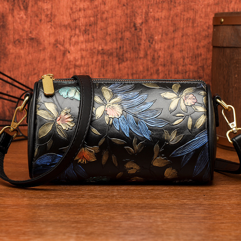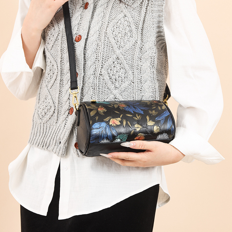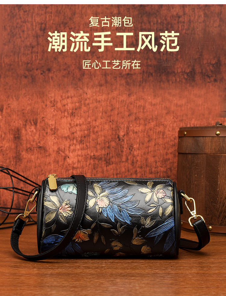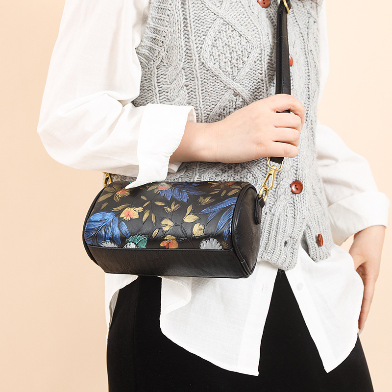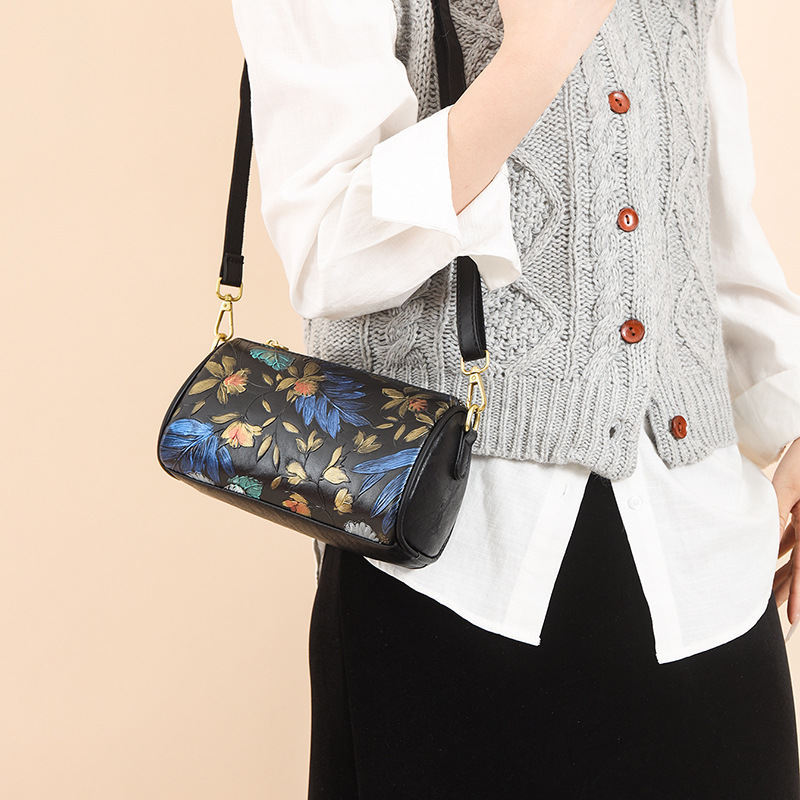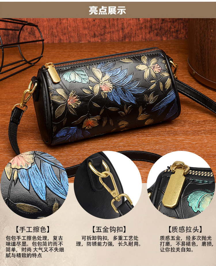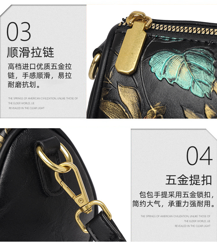 单肩包印花彩绘质感国风斜挎包复古通勤休闲大容量女士包包跨境 投诉