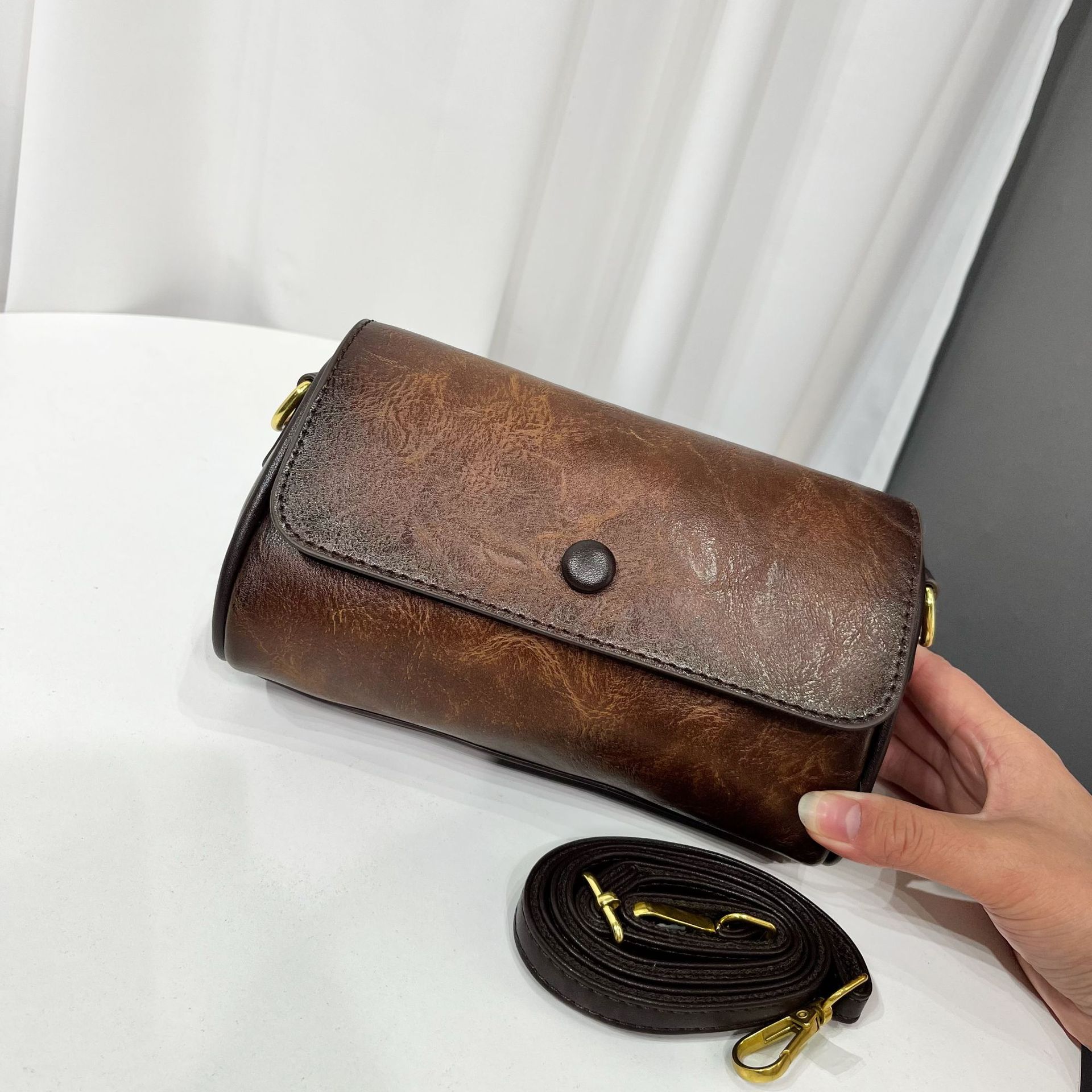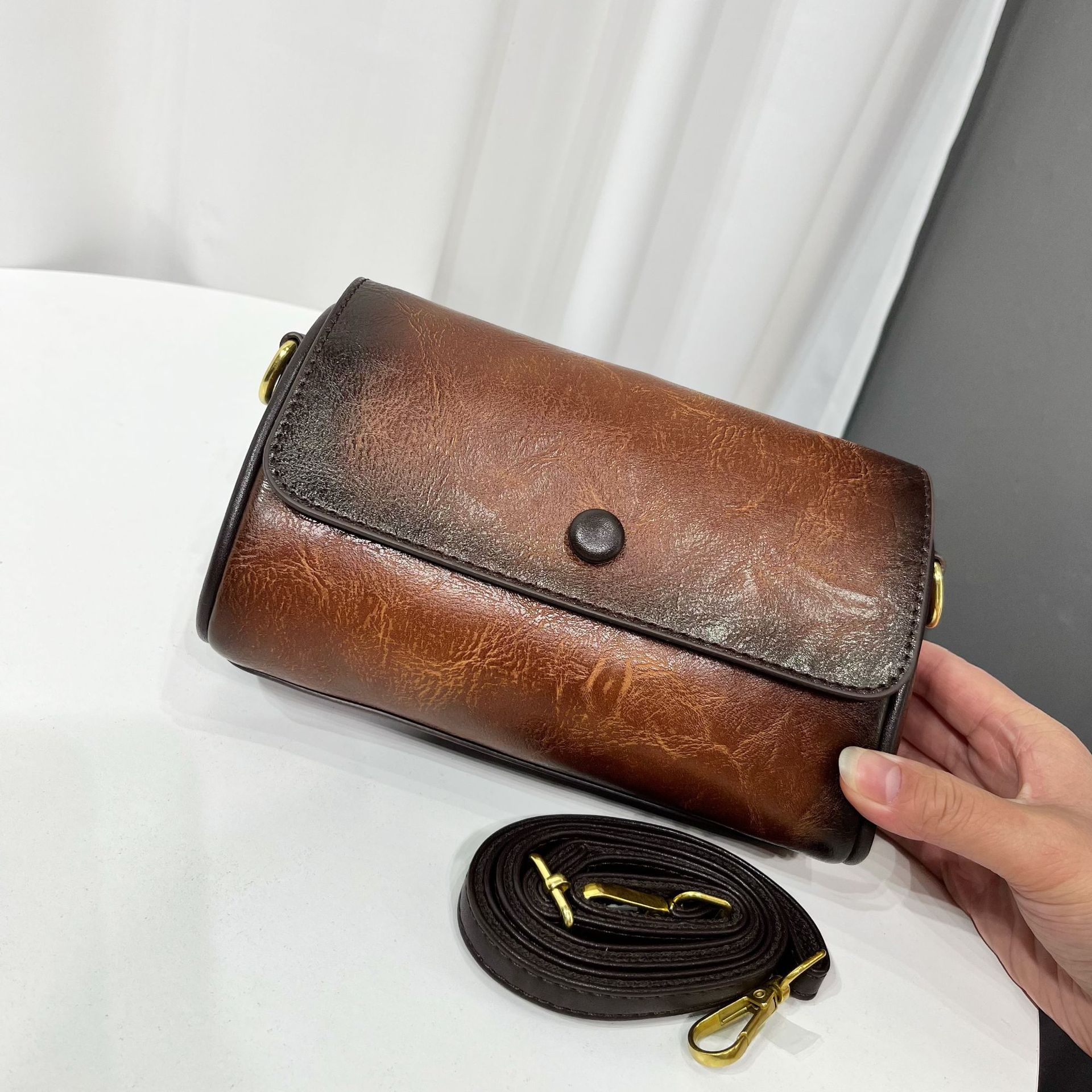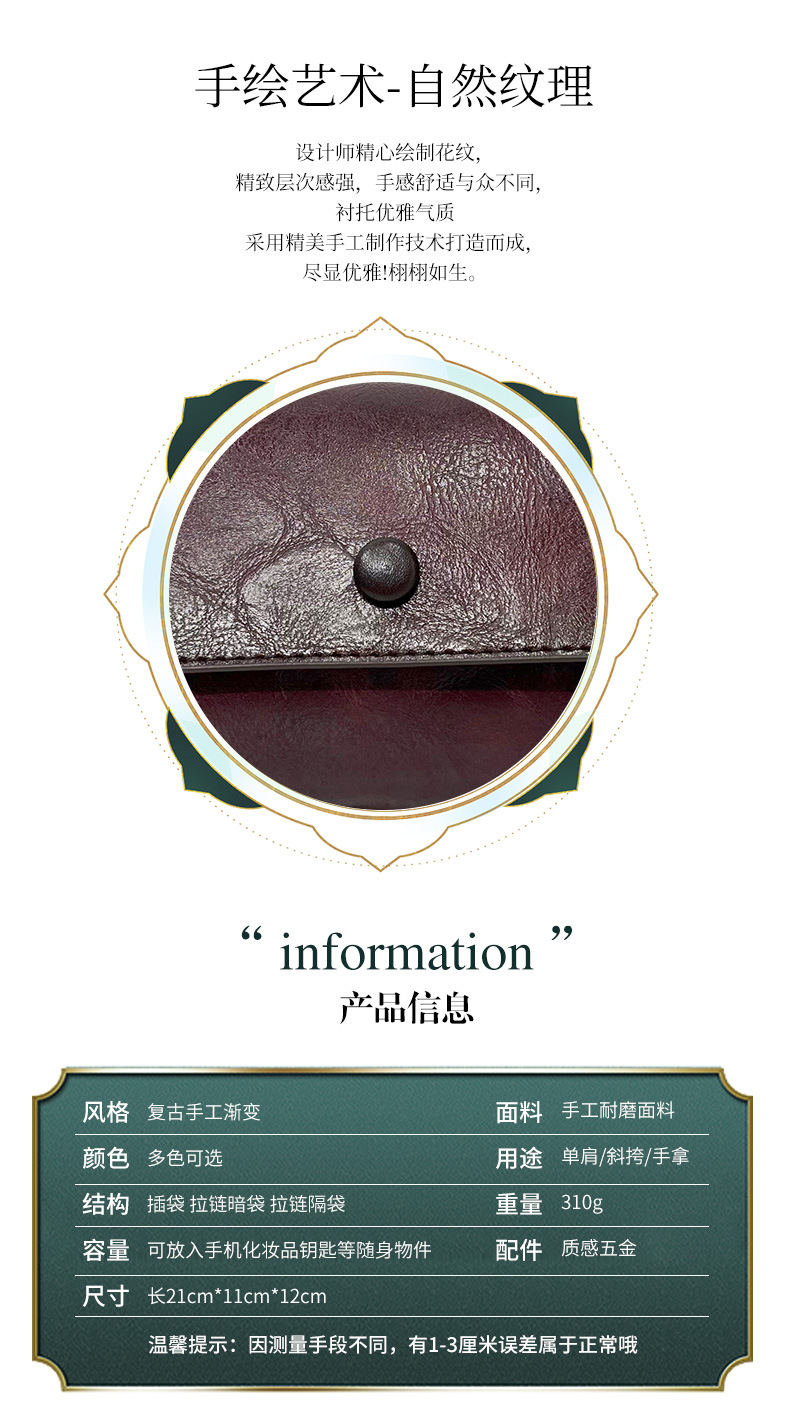 材质: 手工耐磨面料 箱包大小: 中 里料质地: 涤纶 箱包潮流款式: 单肩包 品牌: 其他 流行元素: 车缝线,压花 硬度: 中偏硬 颜色: 咖色,黄棕色,红色,绿色,黑色,灰色 风格: 国潮新风 货号: 9028-1#复古手工渐变 上市年份季节: 2026年春季 箱包形状: 横款方型 开盖方式: 拉链 包内部结构: 拉链暗袋,手机袋,夹层拉链袋 外袋种类: 内贴袋 有可授权的自有品牌: 否 有无夹层: 有 适用场景: 日常搭配 肩带根数: 单根 重量: 0.31 kg/个